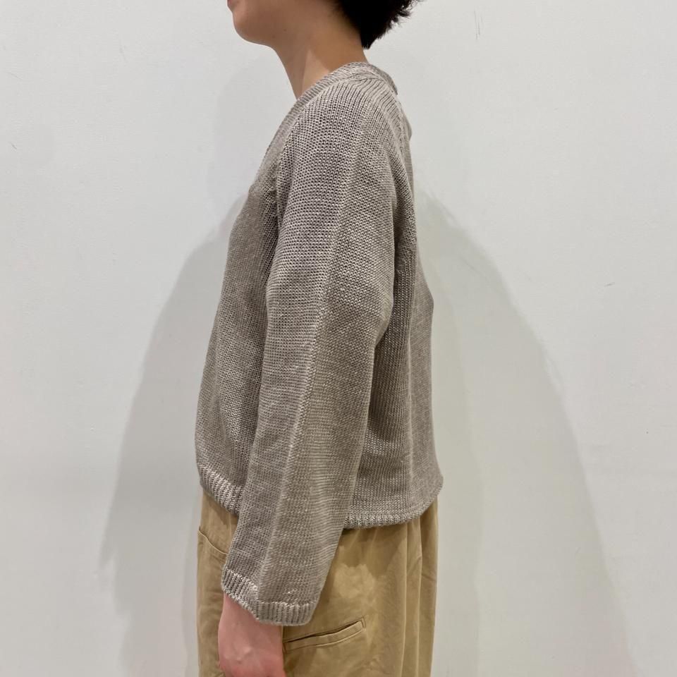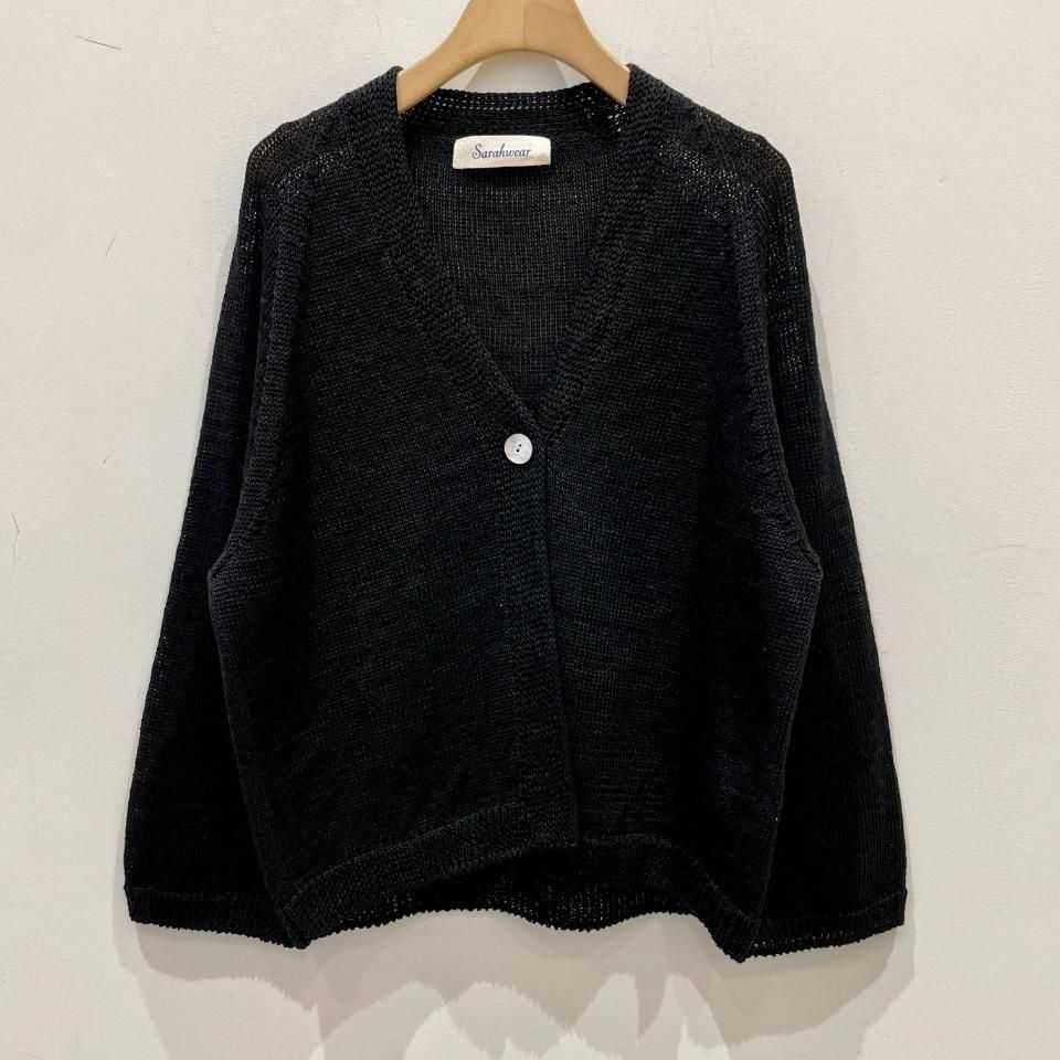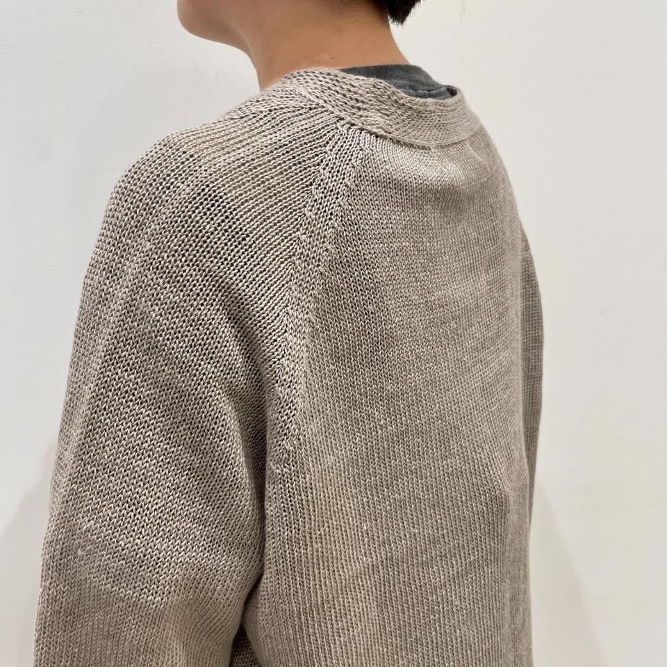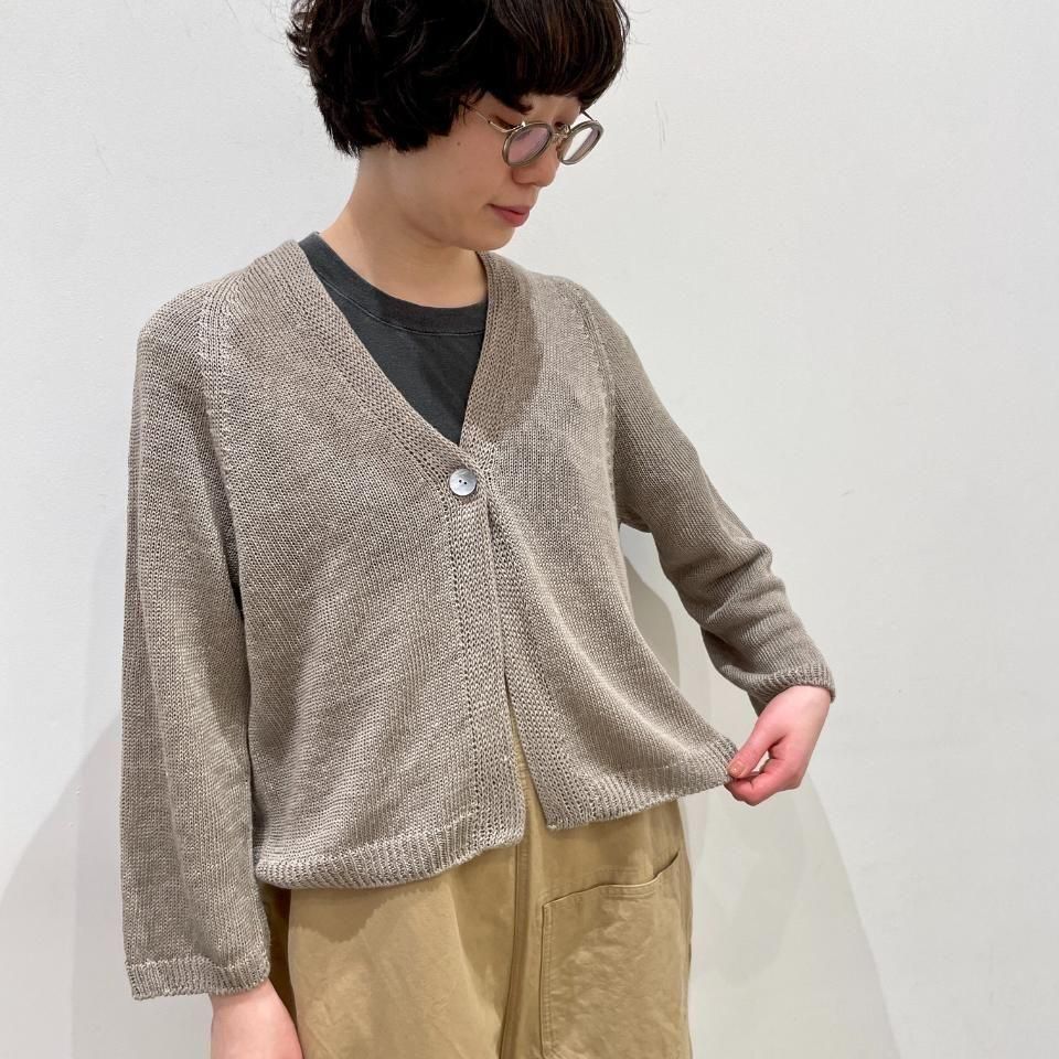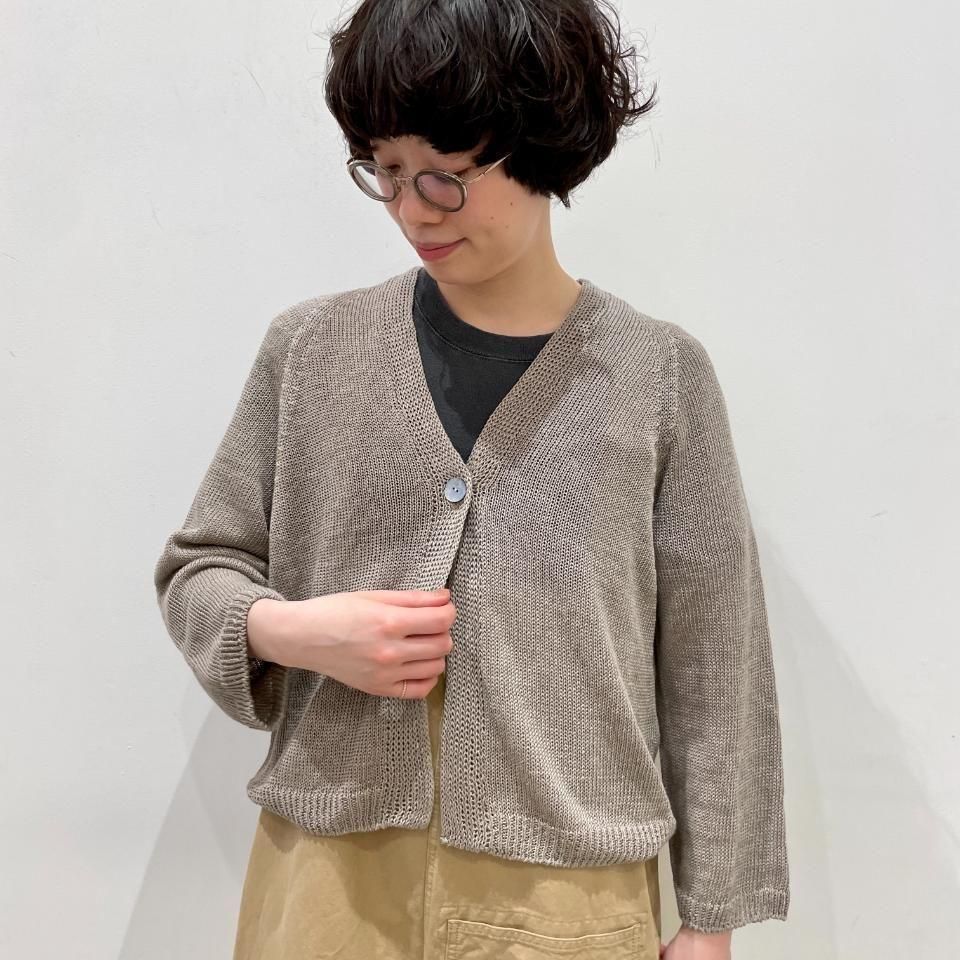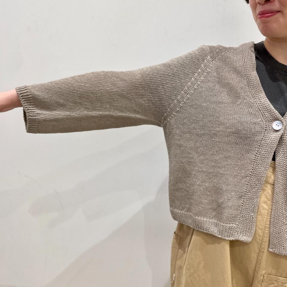 艶のある発色で透け感があり、ざっくりとした編地のリネン100%のニットボレロ。