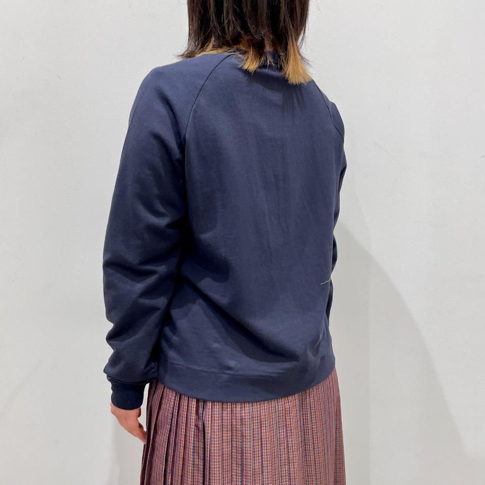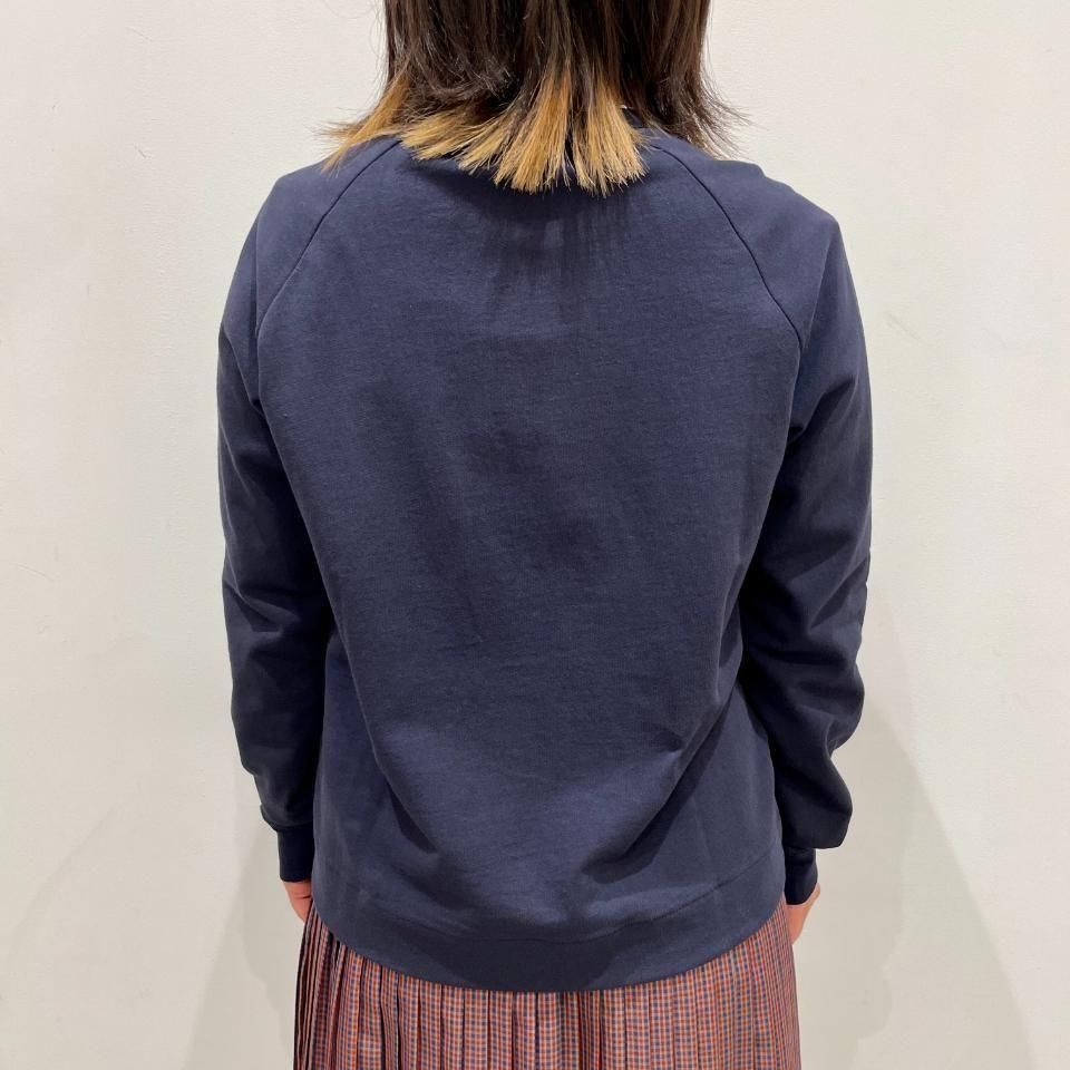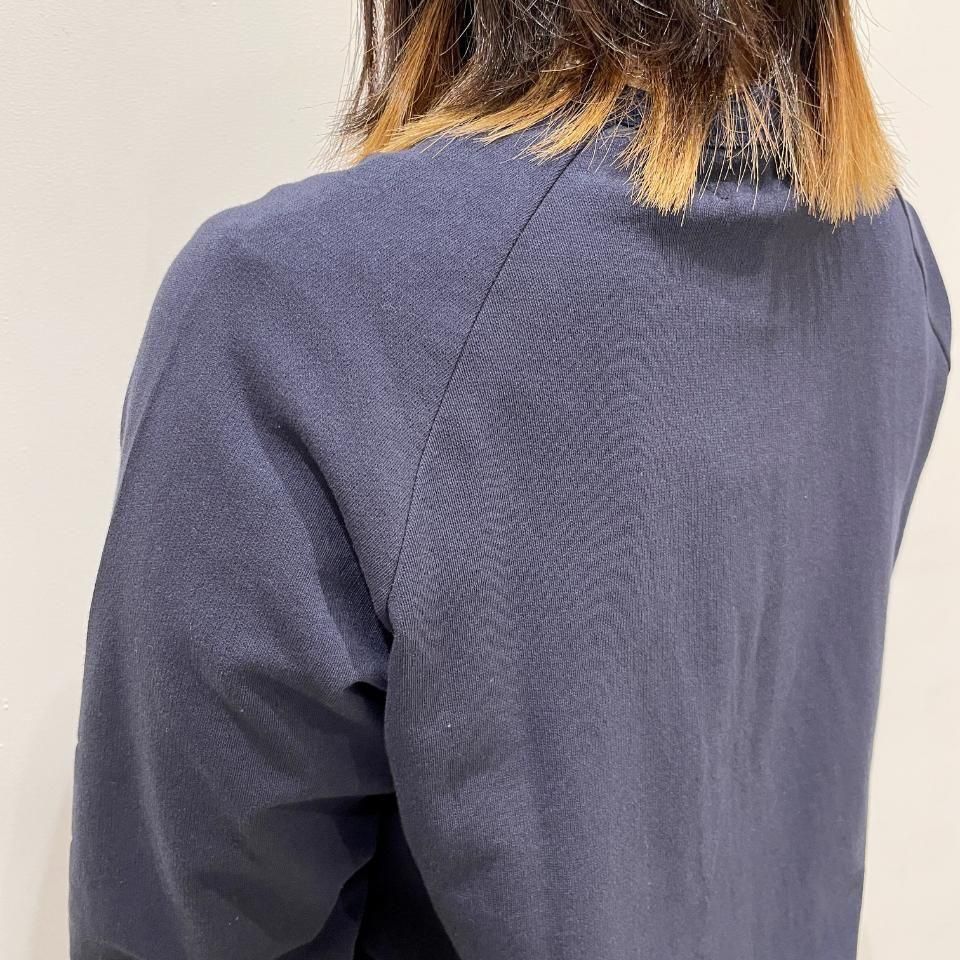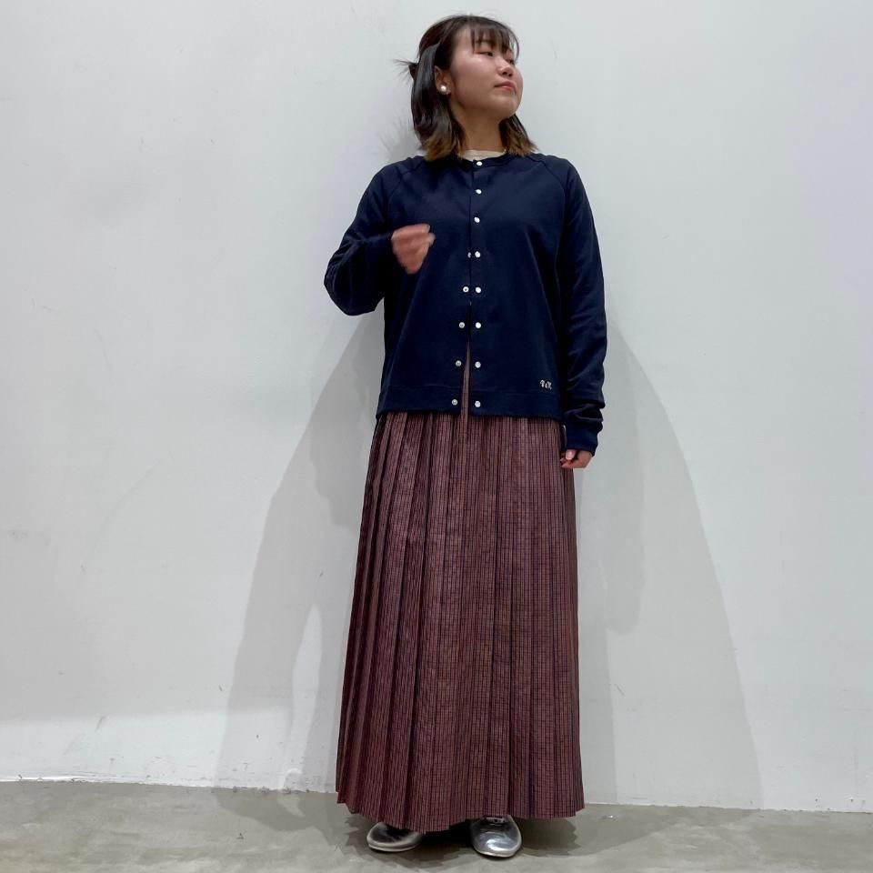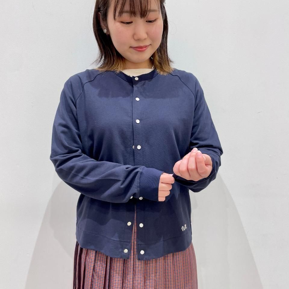 ラグランスリーブですっきりとした着丈のクルーネックカーディガンは、様々なボトムスと相性抜群。