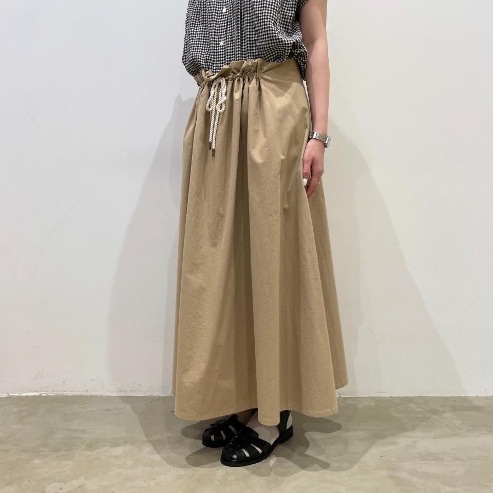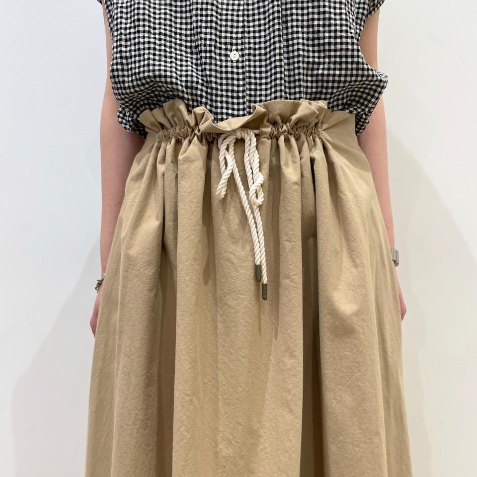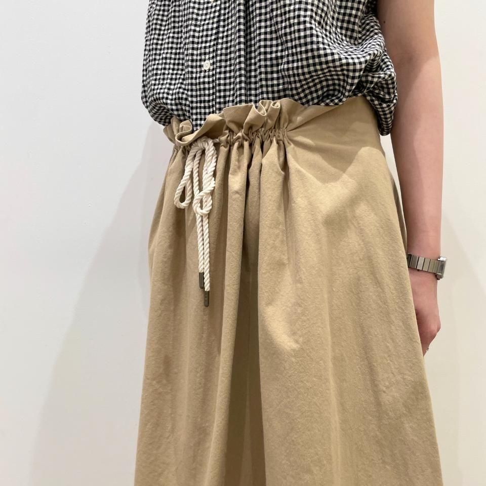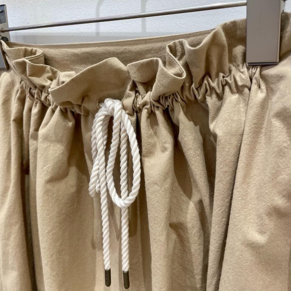 ウエストは紐で調整ができるので幅広いサイズに対応できるスカートです。