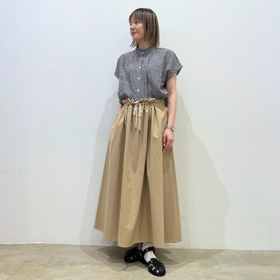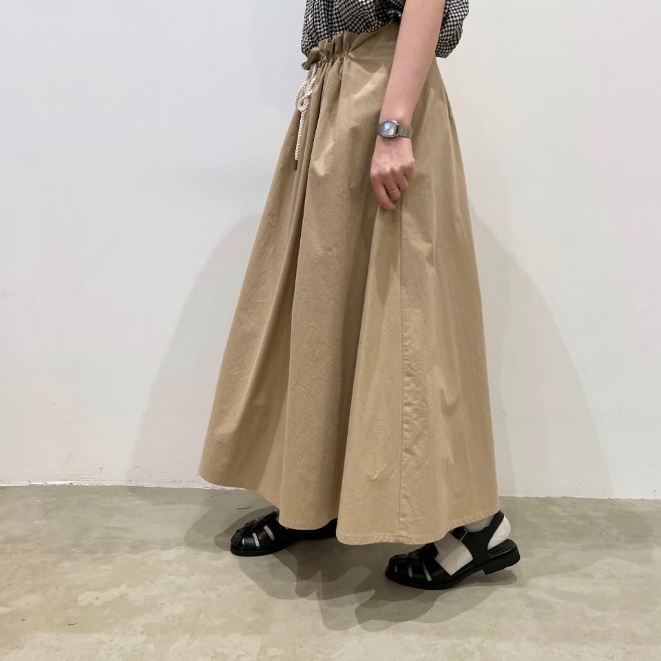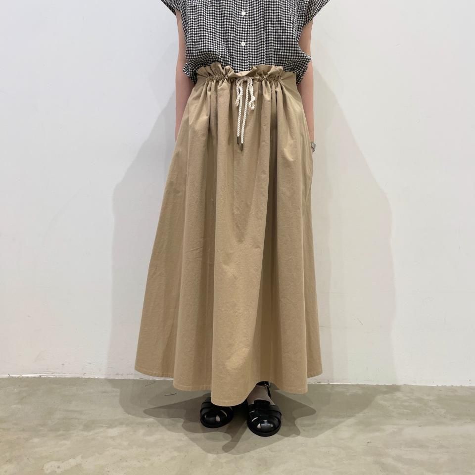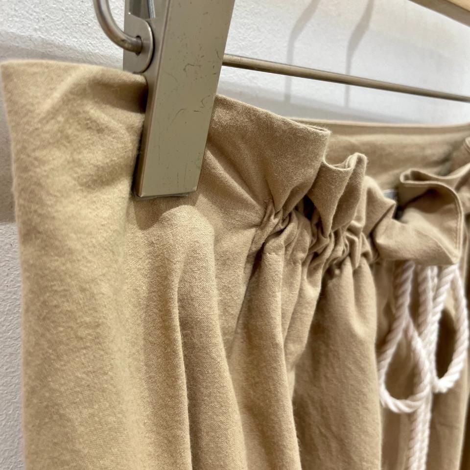 ウエストは紐で調整ができるので幅広いサイズに対応できるスカートです。