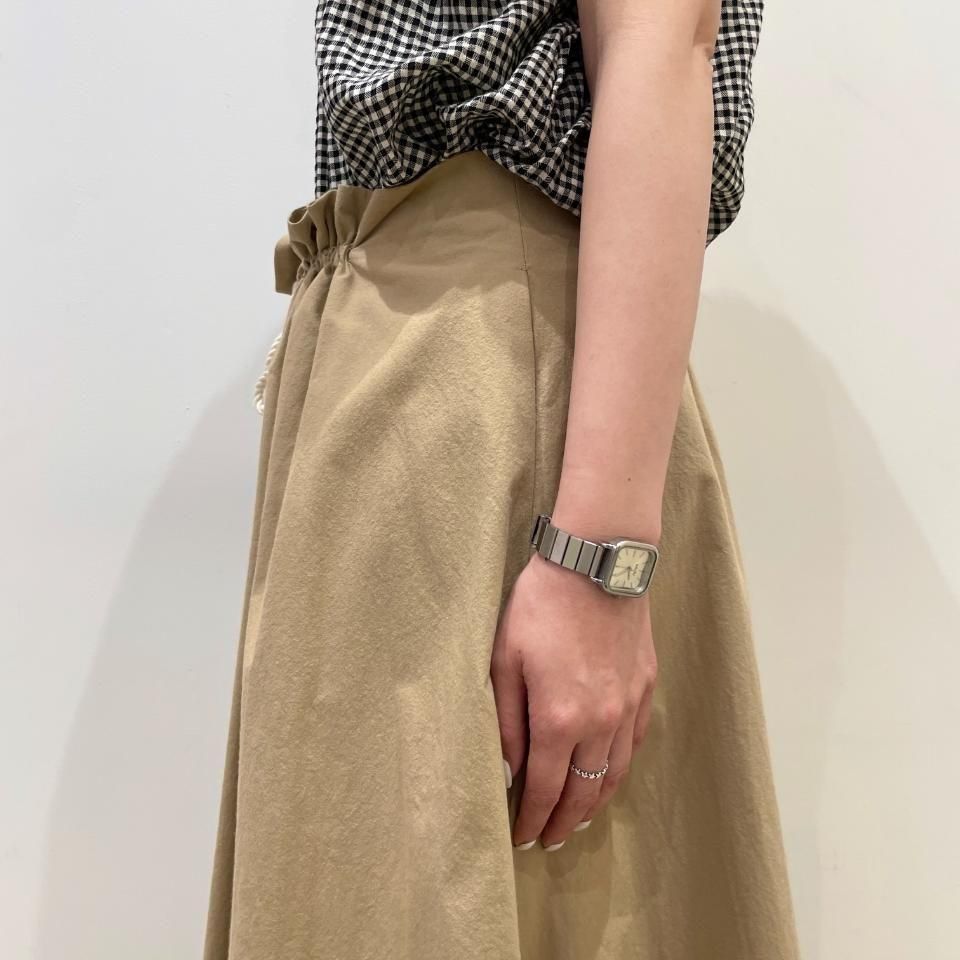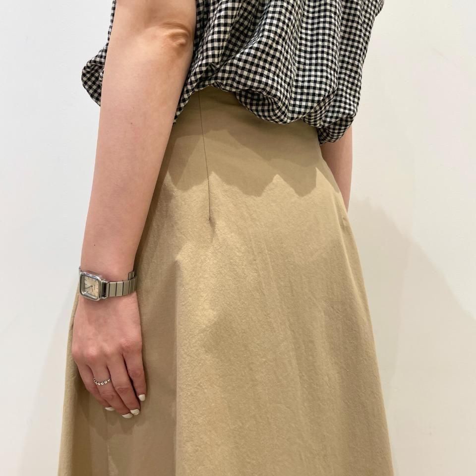 素材はハリのあるコットンなので、履いた時にシルエットがふわっと立体的になり、女性らしい印象をつくります。