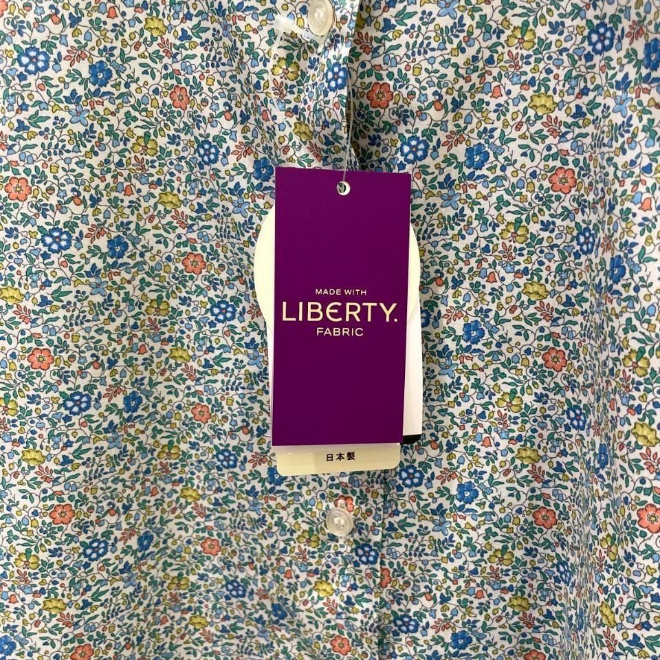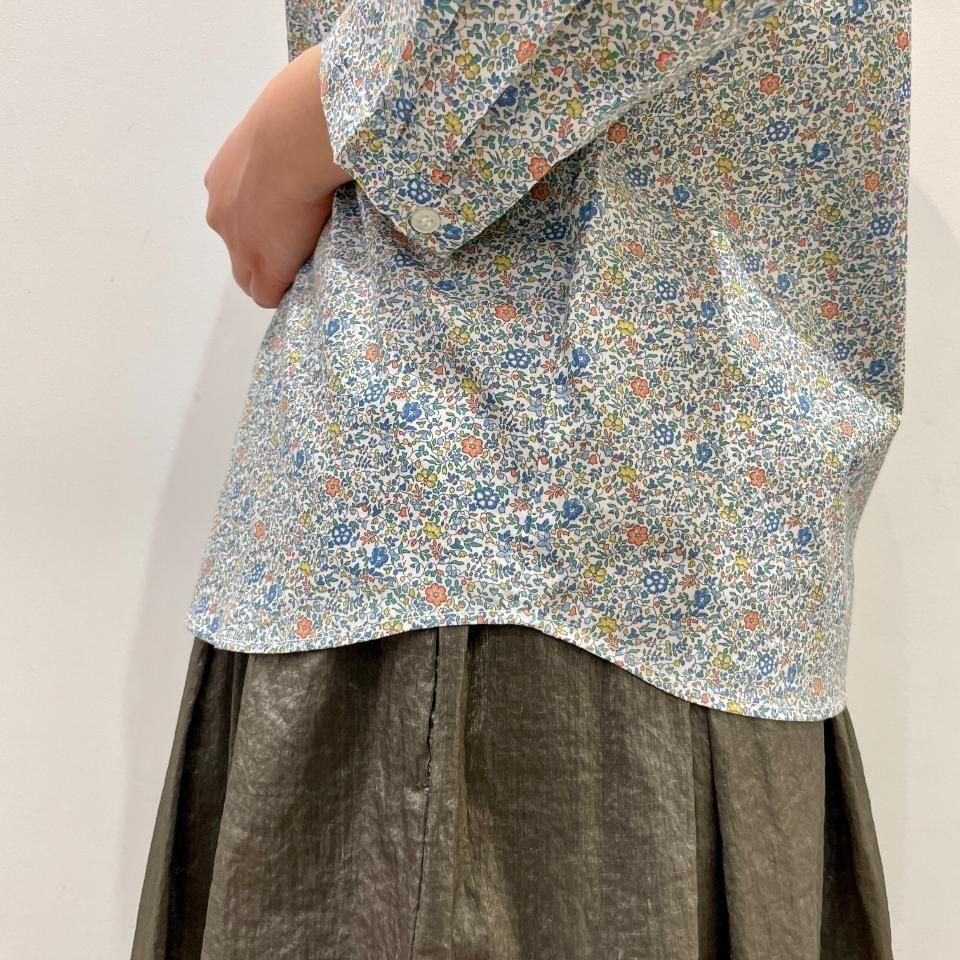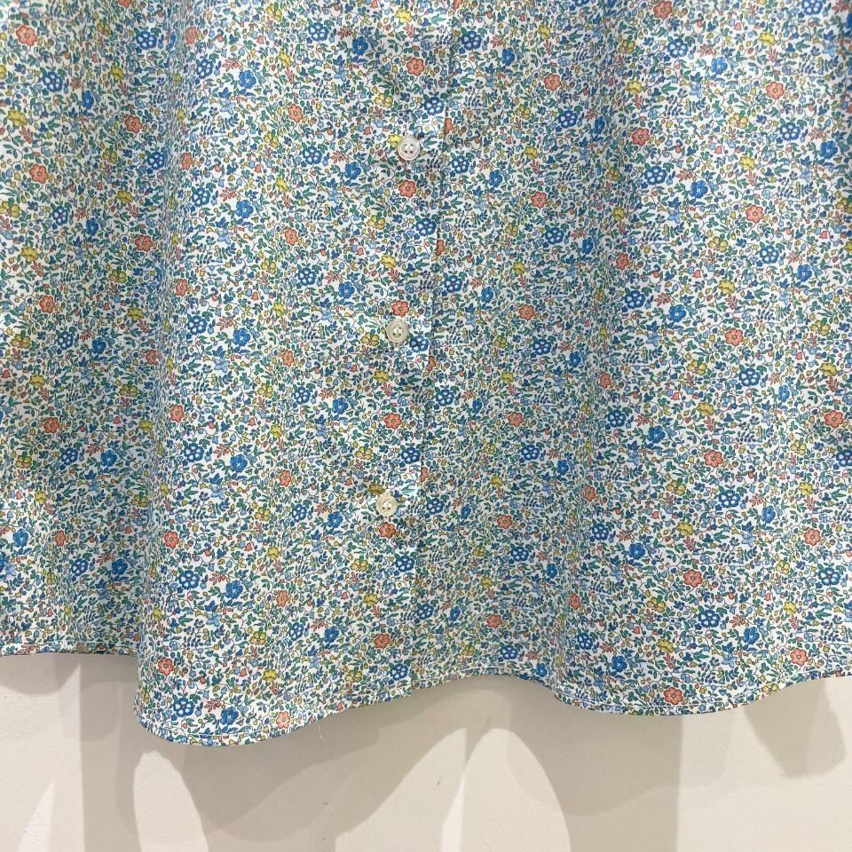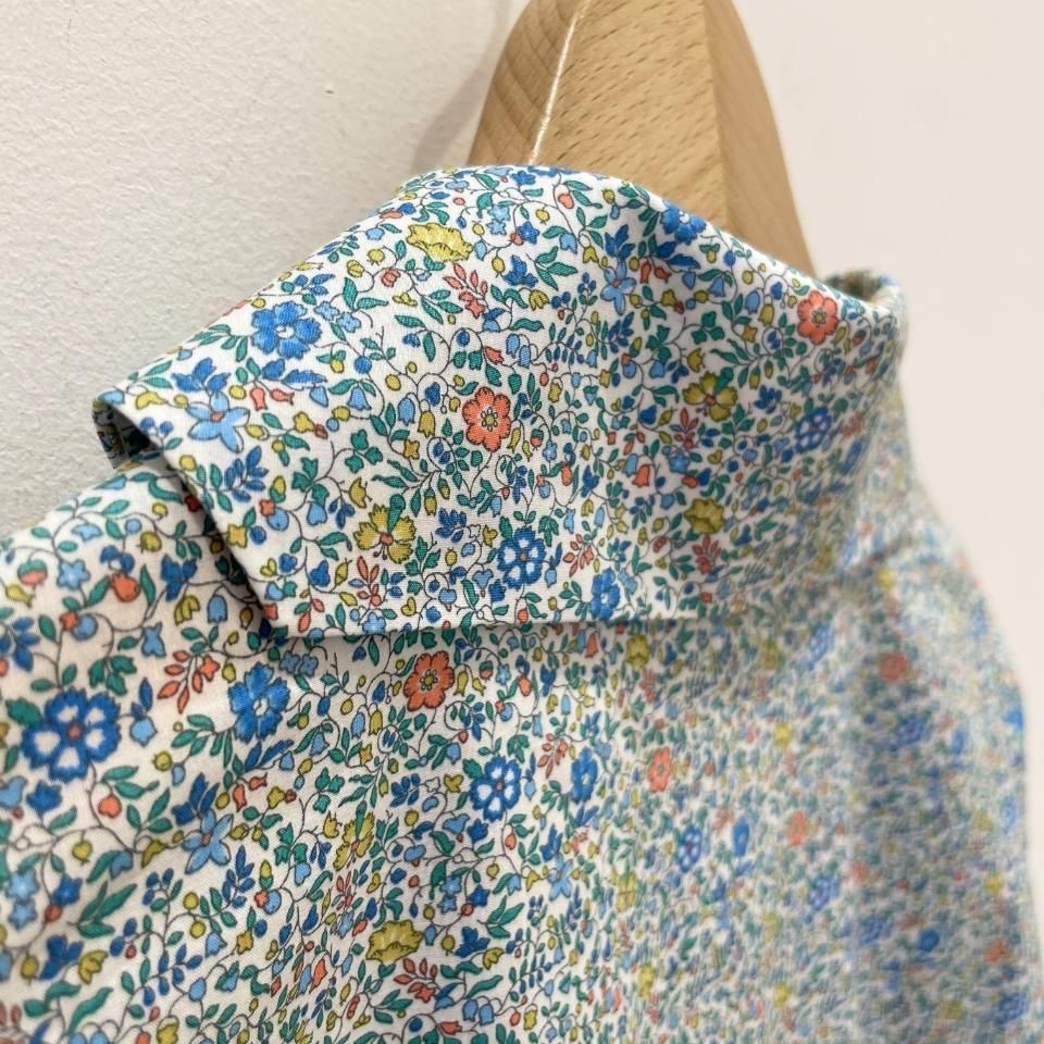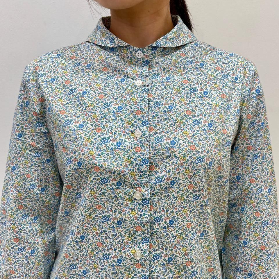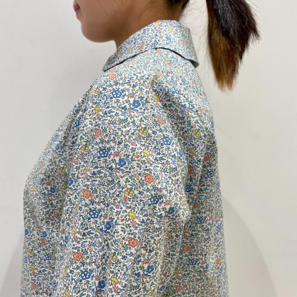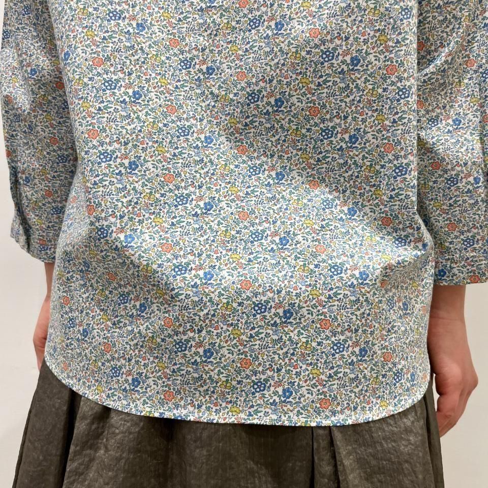 リバティプリントのセーラーカラー7分袖レギュラーシャツ。