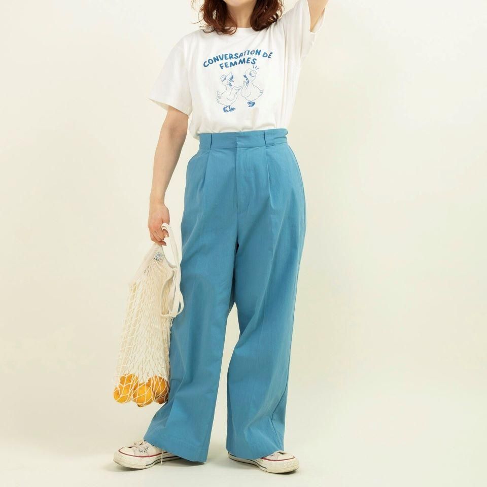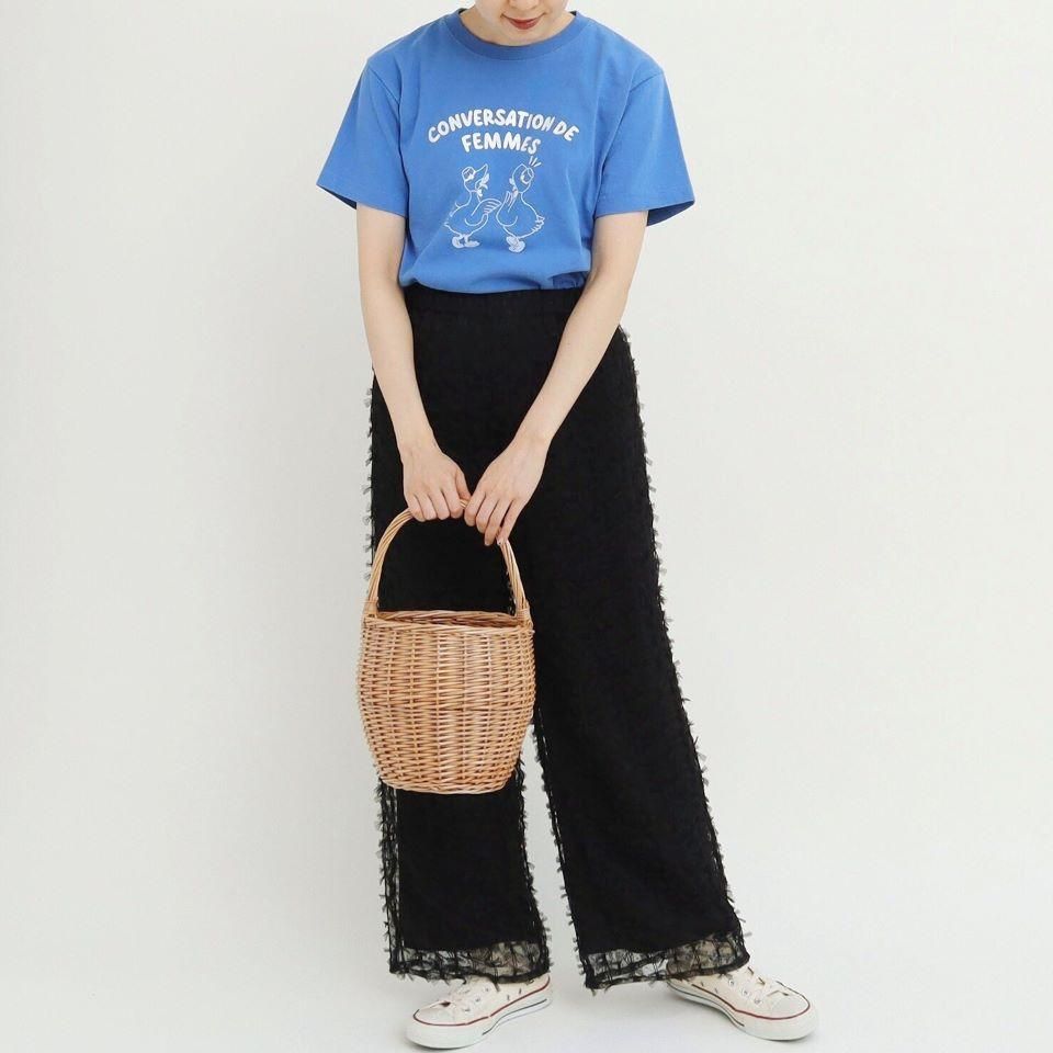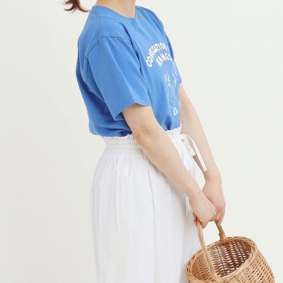 さり気なくきらめくロゴが印象的なので、シンプルにデニムやカーゴパンツはもちろん、夏らしい柄物ボトムと合わせたコーディネートもオススメ。