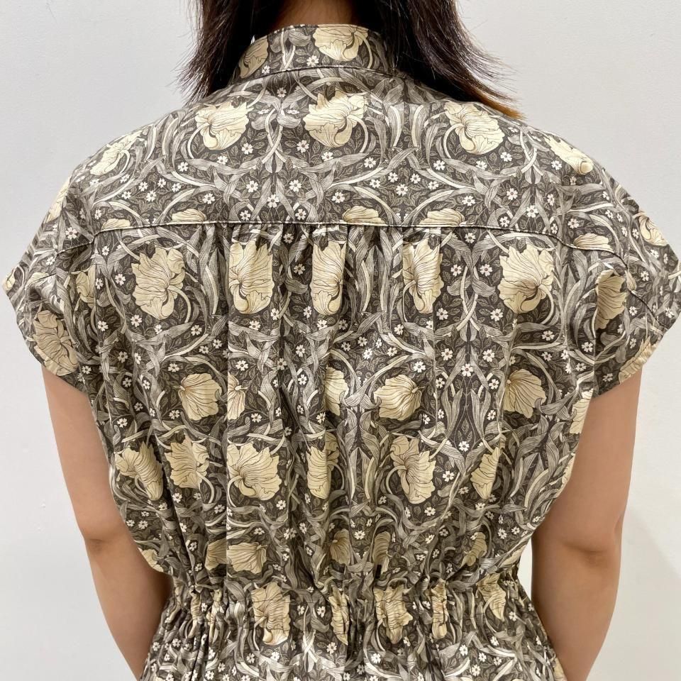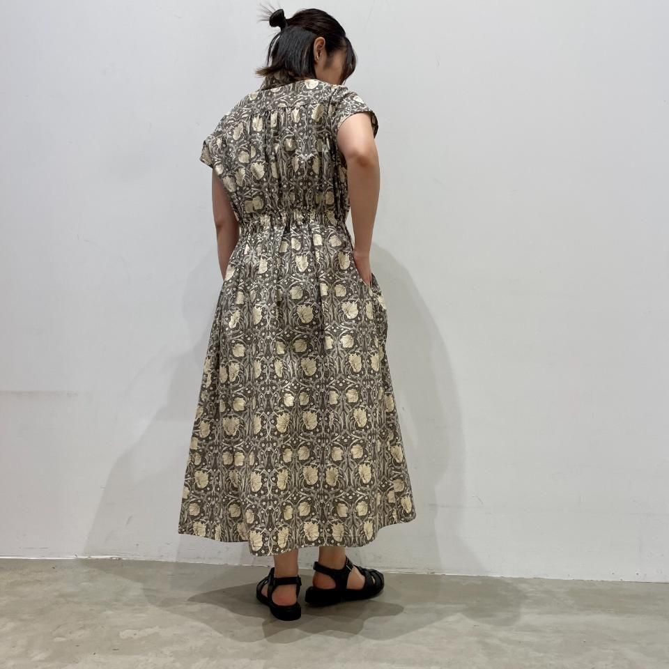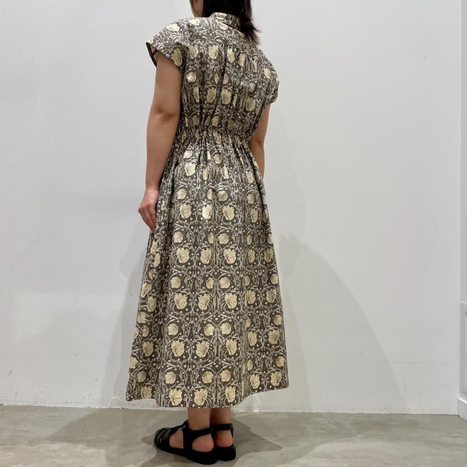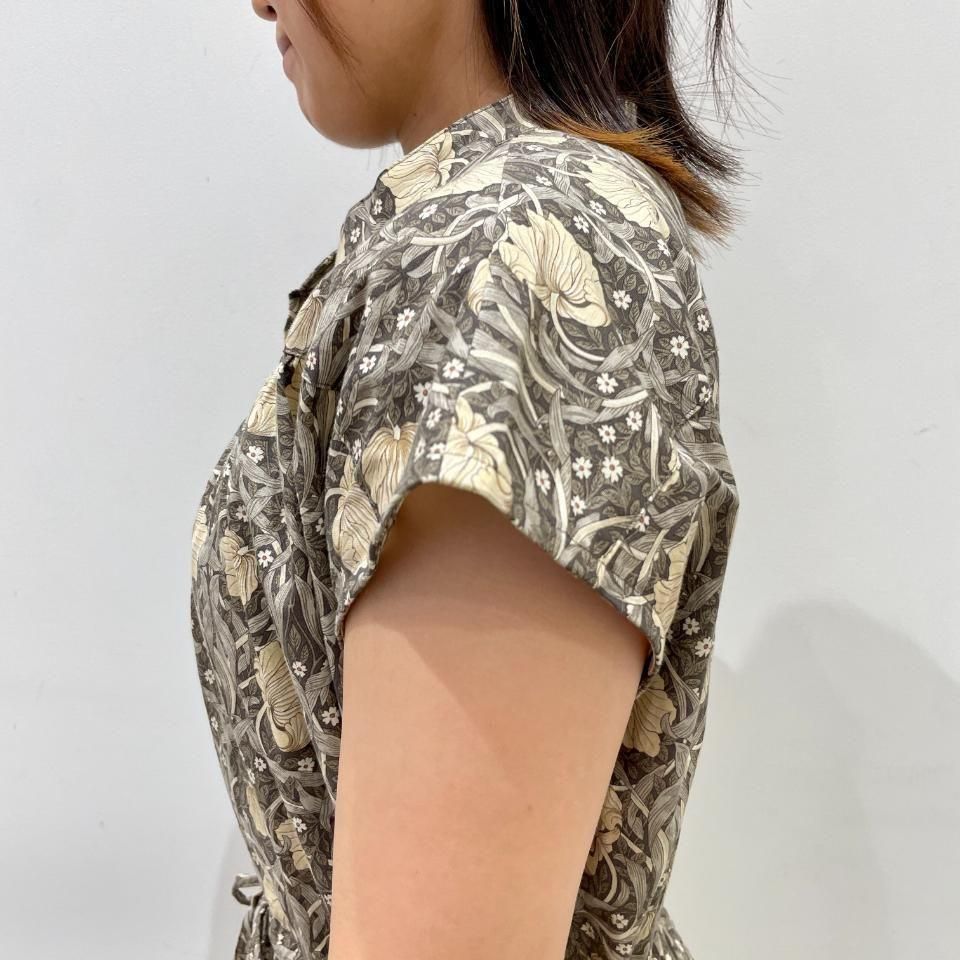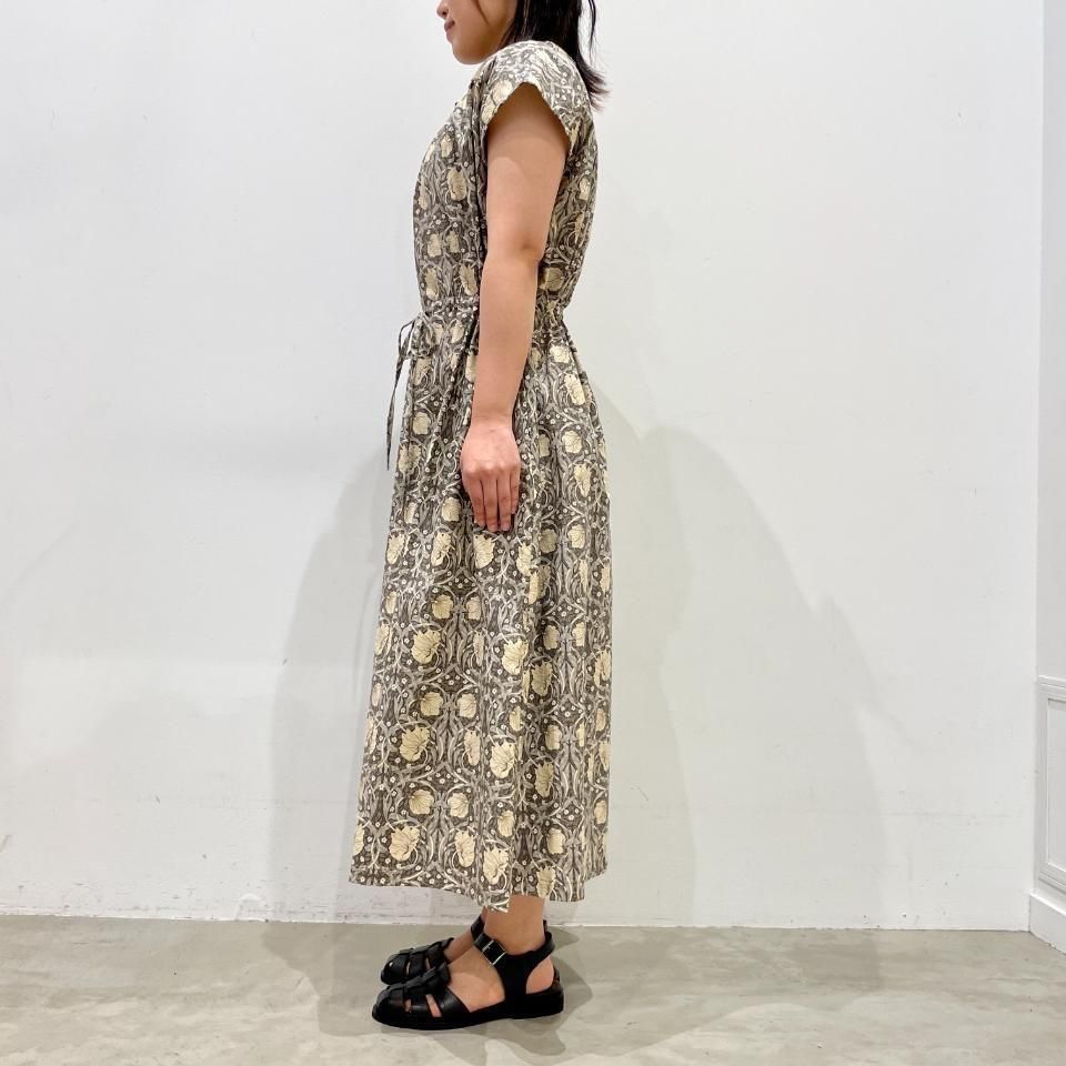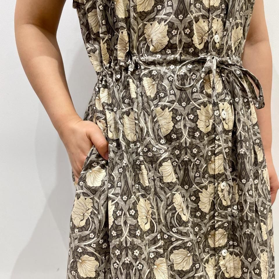 ウィリアムモリスの人気柄を使った、ウエストが絞れるドロストワンピース。