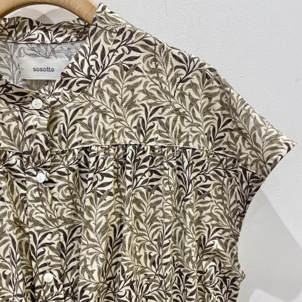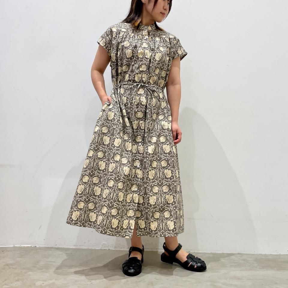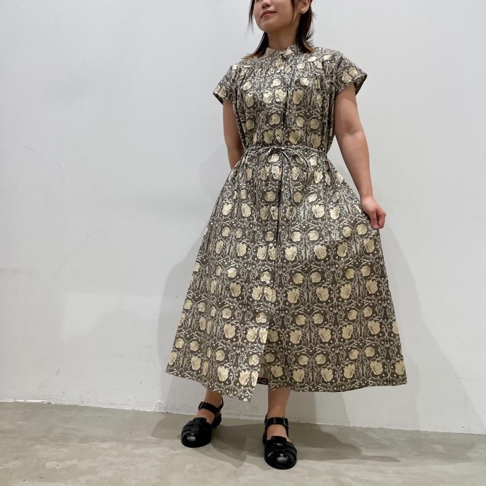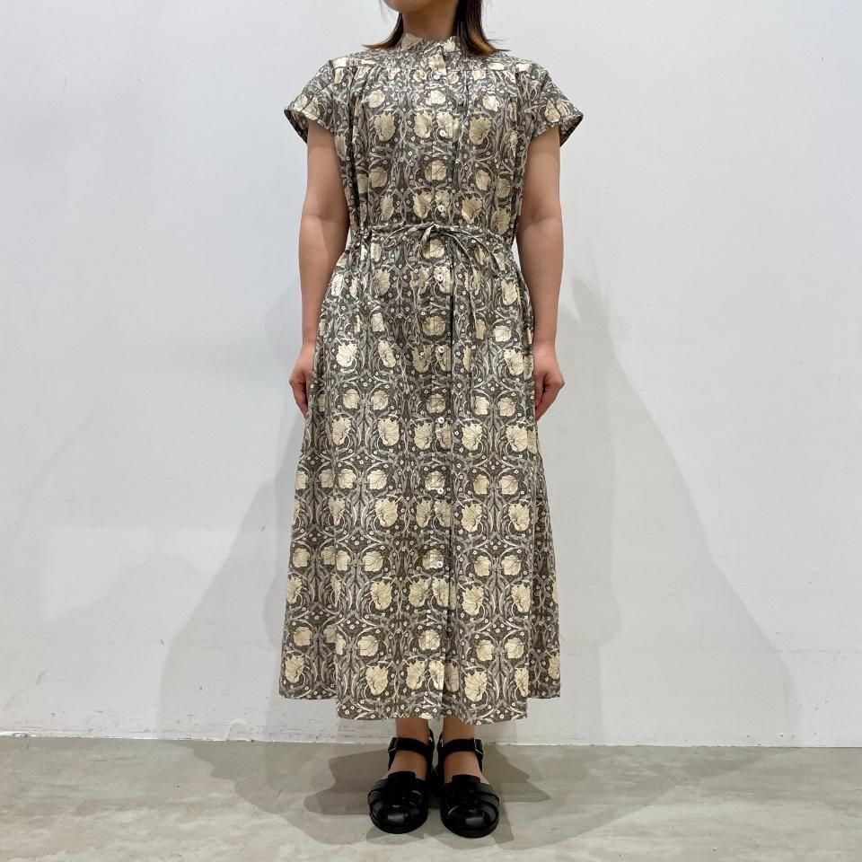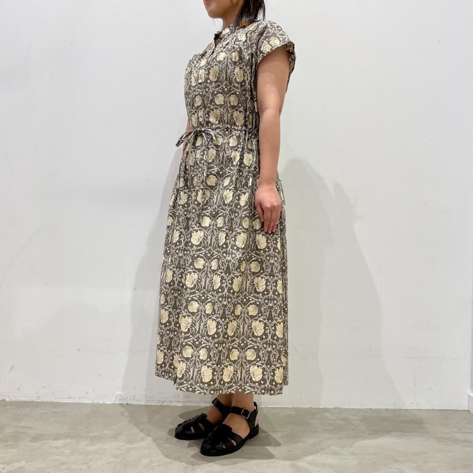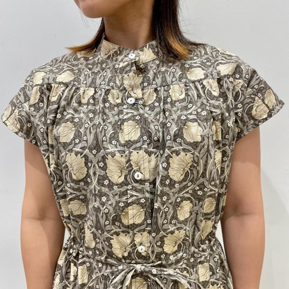 ウィリアムモリスの人気柄を使った、ウエストが絞れるドロストワンピース。