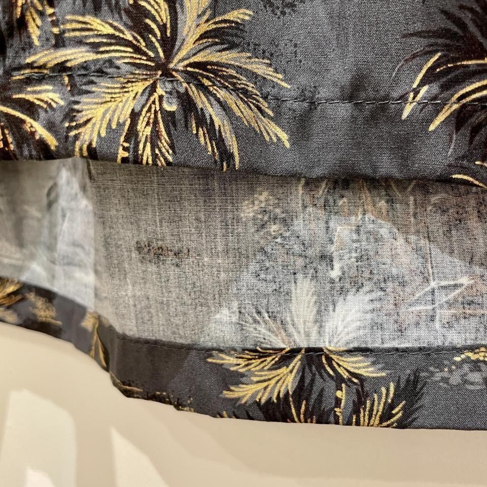 ヤシの木やパイナップルなどがゴールドのラインで描かれた、スタイリングに取り入れやすい大人柄です。