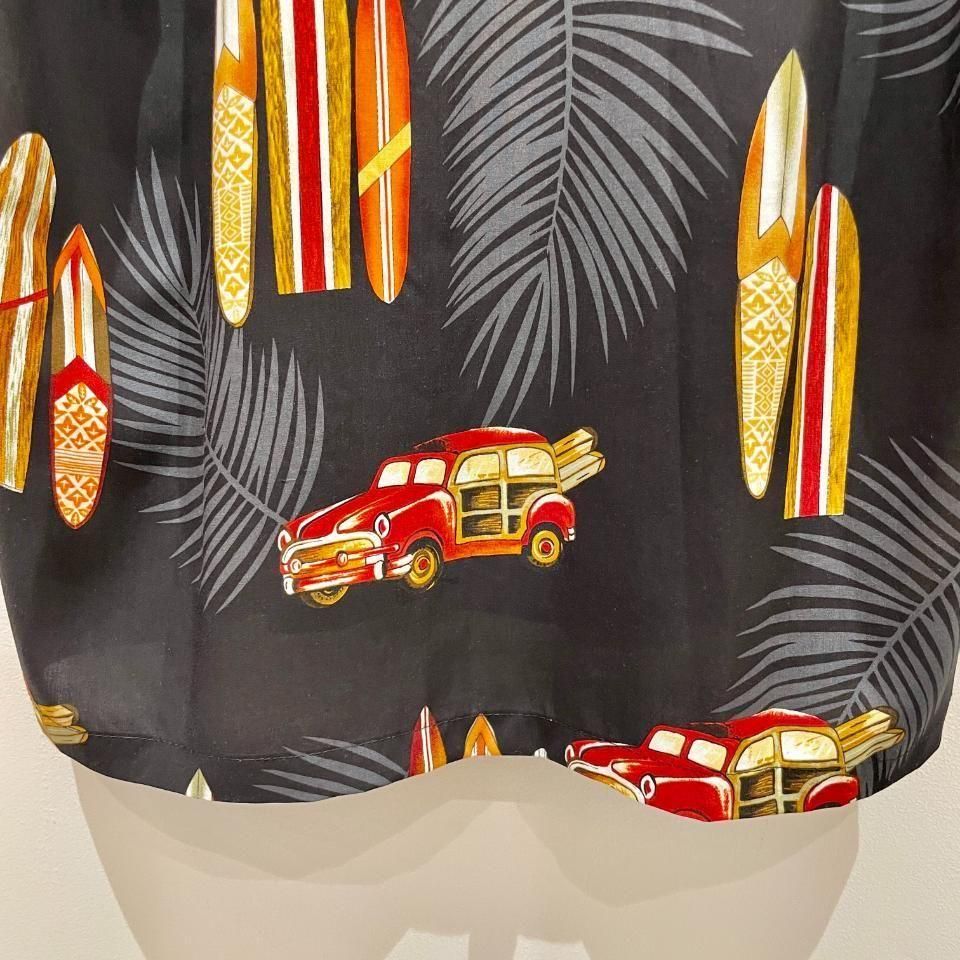 どこか懐かしいレトロな自動車とサーフボード柄が描かれています。