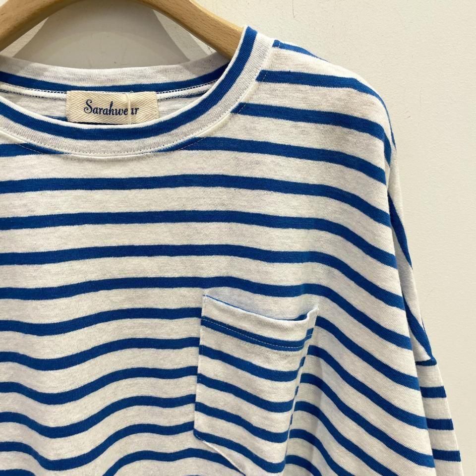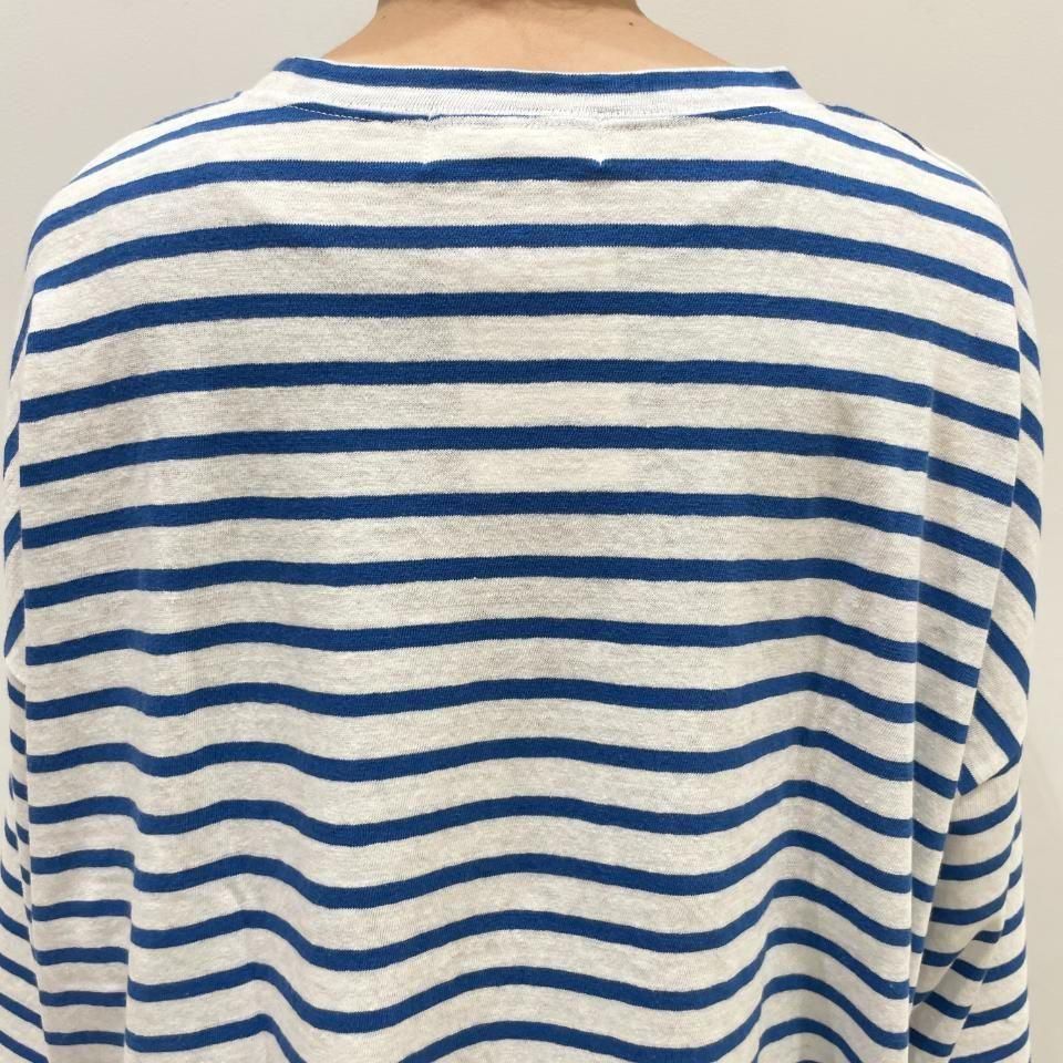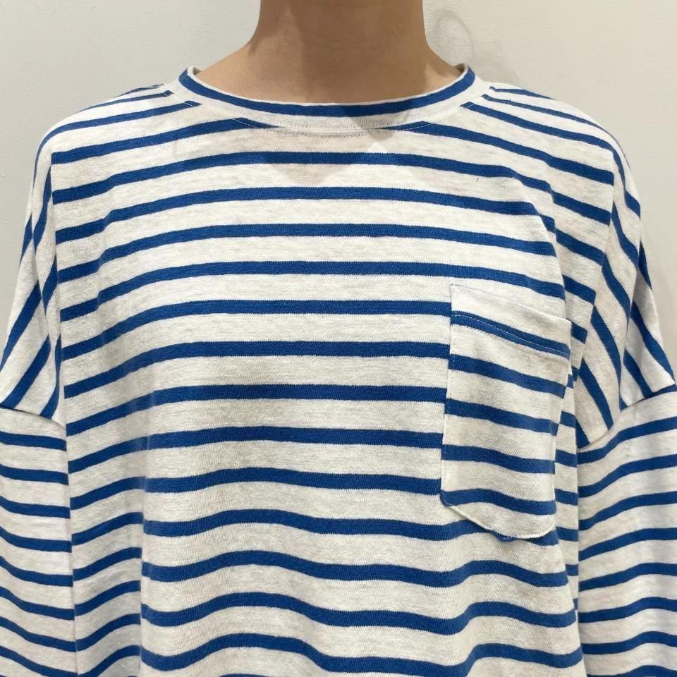 Cotton/Linen Border Super Big T-shirt(C91397)