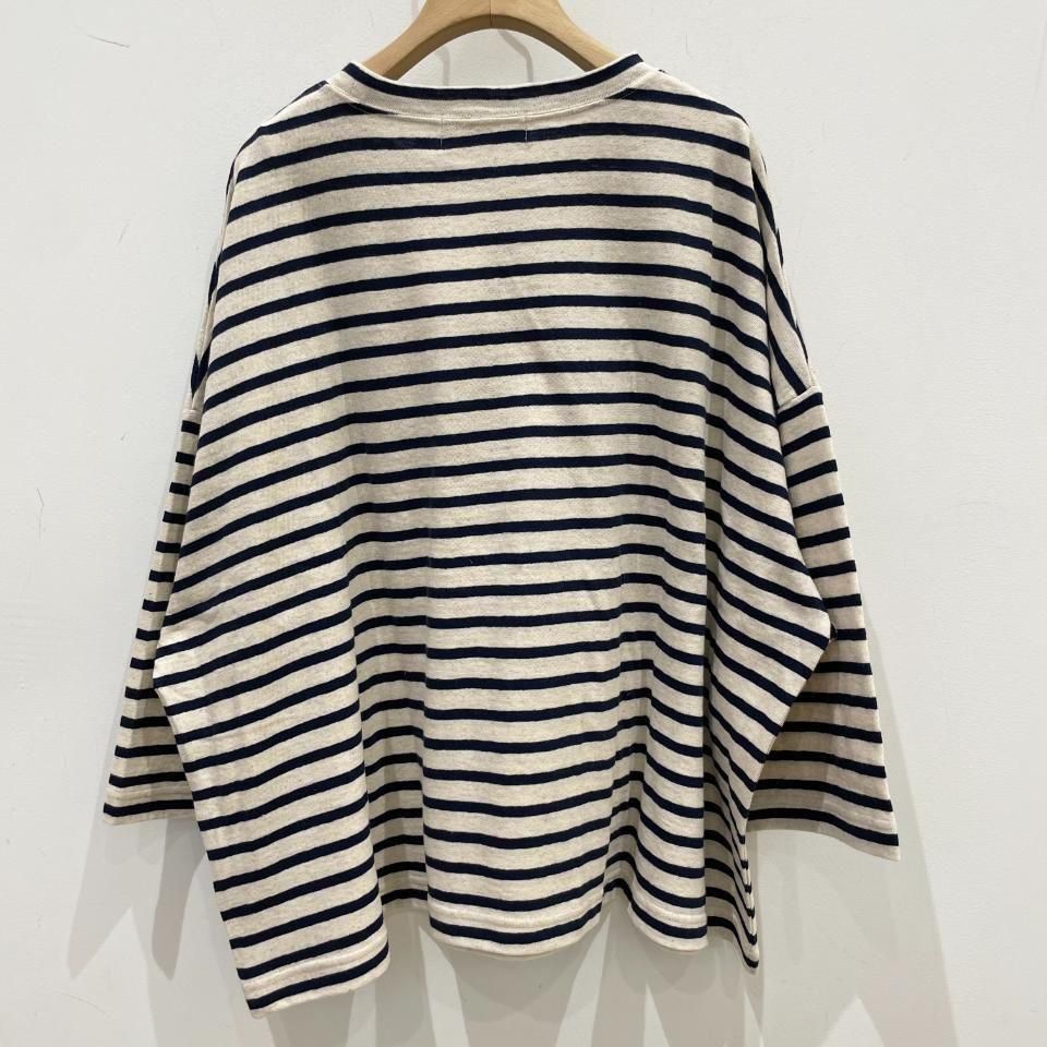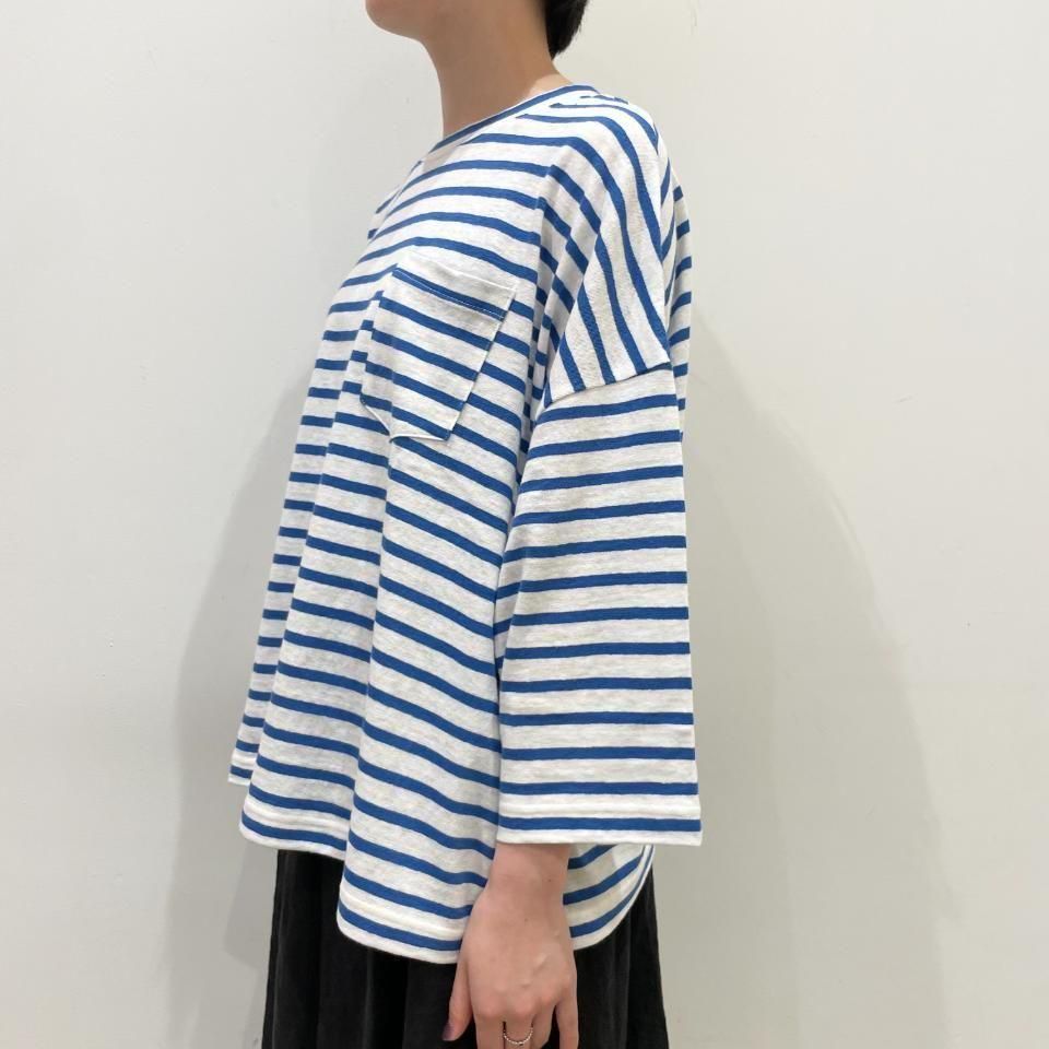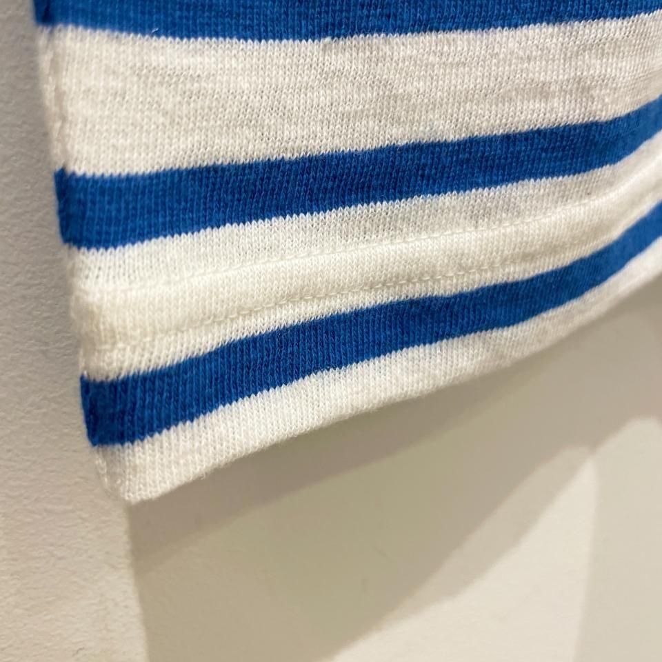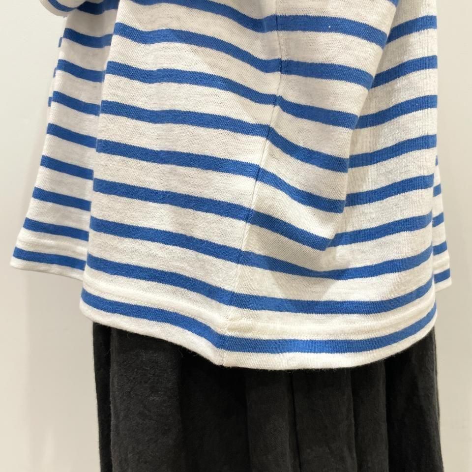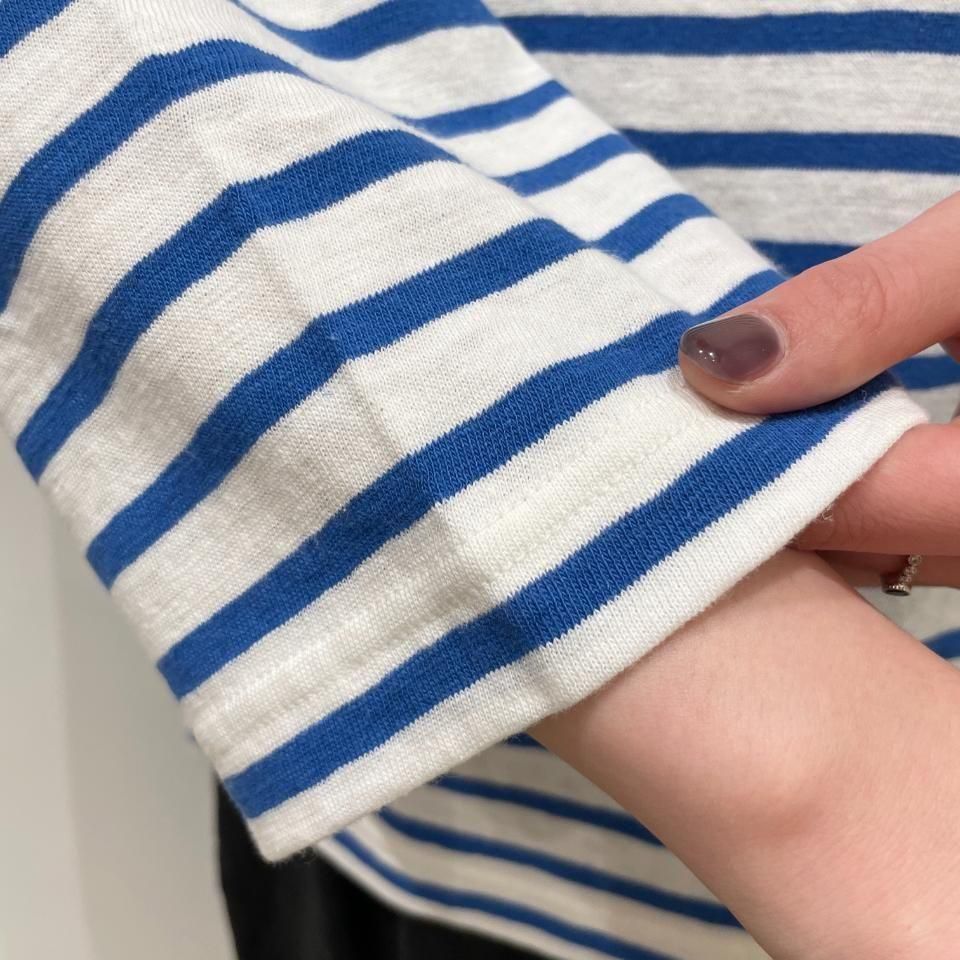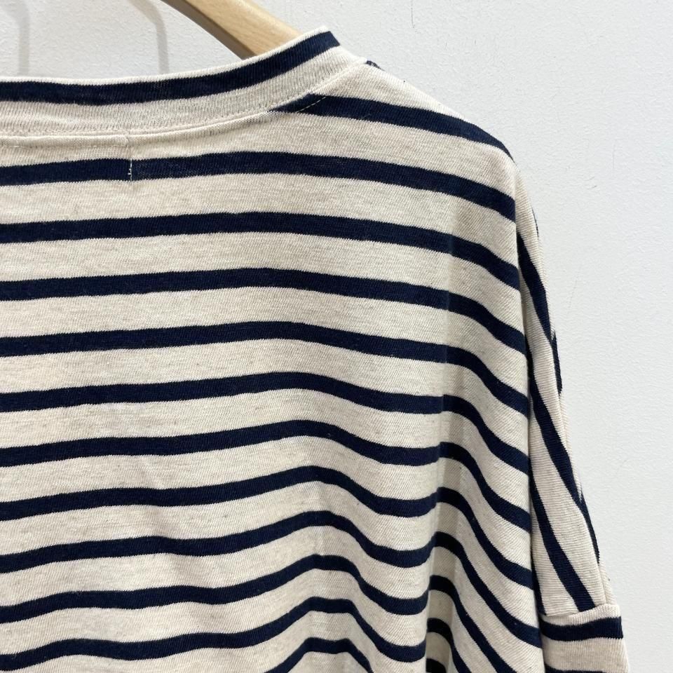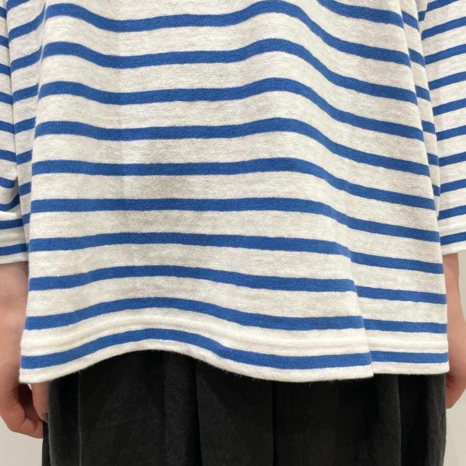 とても肌触りの良い綿麻ボーダージャージーは、麻混にすることで自然なムラ感のある独特な表情に仕上げられています。