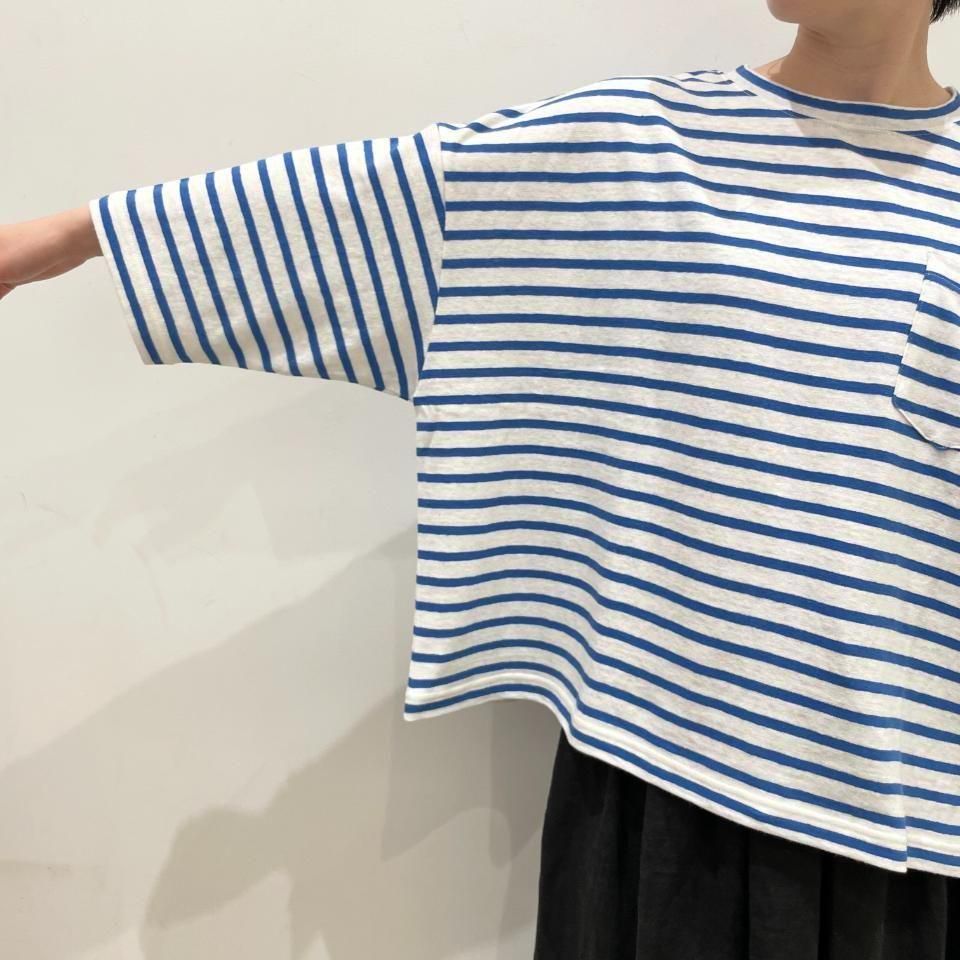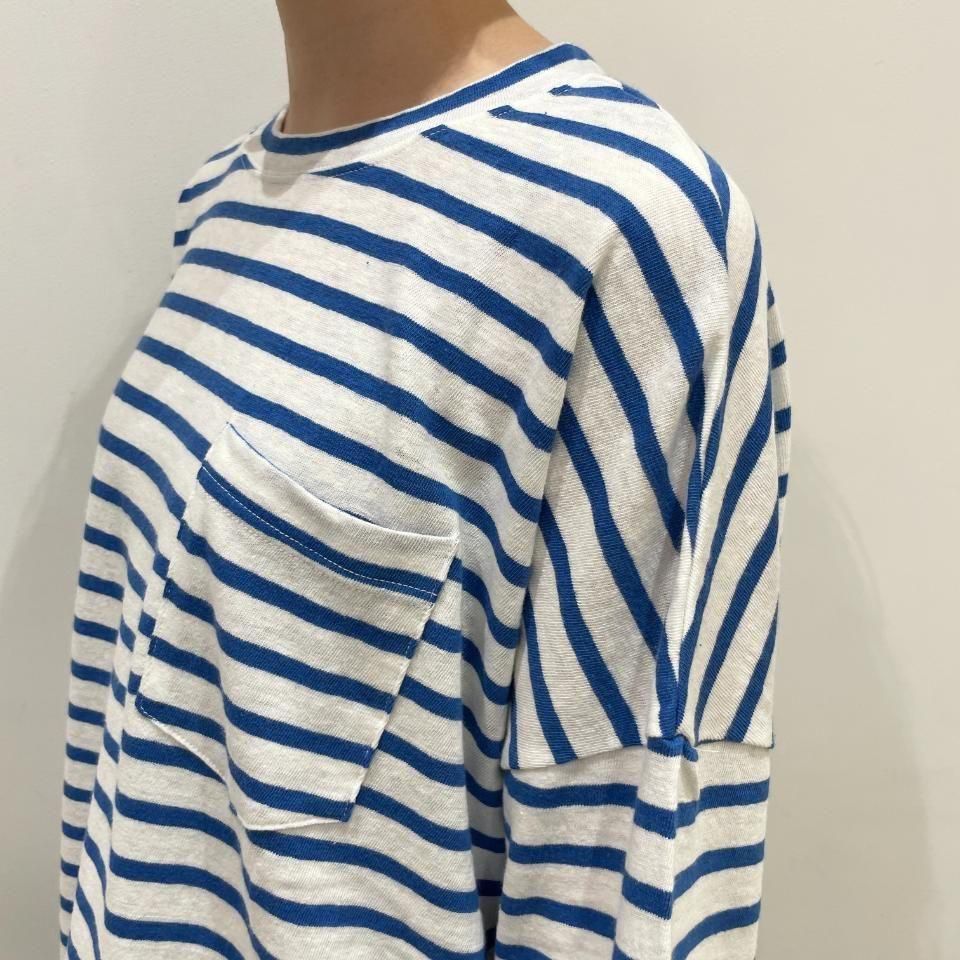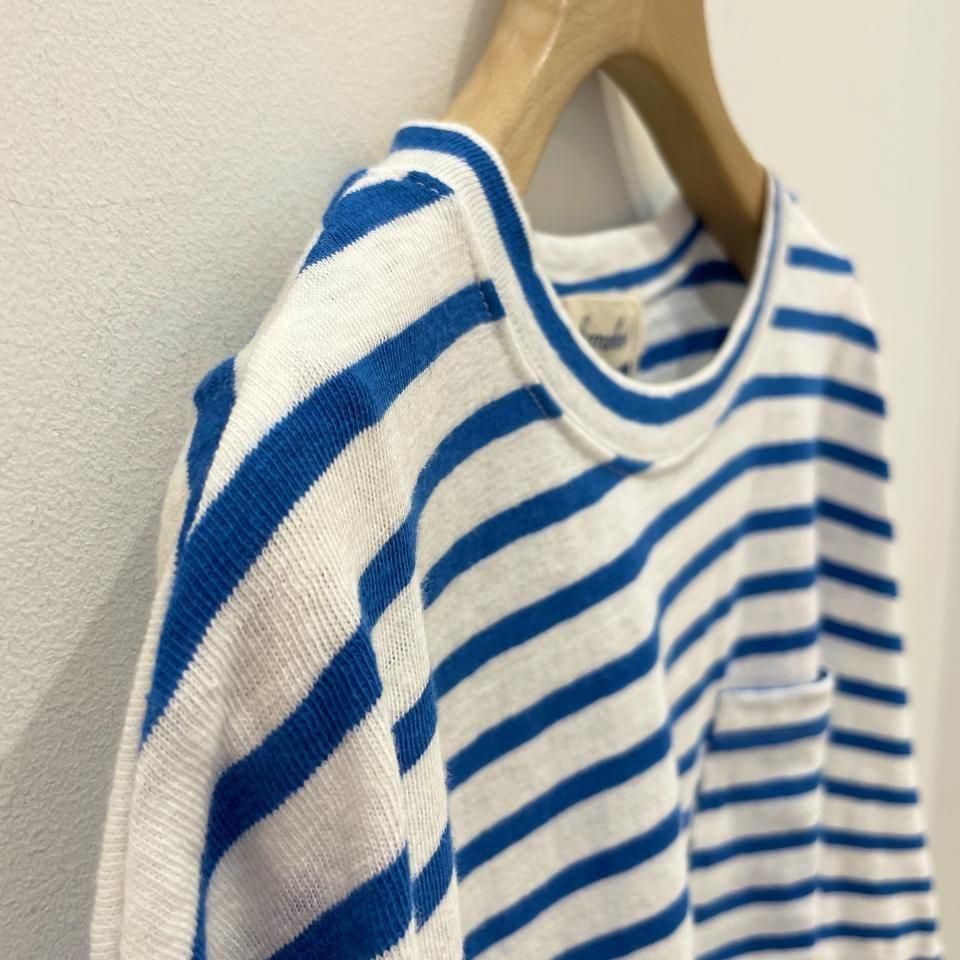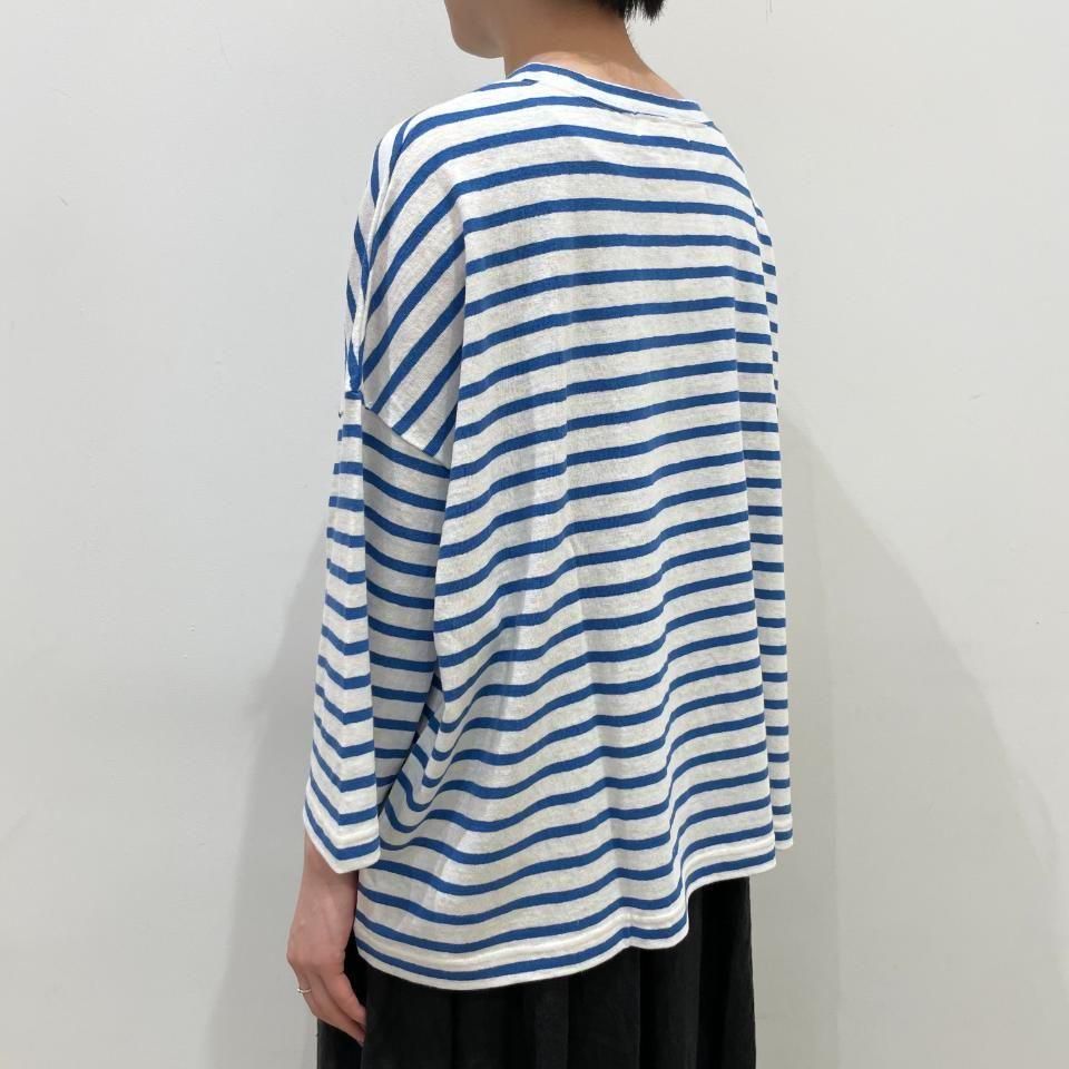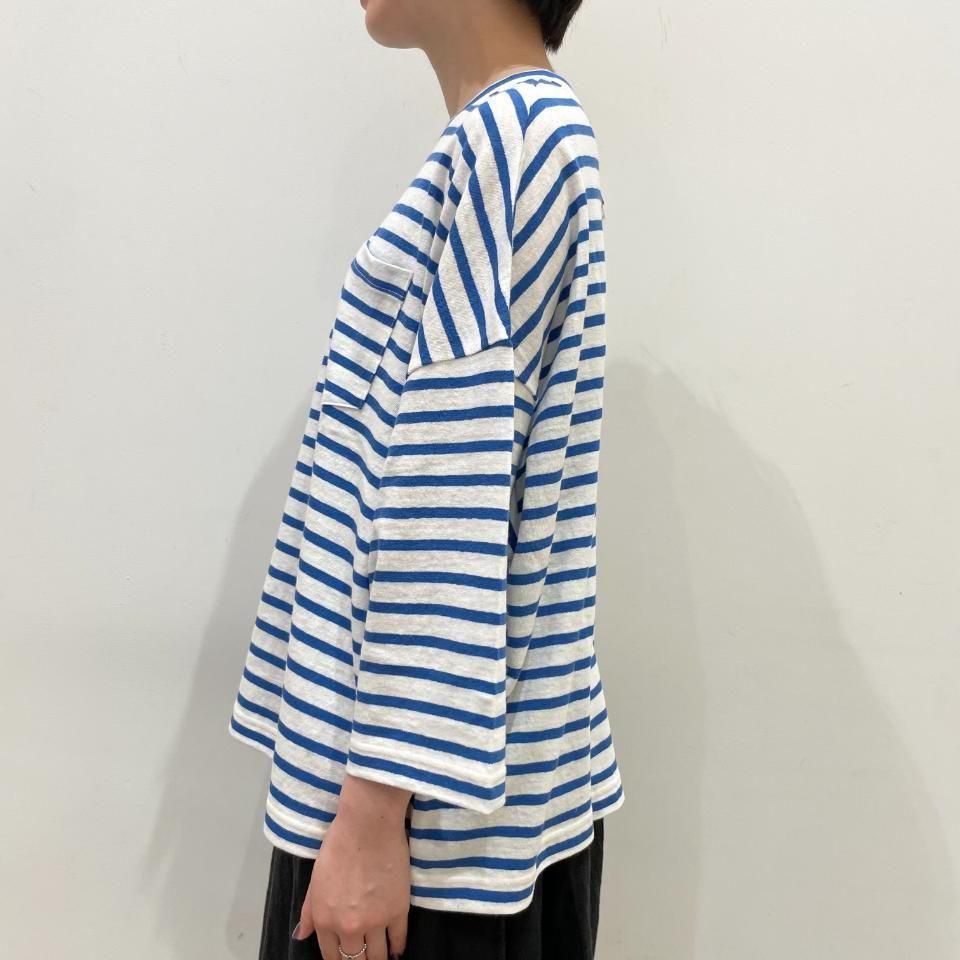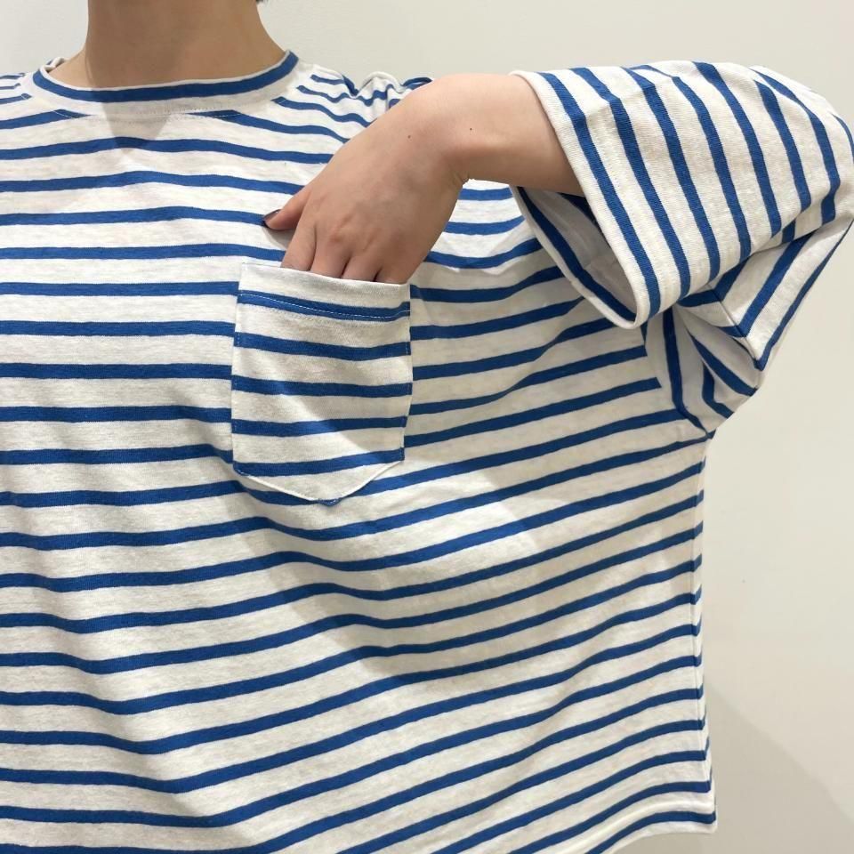 とても肌触りの良い綿麻ボーダージャージーは、麻混にすることで自然なムラ感のある独特な表情に仕上げられています。