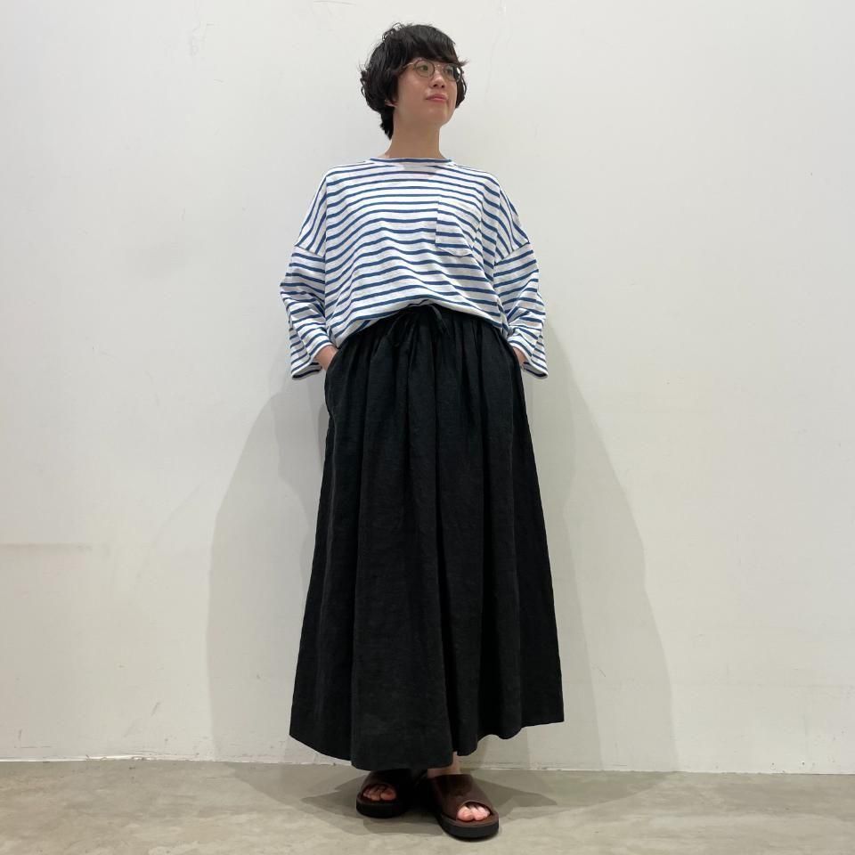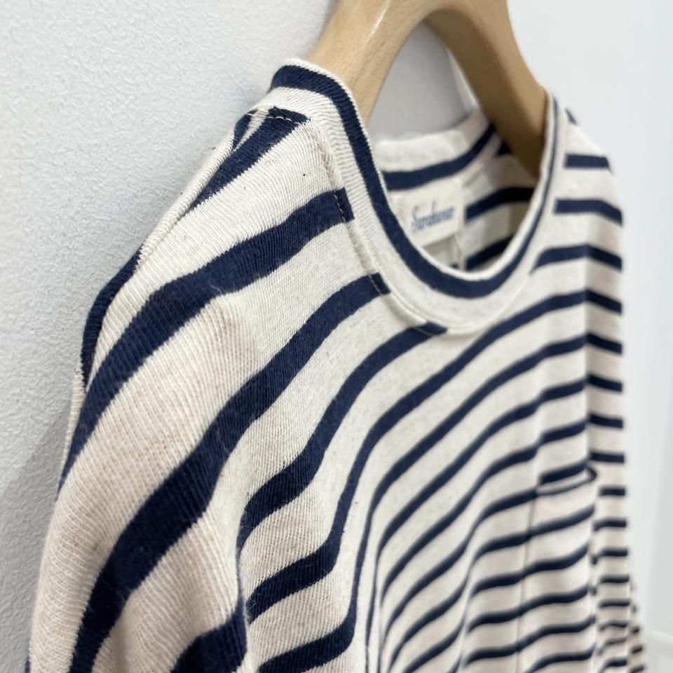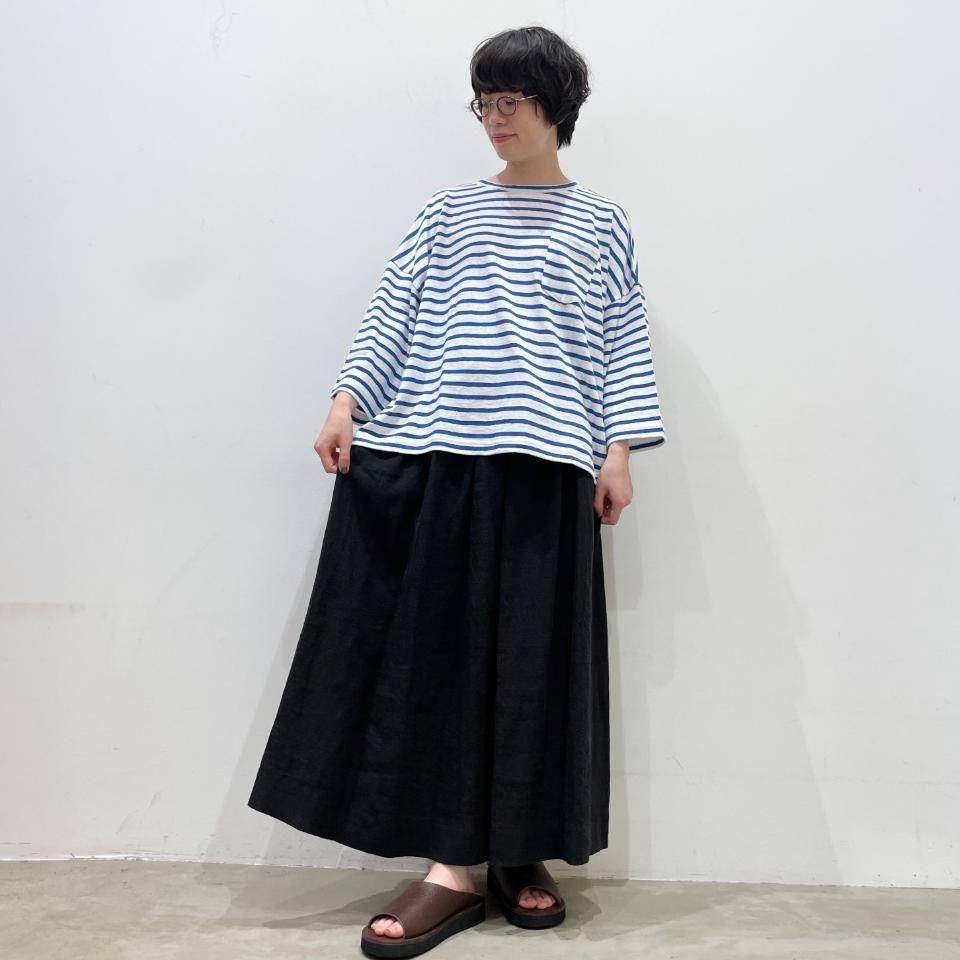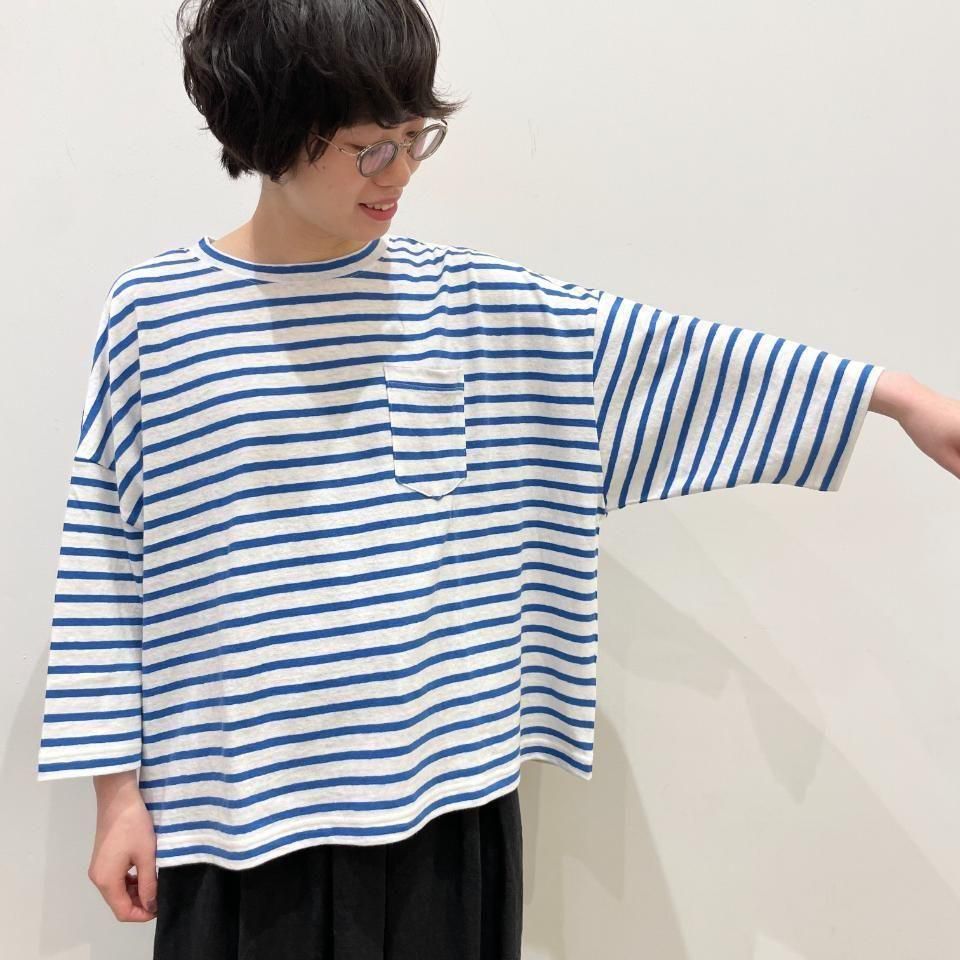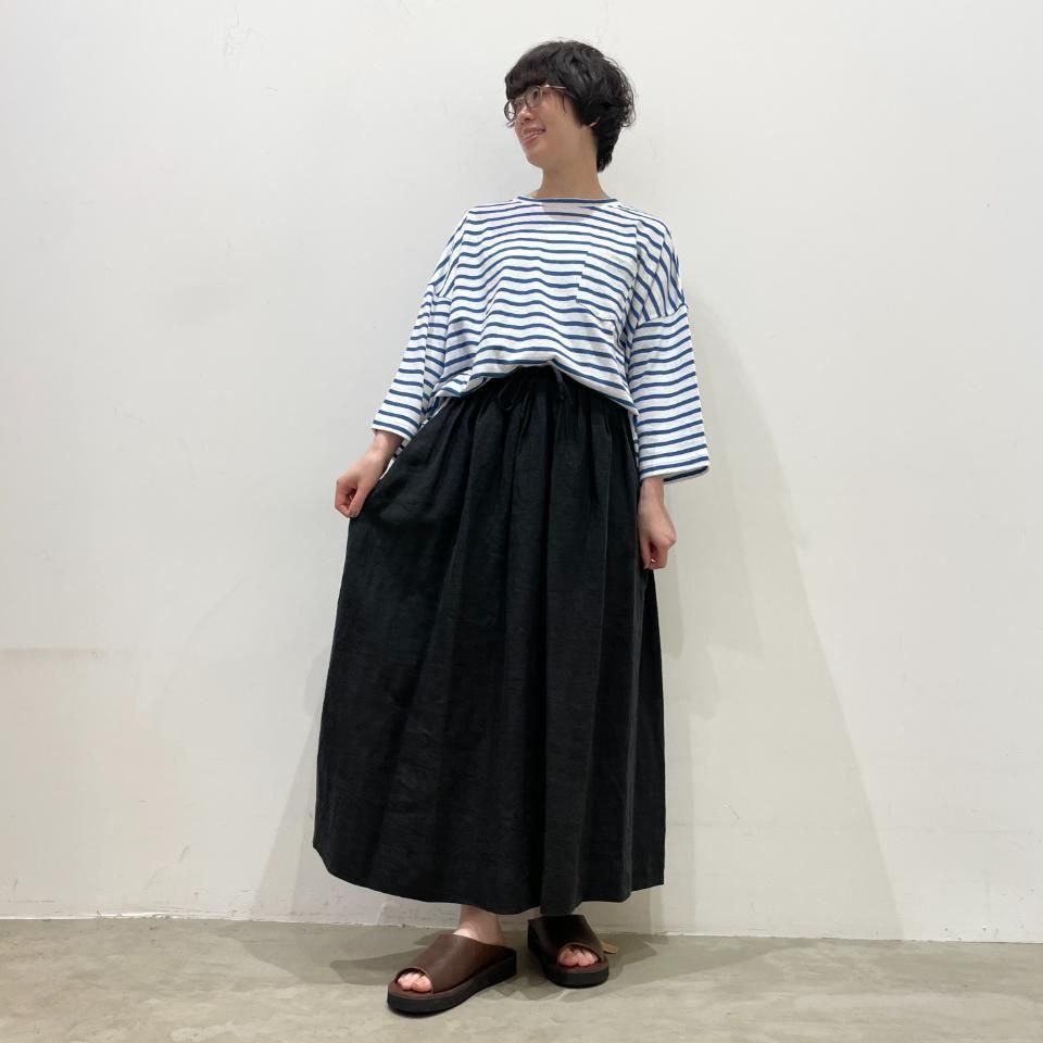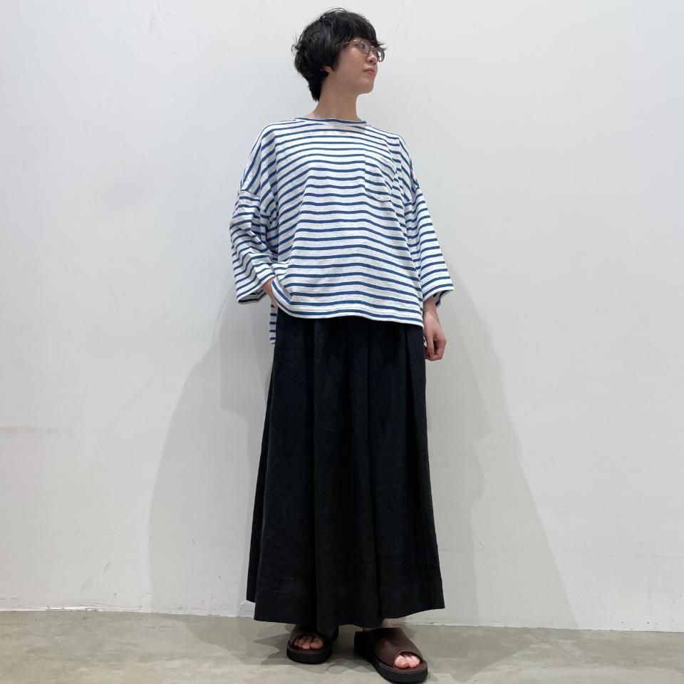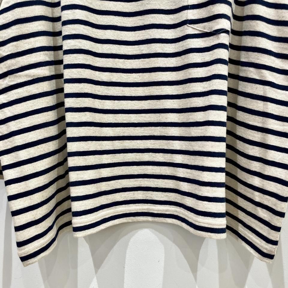 とても肌触りの良い綿麻ボーダージャージーは、麻混にすることで自然なムラ感のある独特な表情に仕上げられています。