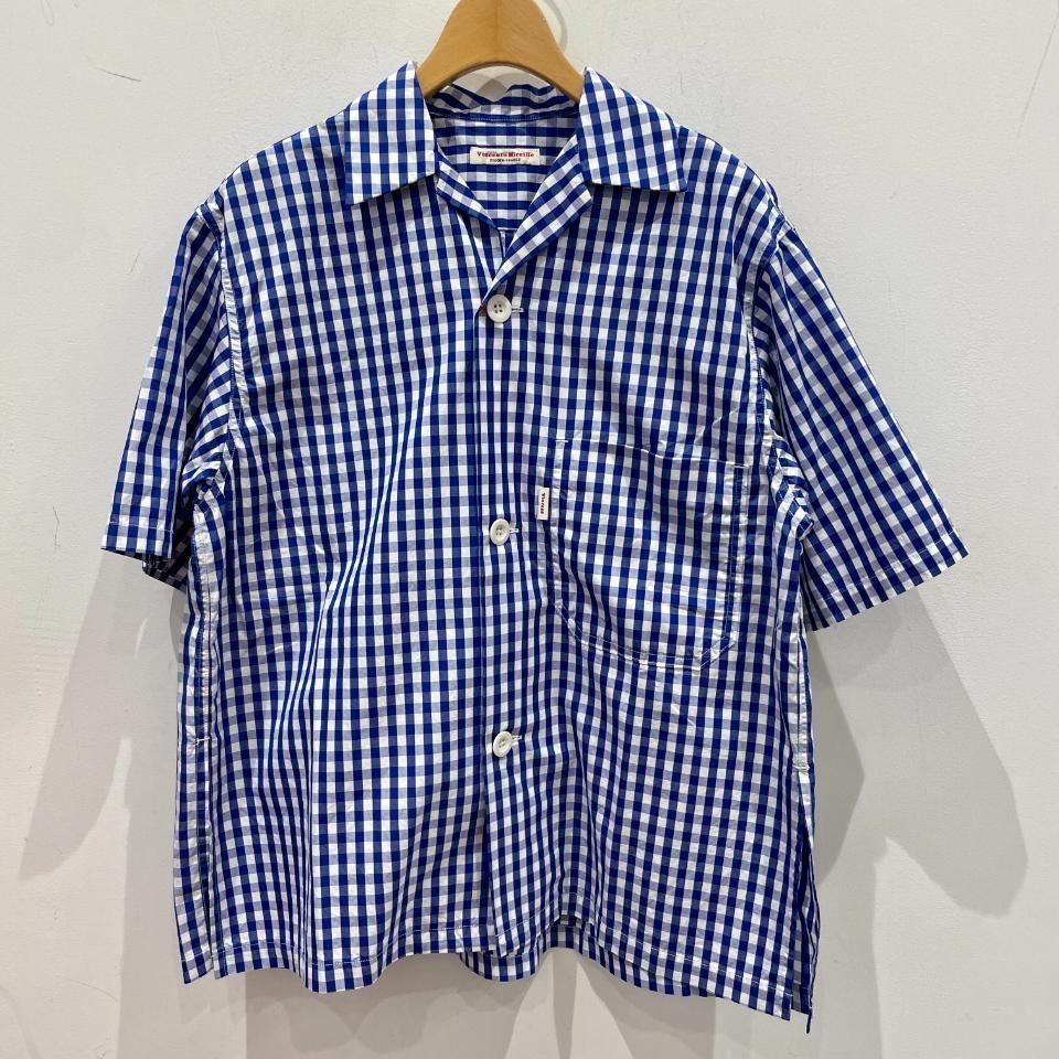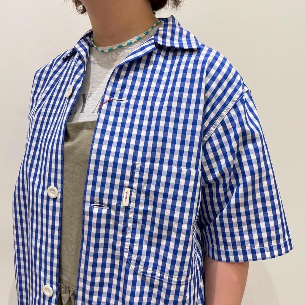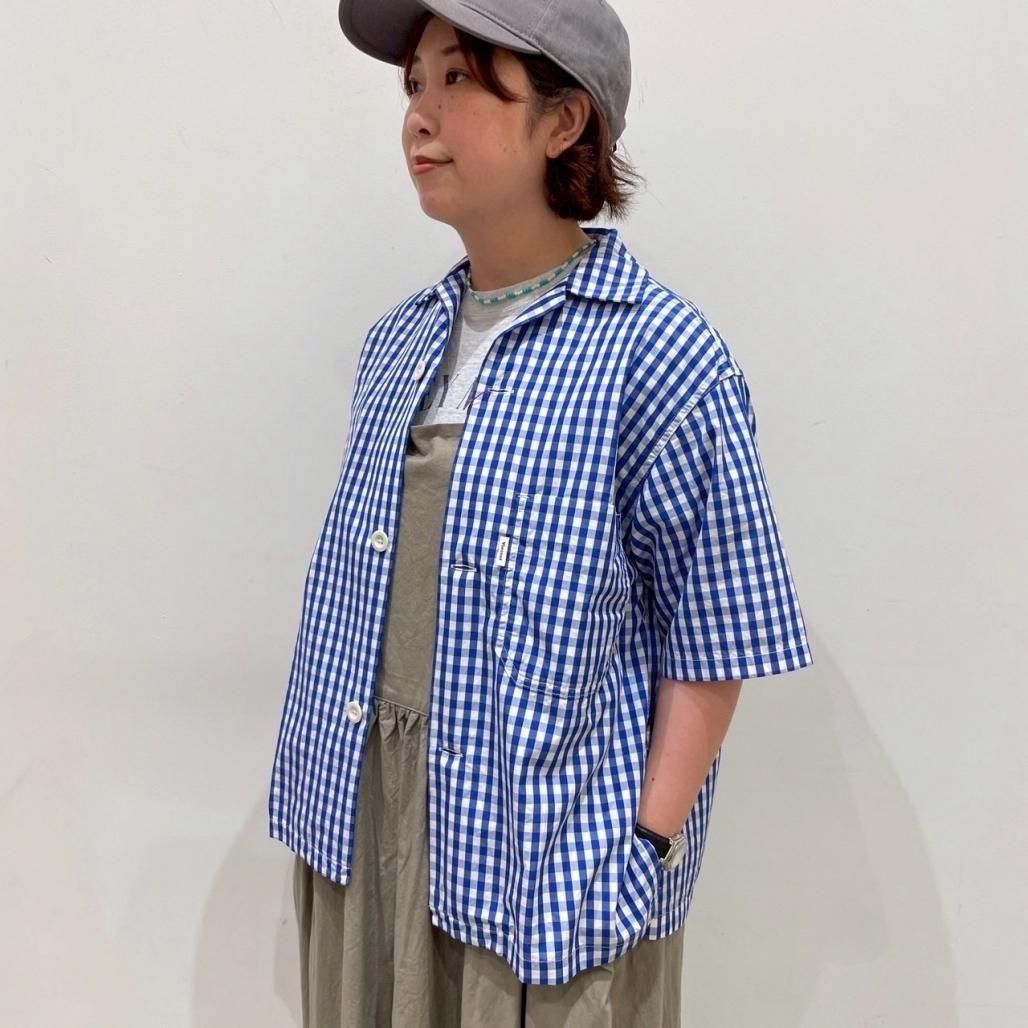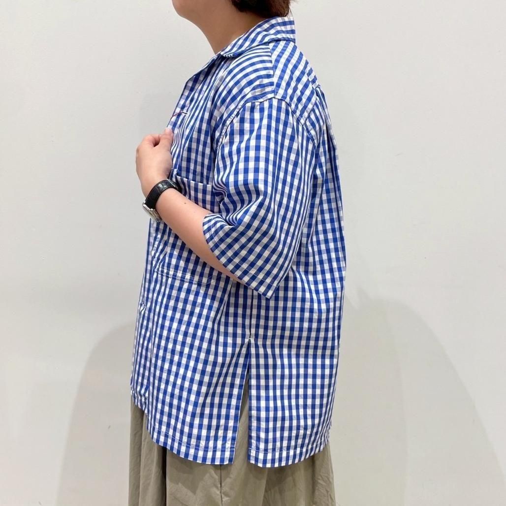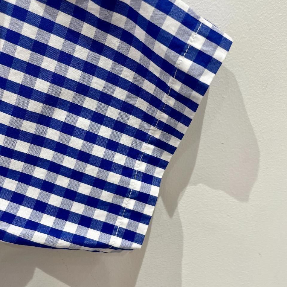 爽やかな発色の良いブルーのギンガムチェックオープンカラーシャツ。