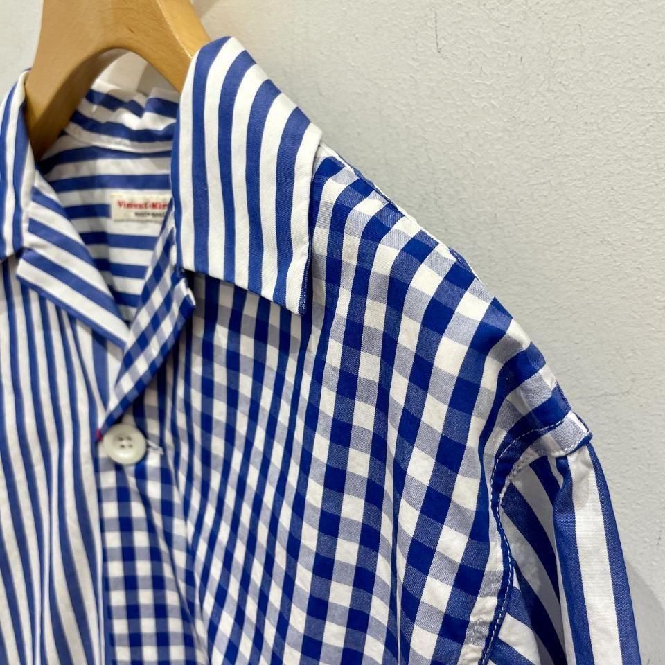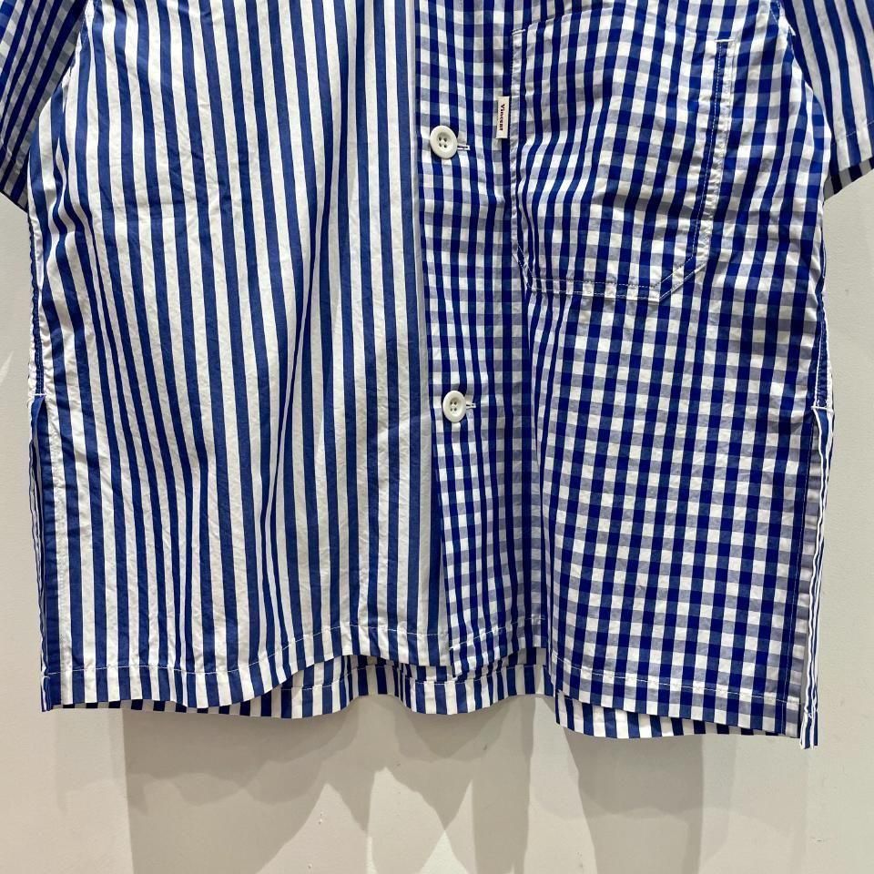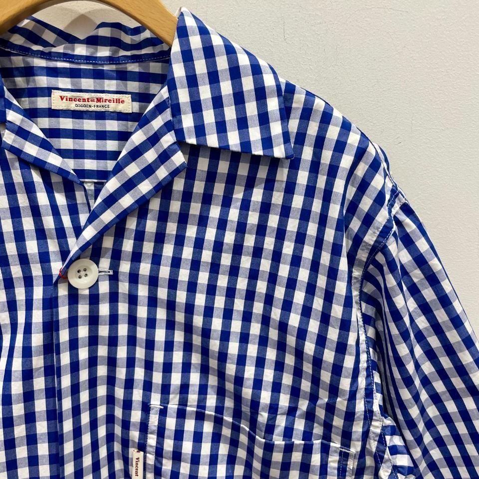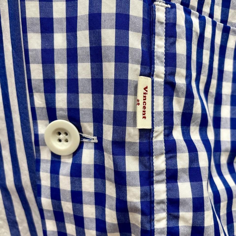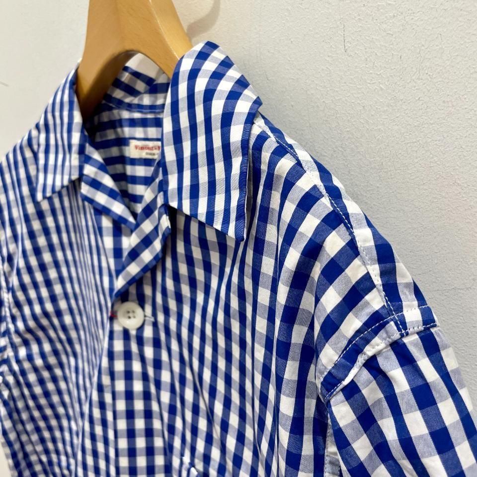 爽やかな発色の良いブルーのギンガムチェックオープンカラーシャツ。