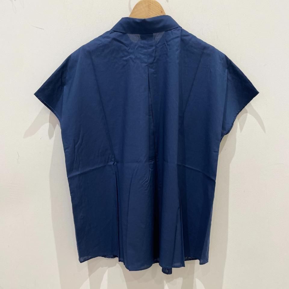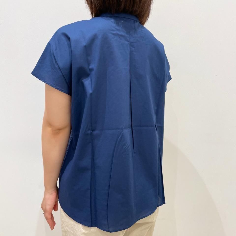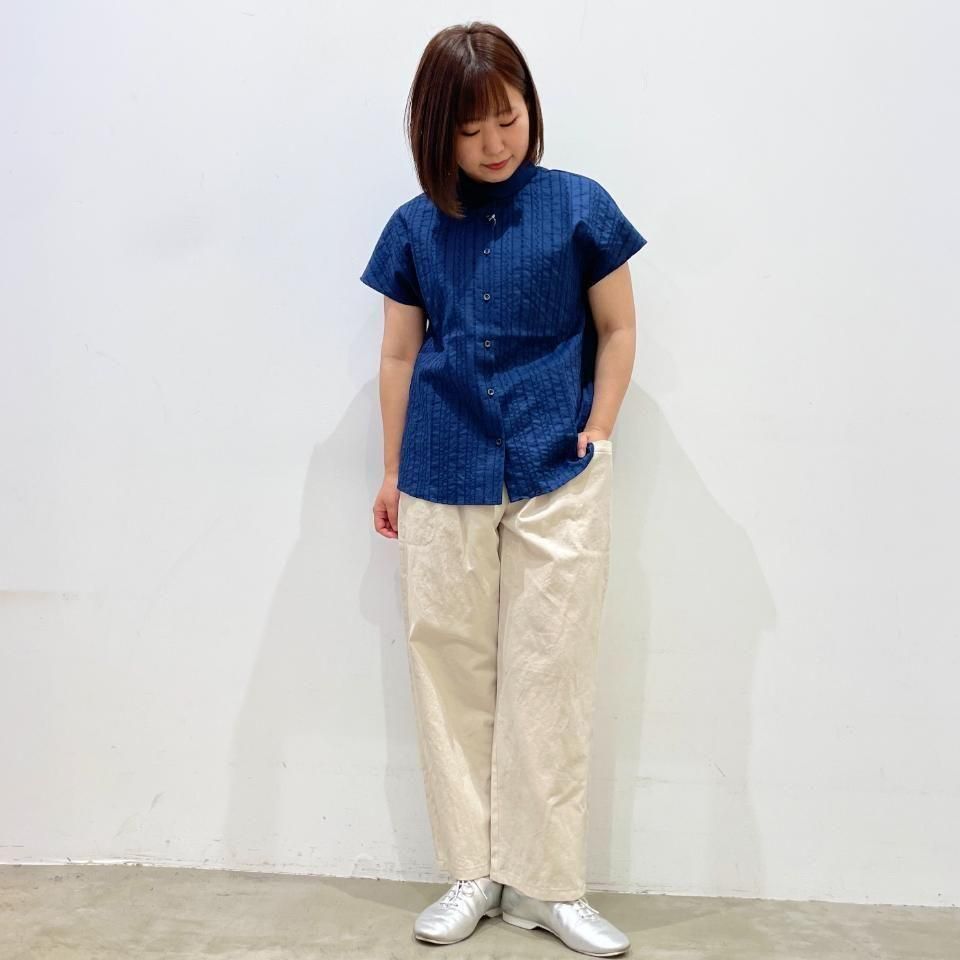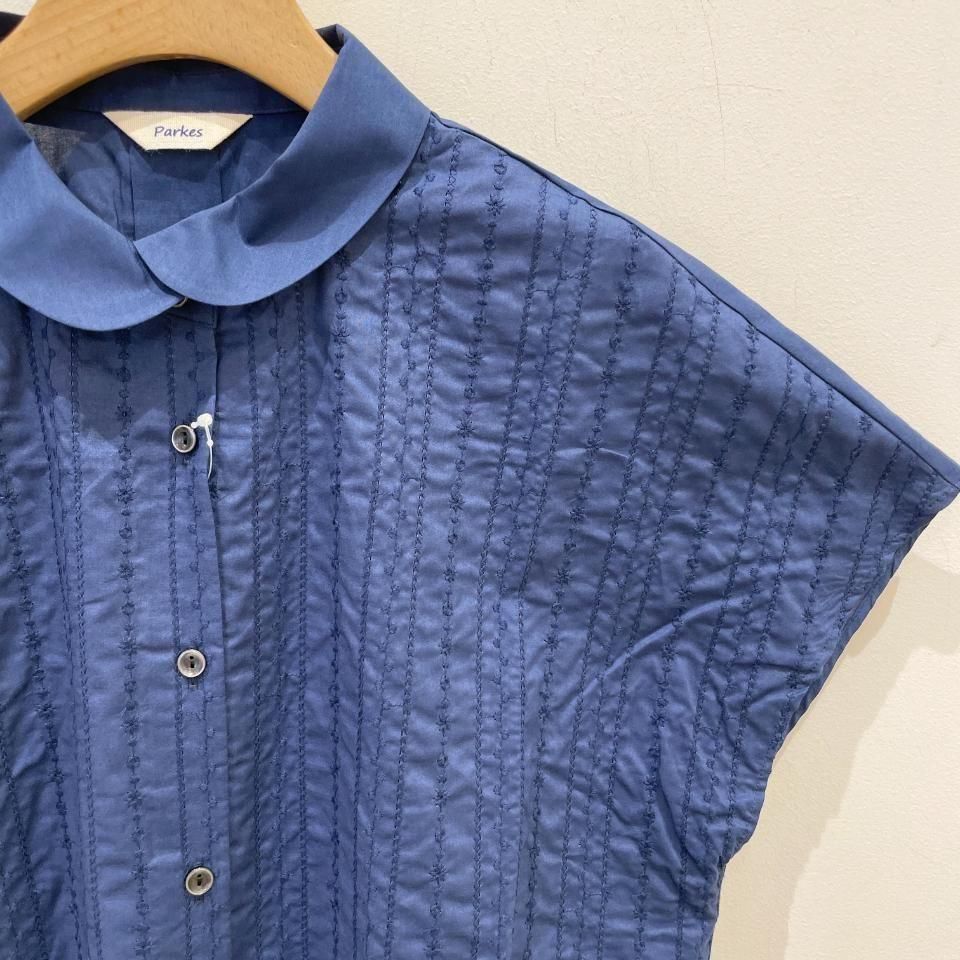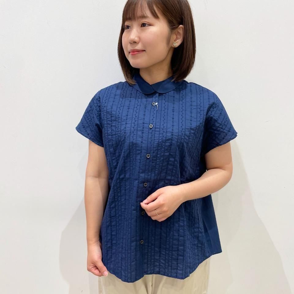 重ね襟裾ラウンド フラワーストライプ刺繍 半袖シャツ(PH2522505)