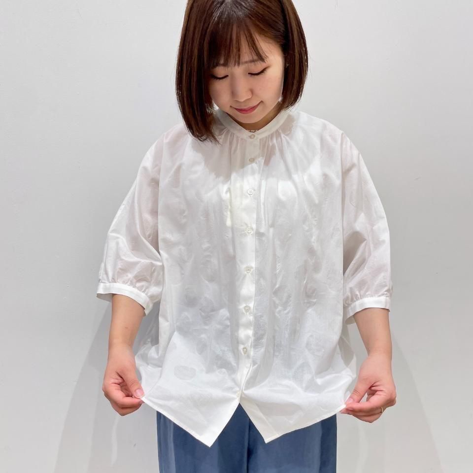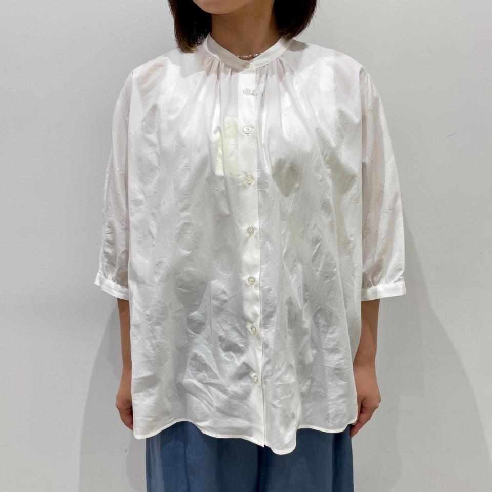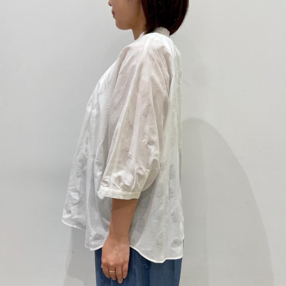 スタンドカラー 塩縮ドット ドルマン5分袖シャツ(PH2522506)