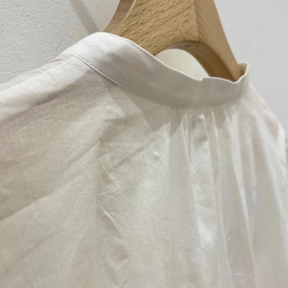 ネックラインや袖口はギャザーを寄せて、より女性らしく。