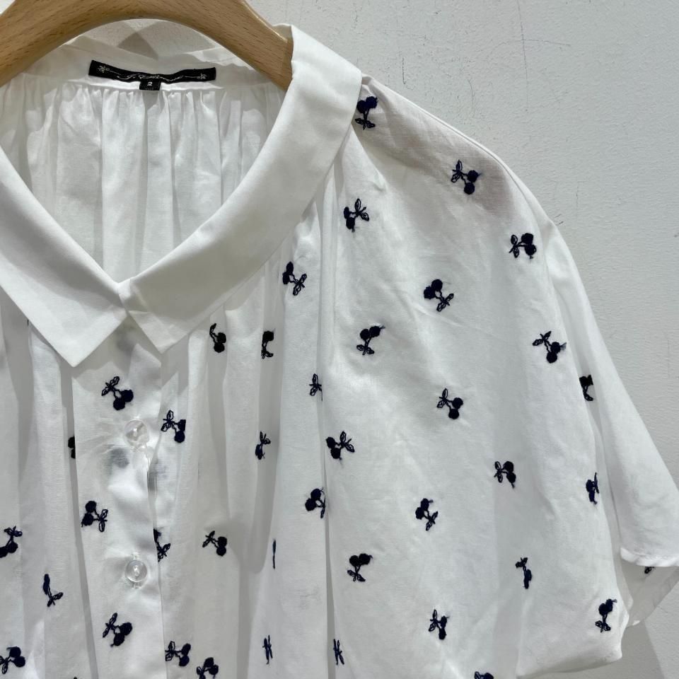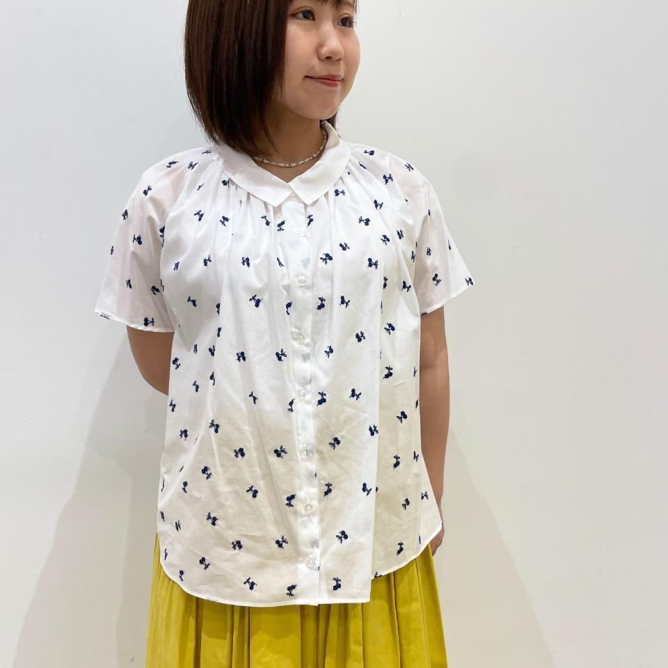 襟ぐりギャザー チェリー刺繍 半袖ブラウス(SH2522503)