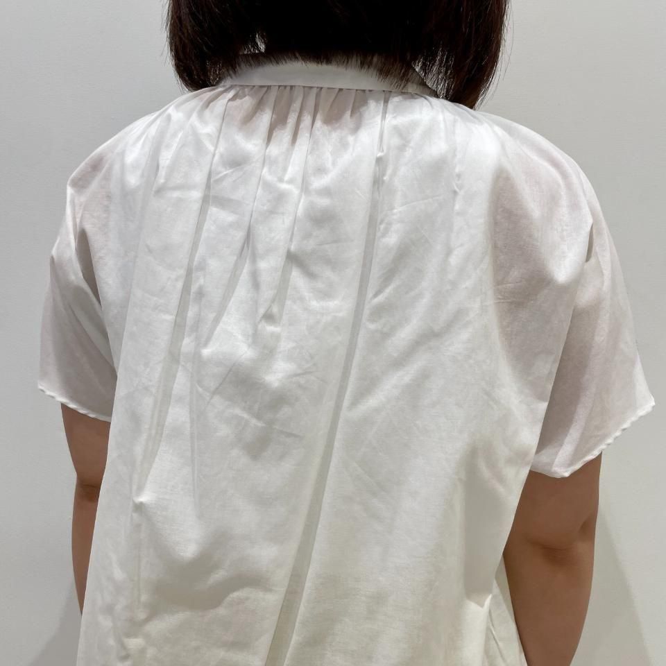 衿下にギャザーを寄せる事で肩回り、首回りはすっきりしているのに、