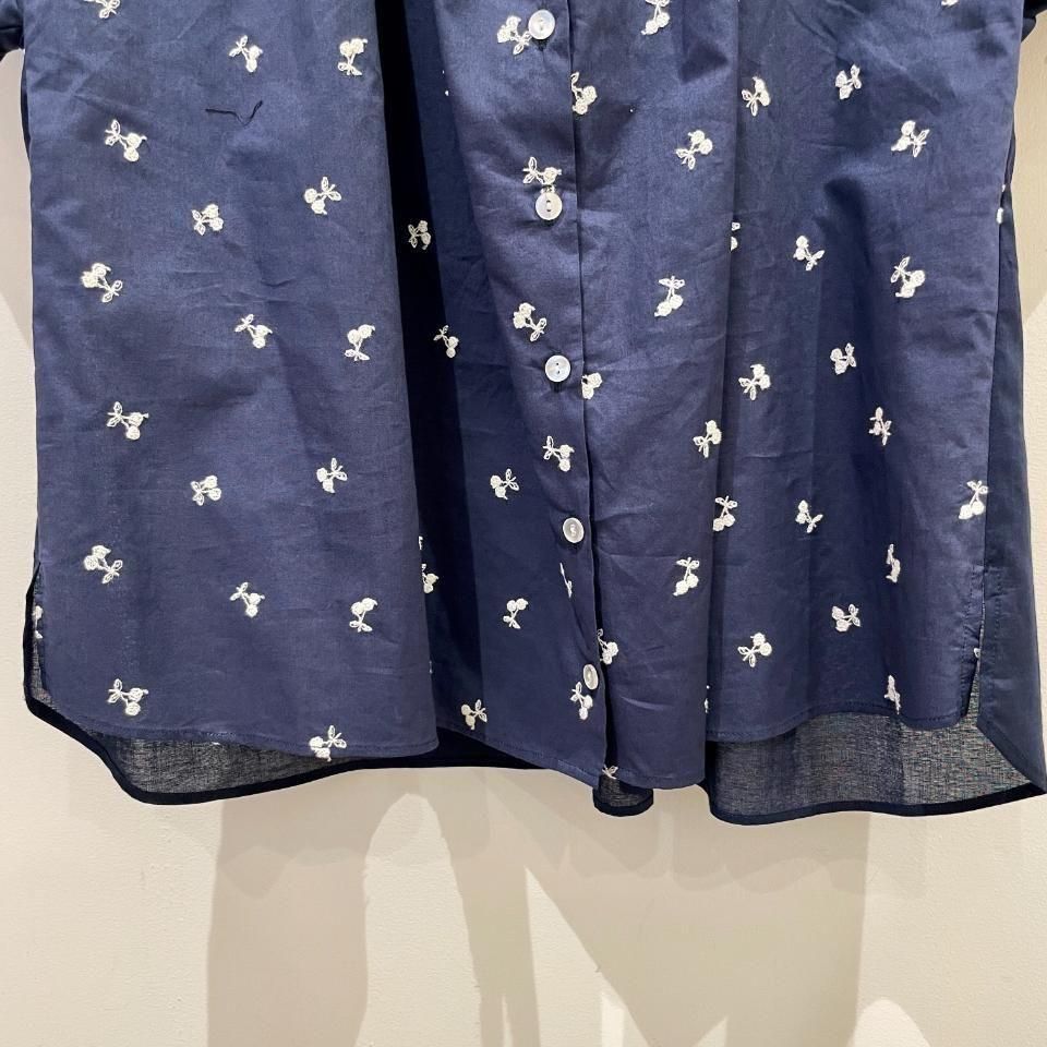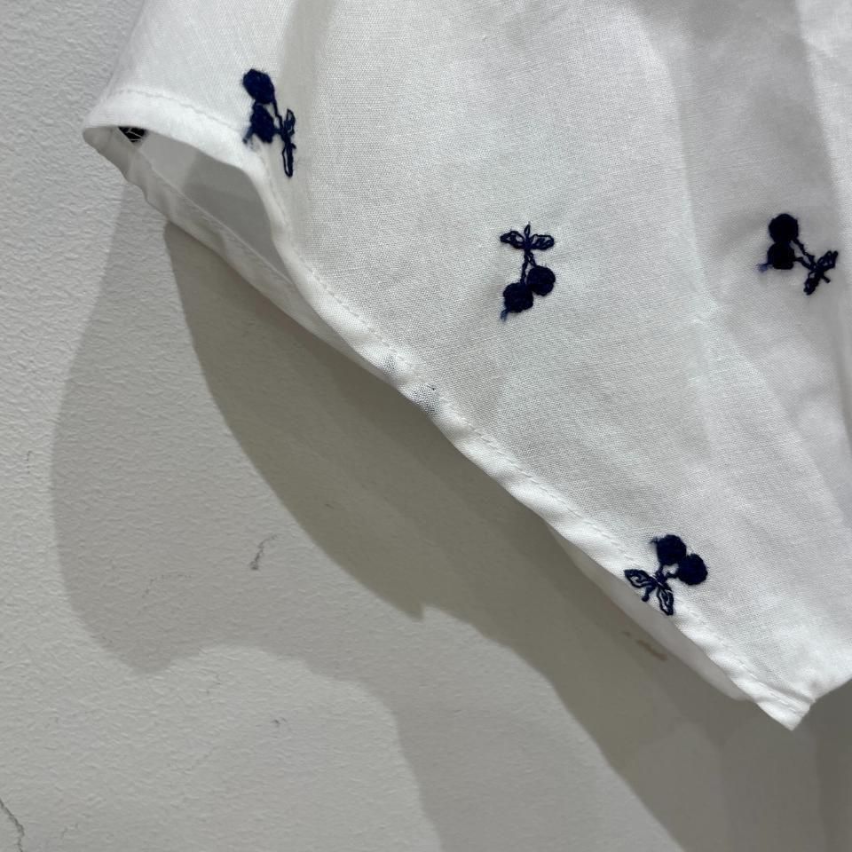 60ローンチェリー刺繍が施された前身頃と、無地の後ろ身頃で作られたシャツ。