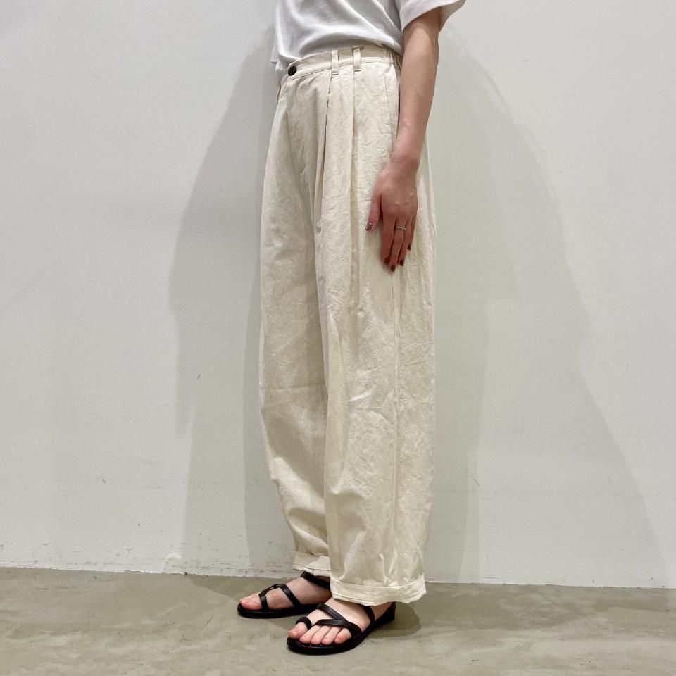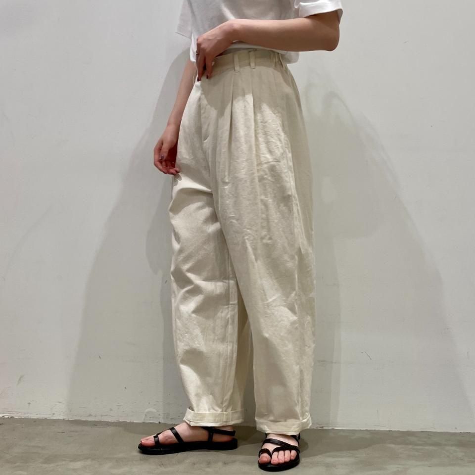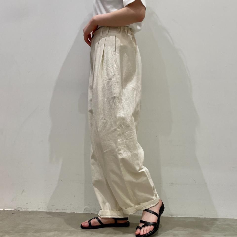 綿麻のナチュラルな風合いの裾タックパンツ。