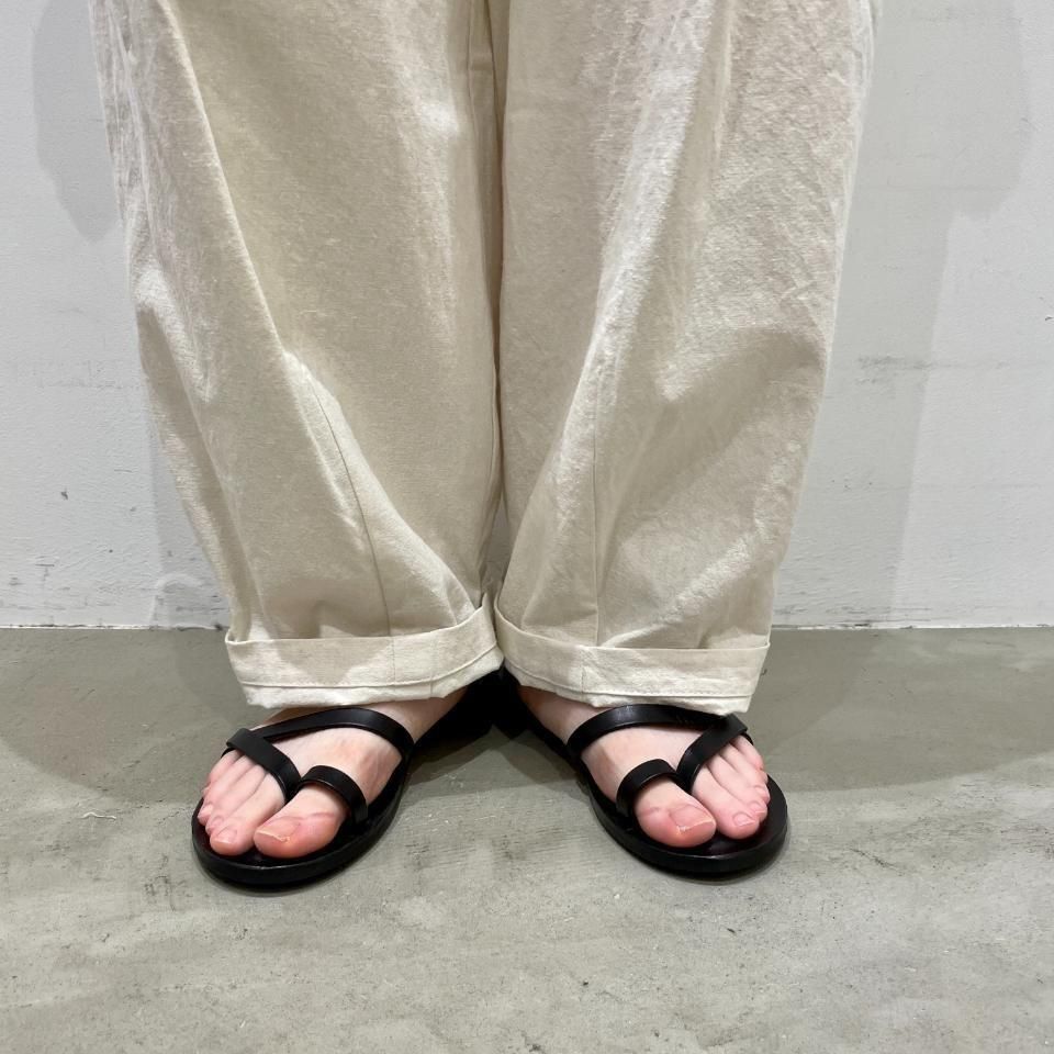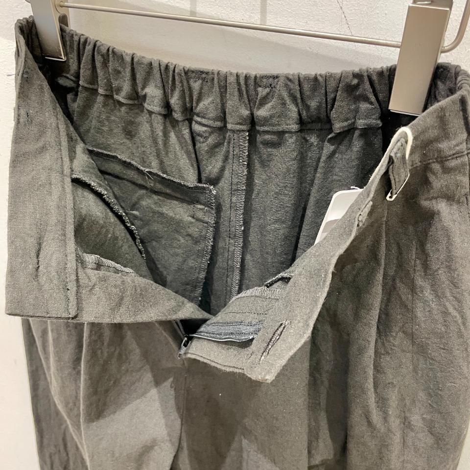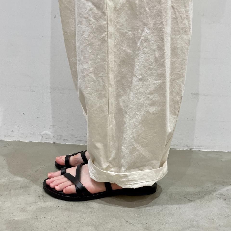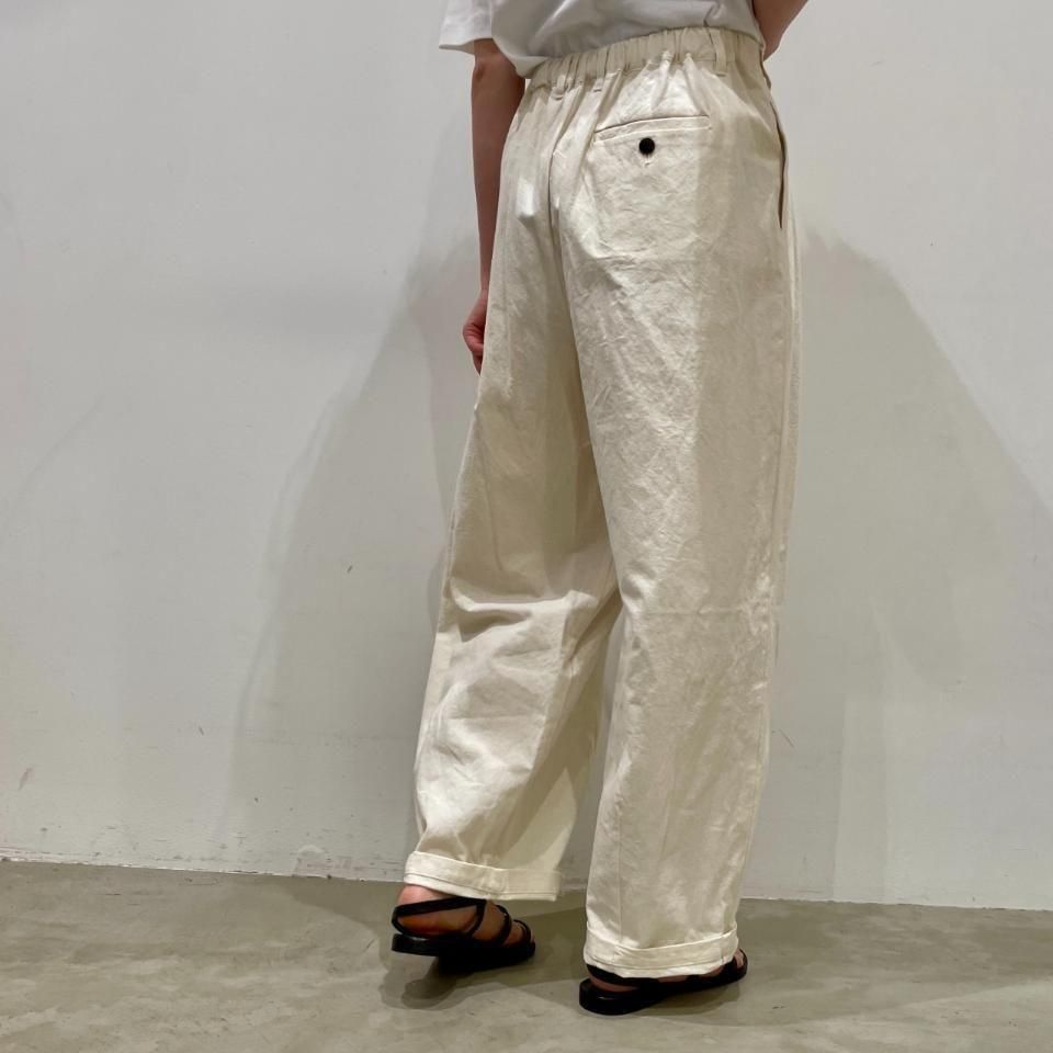 綿麻のナチュラルな風合いの裾タックパンツ。