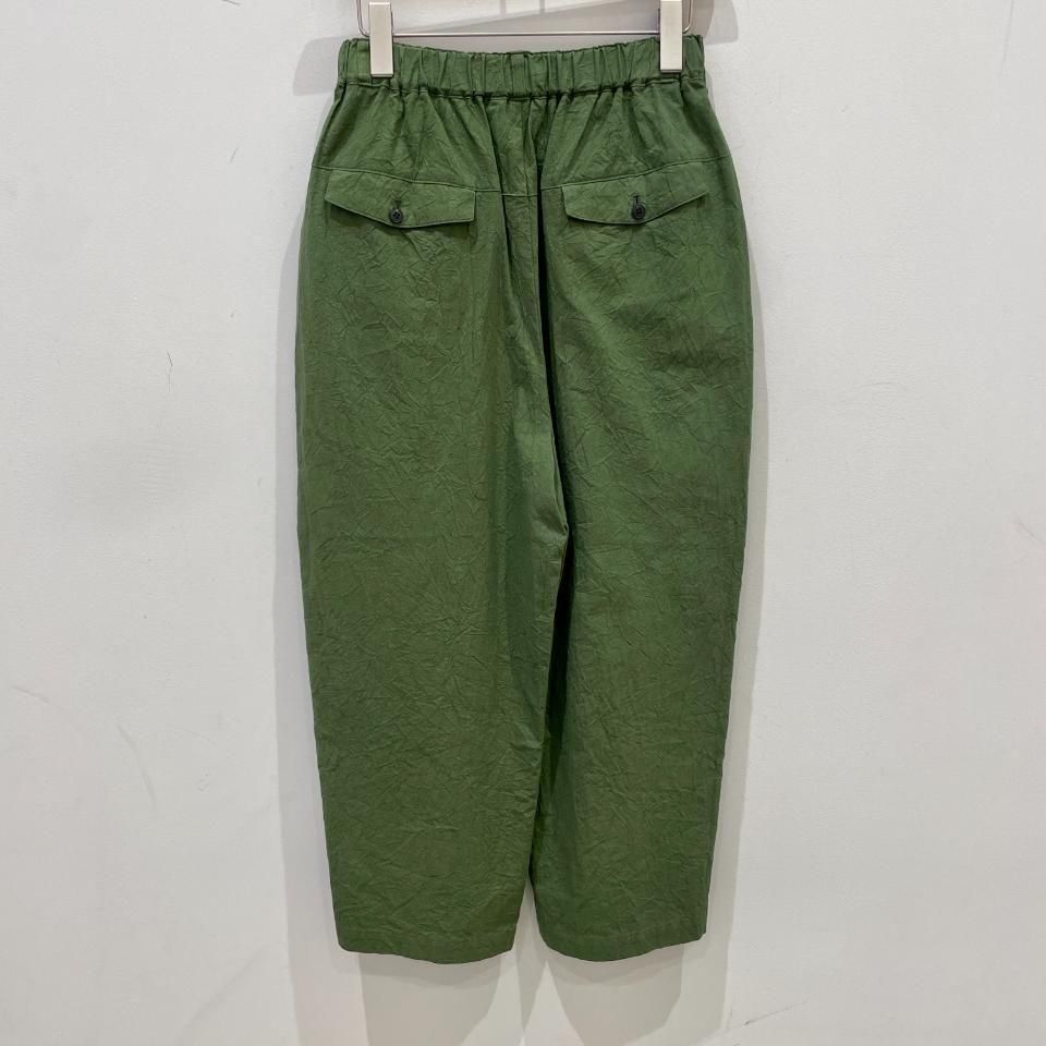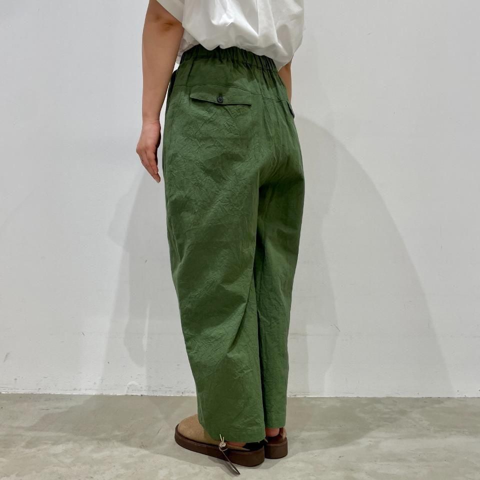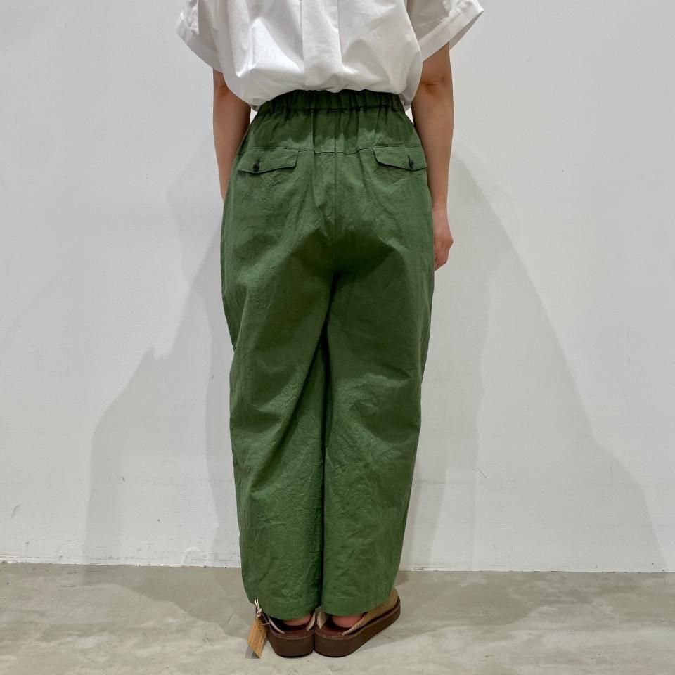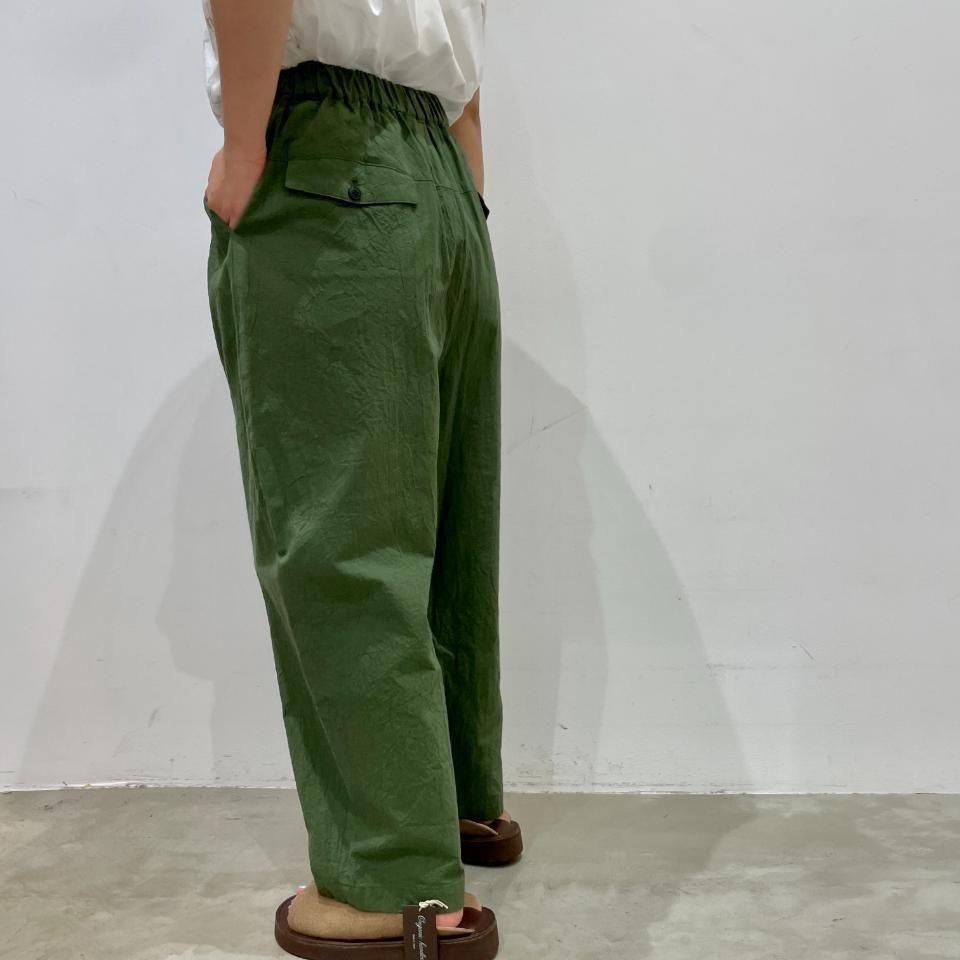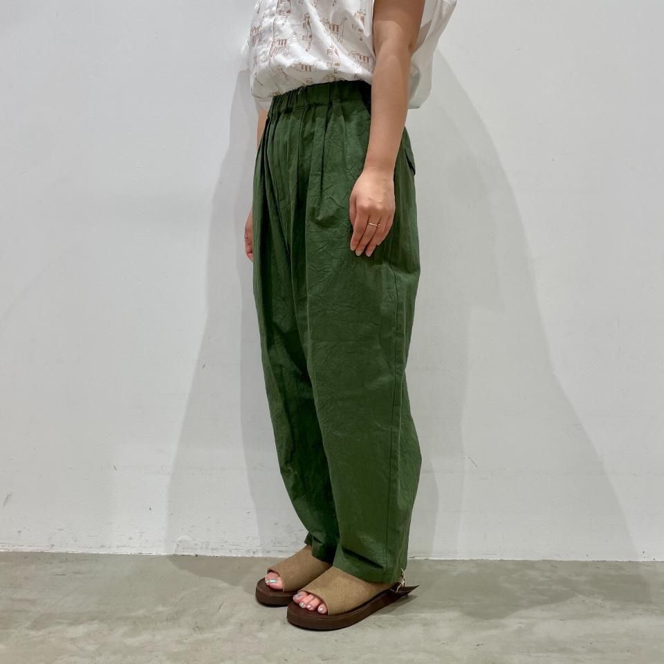 ゆとりのある太もも部分から裾に向かって細くなるテーパード・シルエット。