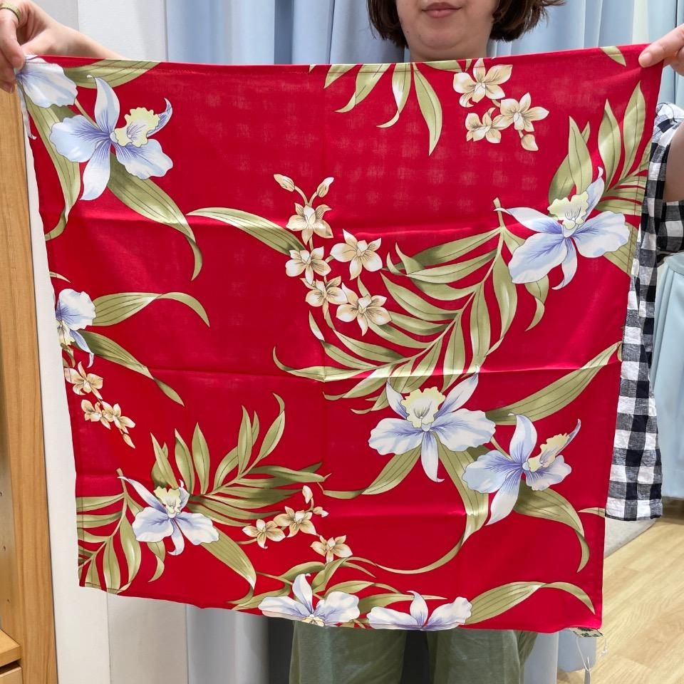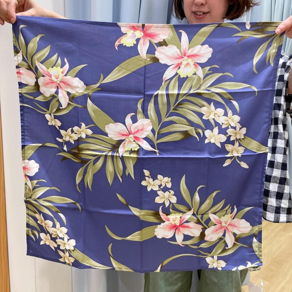 高級感たっぷりの生地で仕上げた上質レーヨン素材のアロハシャツ生地を採用したバンダナ。