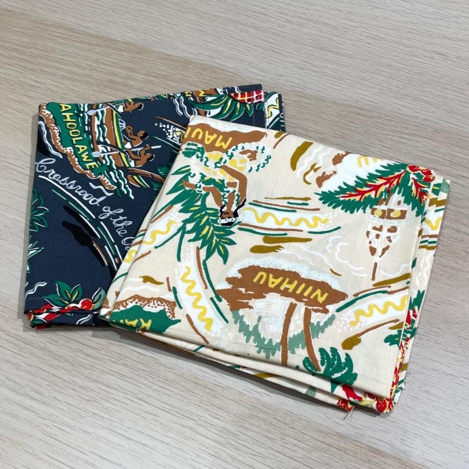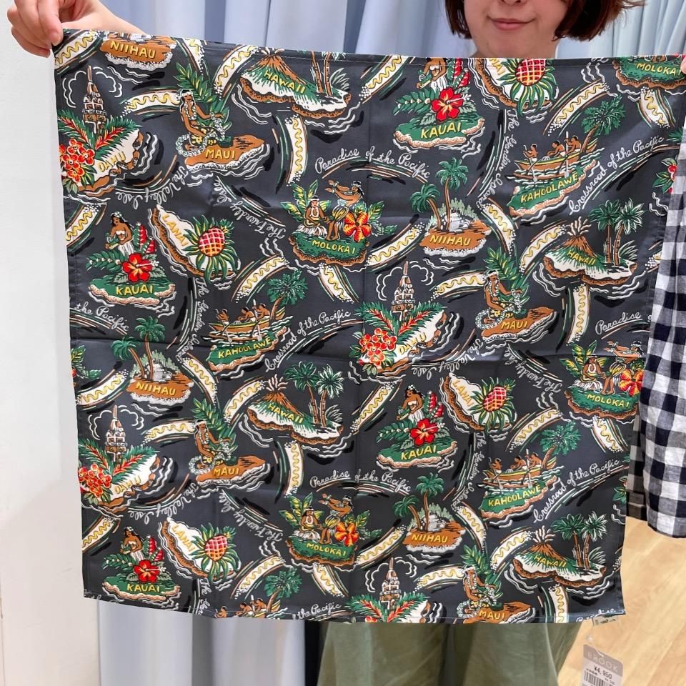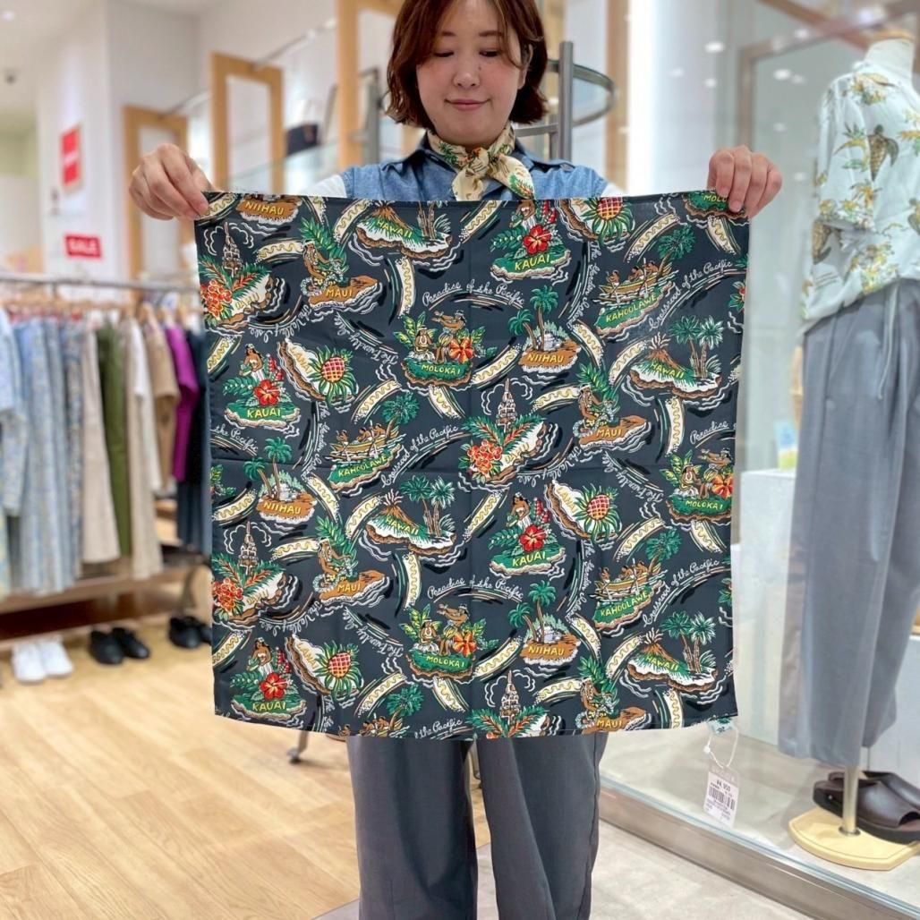 高級感たっぷりの生地で仕上げた上質レーヨン素材のアロハシャツ生地を採用したバンダナ。