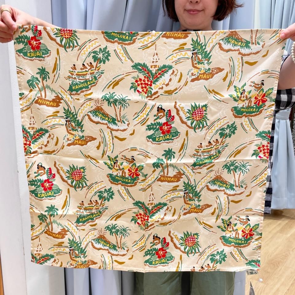 パームツリーやハイビスカスなど伝統的なハワイのライフスタイルが描かれた南国らしい柄です。