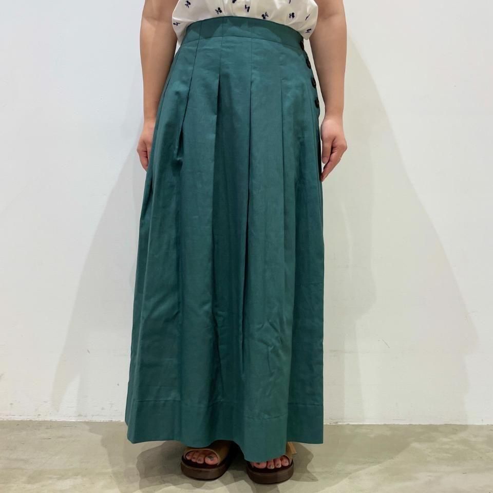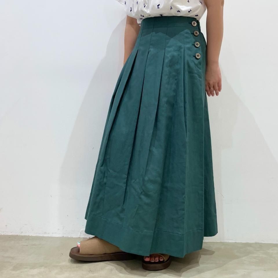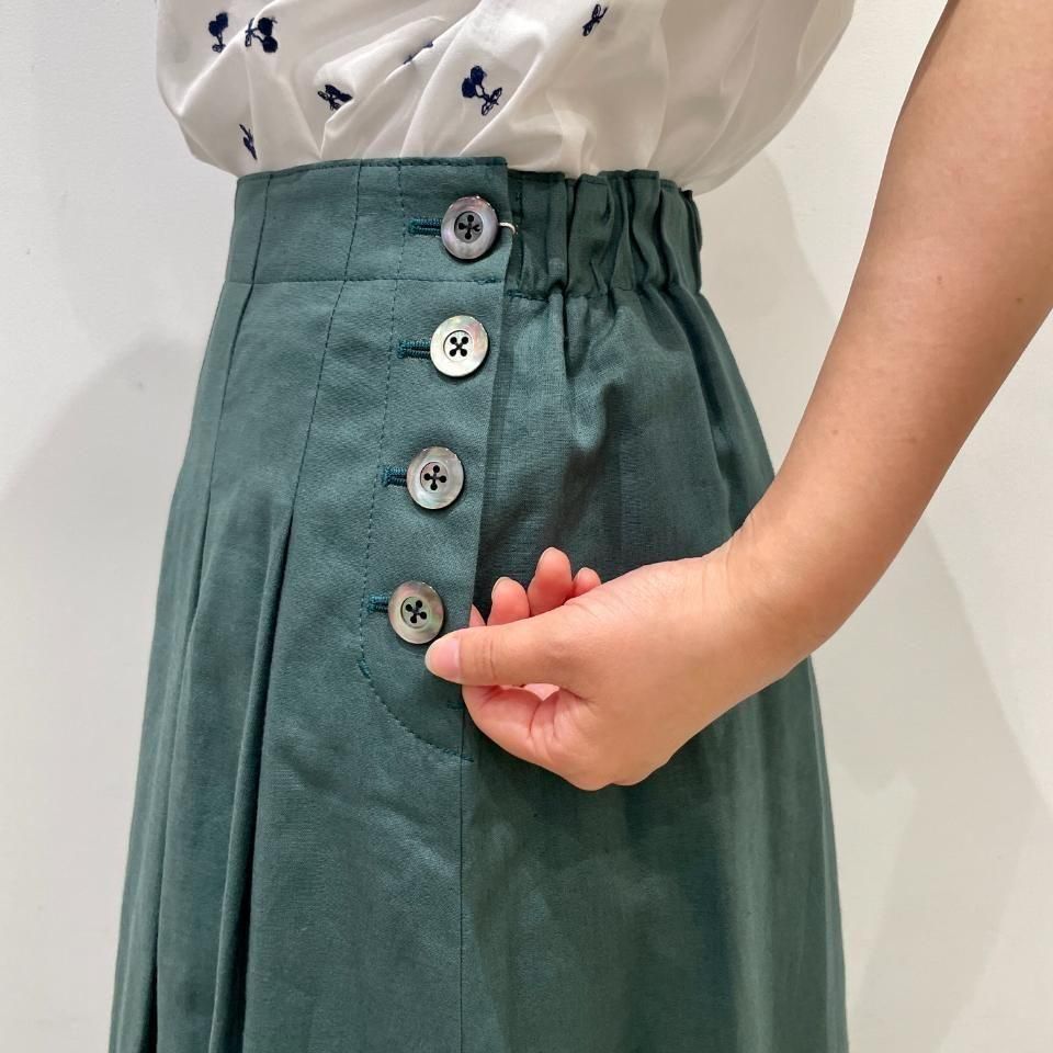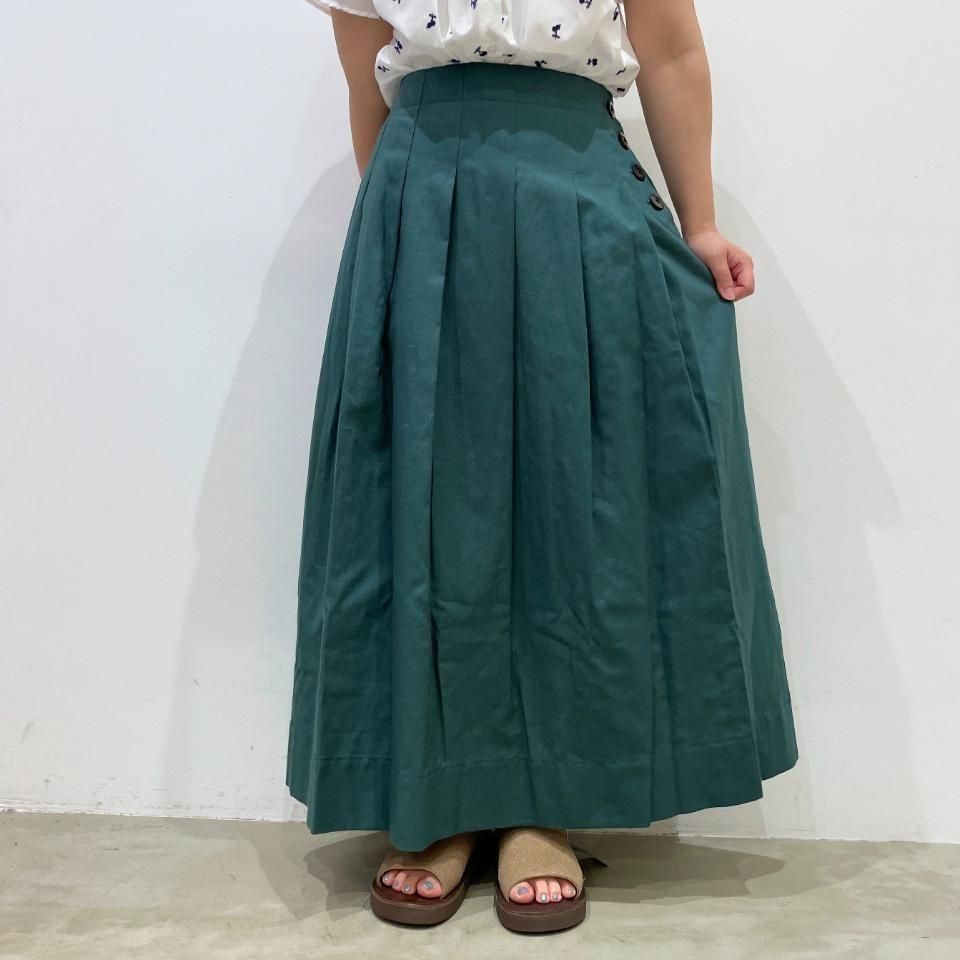 綿麻 脇ボタンプリーツスカート(VE17504)