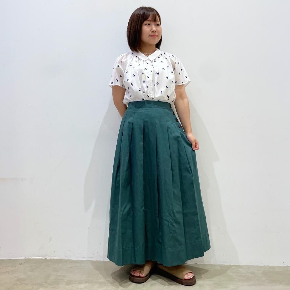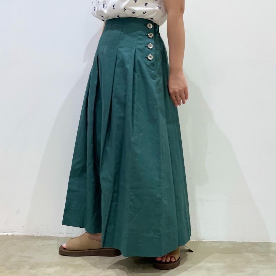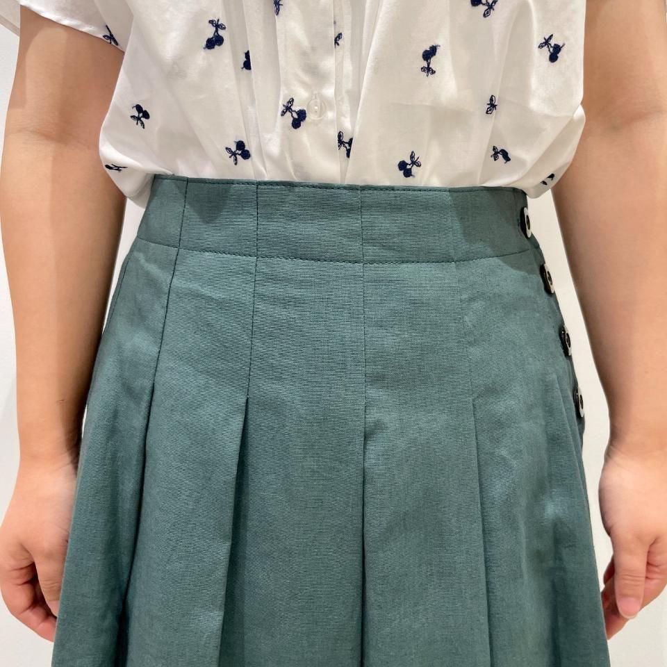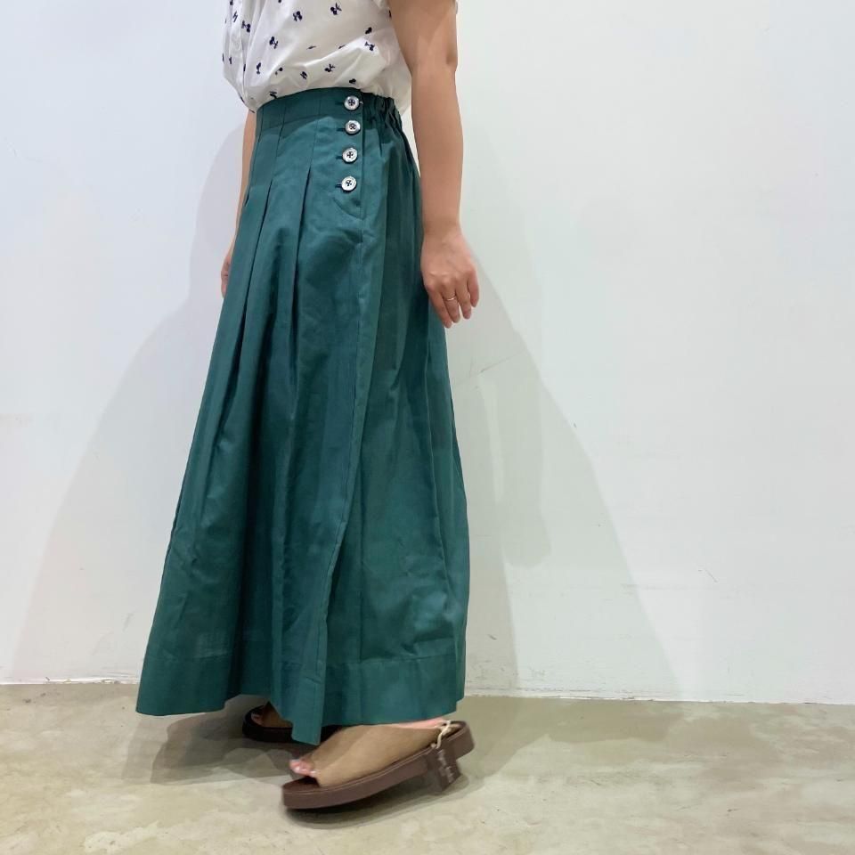 綿麻 脇ボタンプリーツスカート(VE17504)