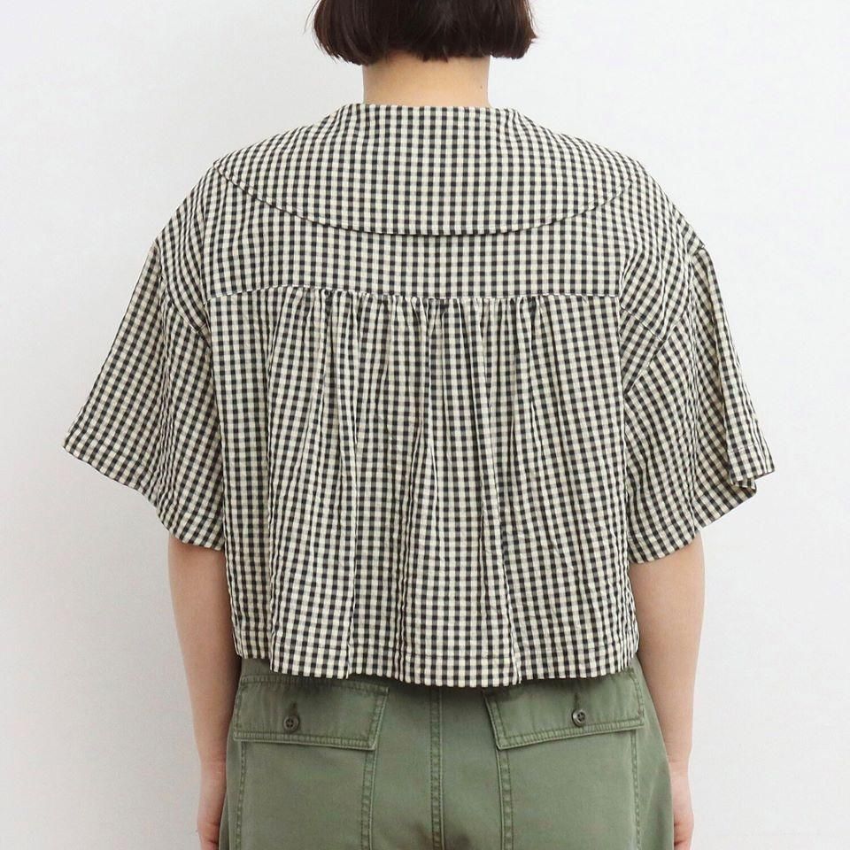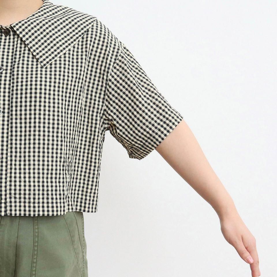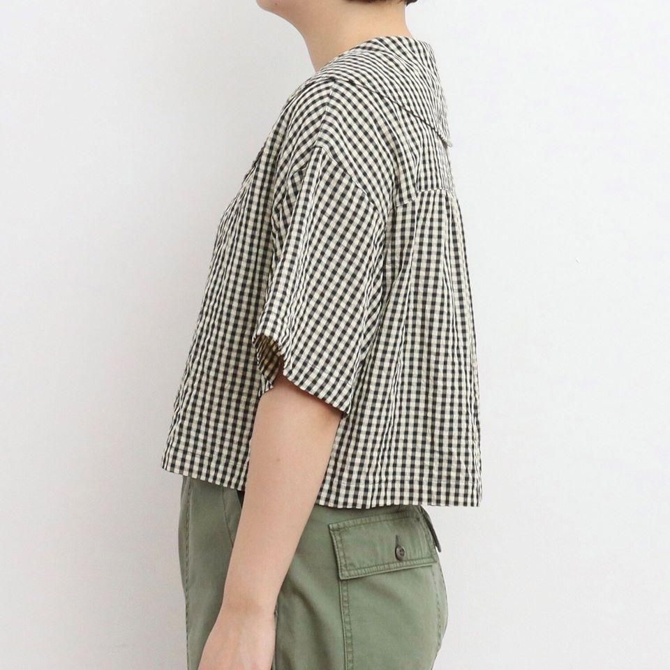 ドビーギンガム 5分袖ショート前あきブラウス (0101BL015251) 正規取扱品