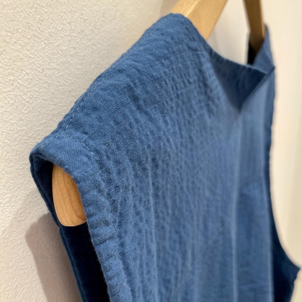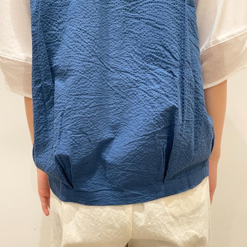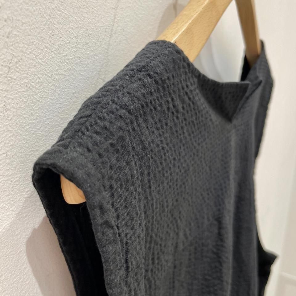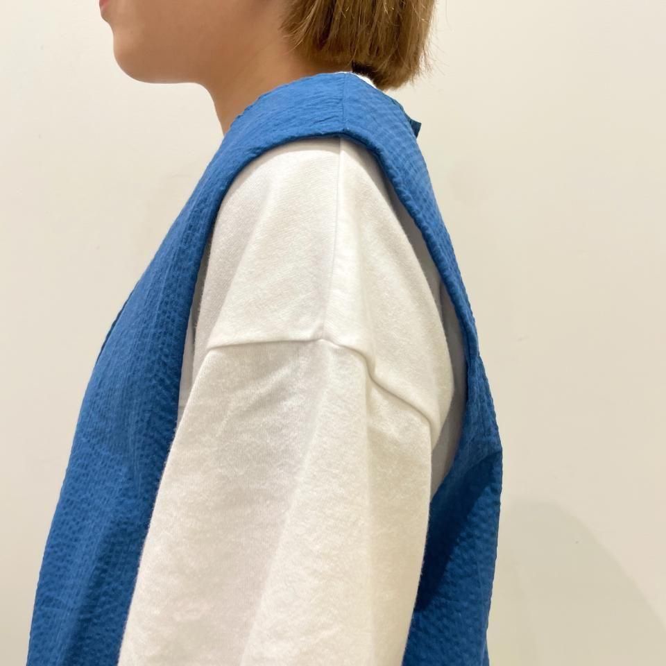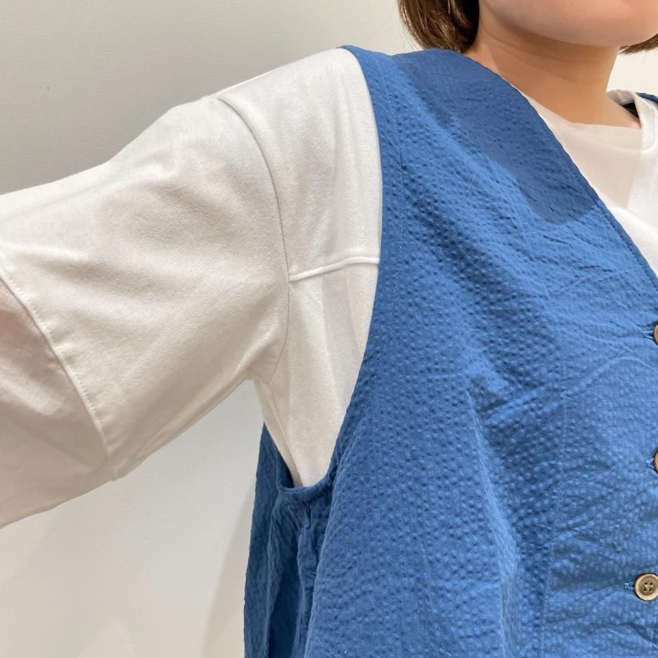 アームホールを広めにとっているため、ボリューム袖のインナーとも合わせやすいデザインです。