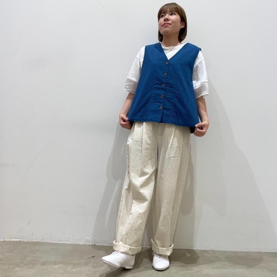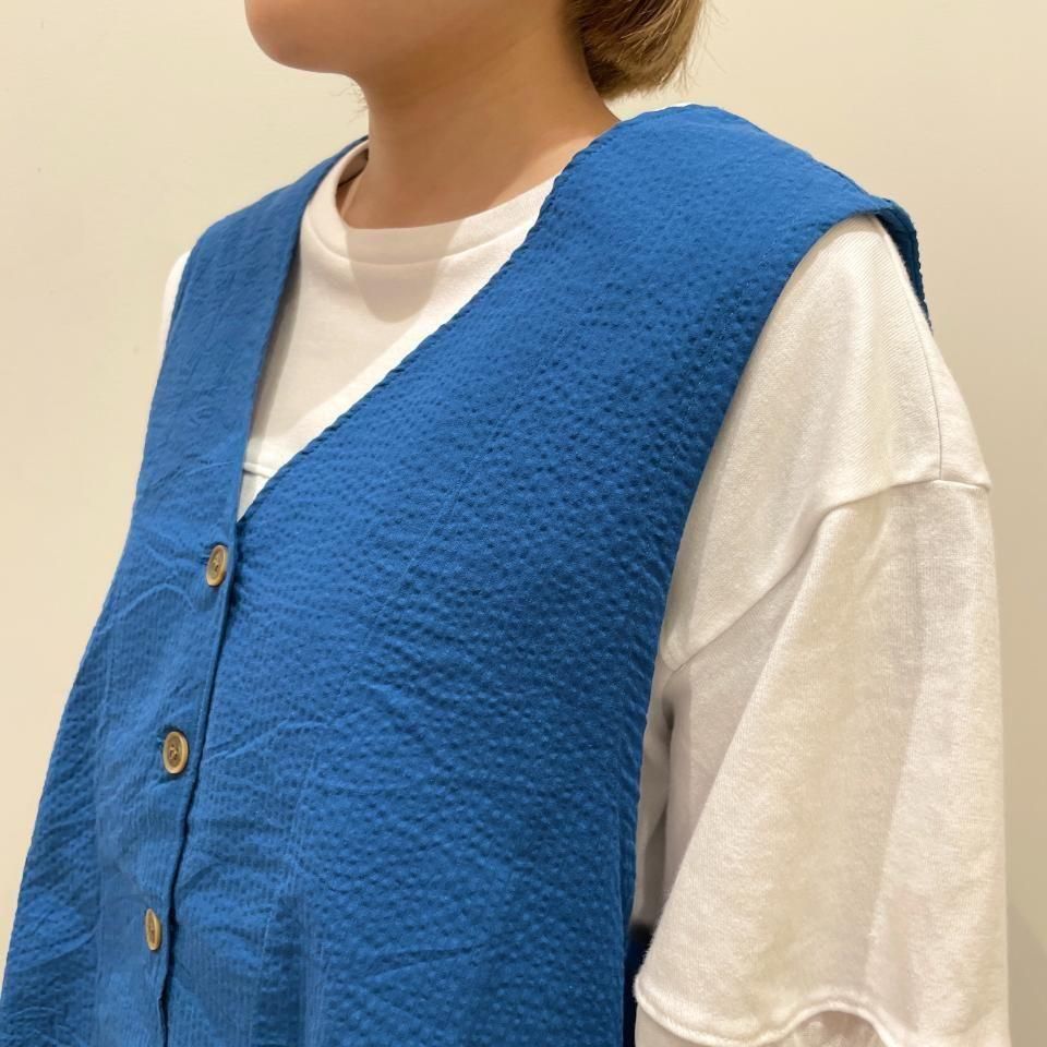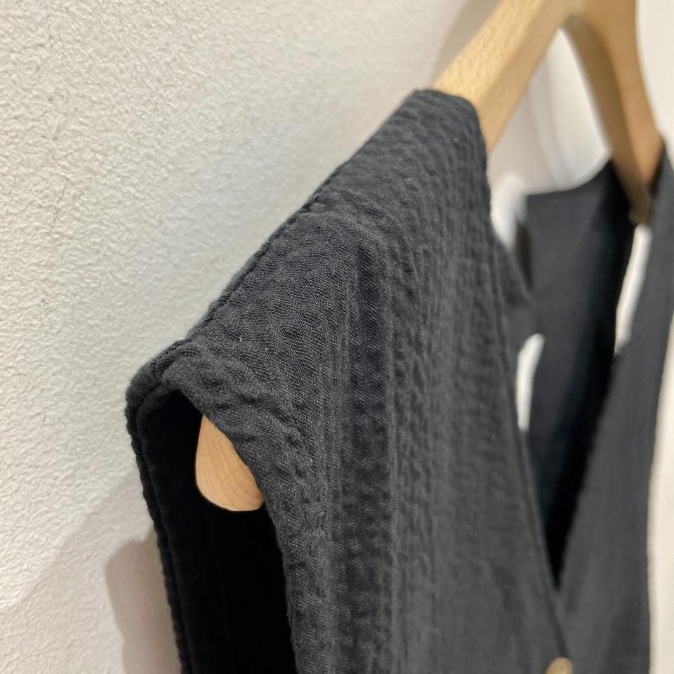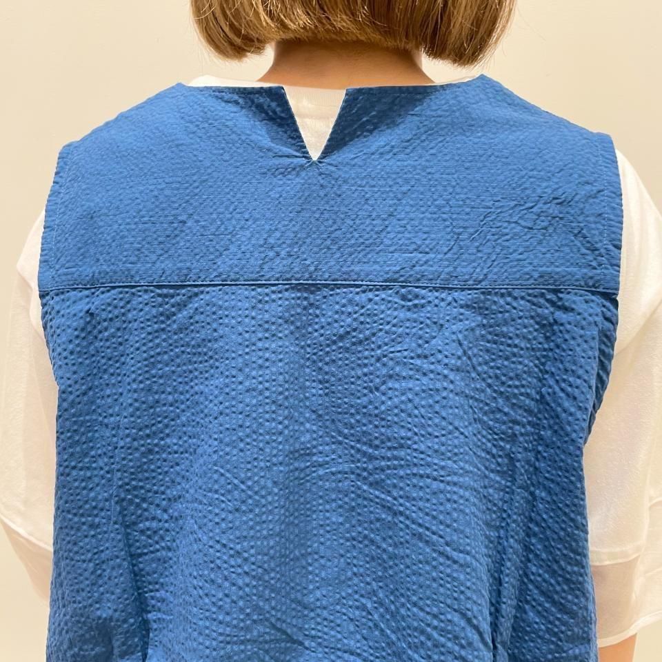 アームホールを広めにとっているため、ボリューム袖のインナーとも合わせやすいデザインです。