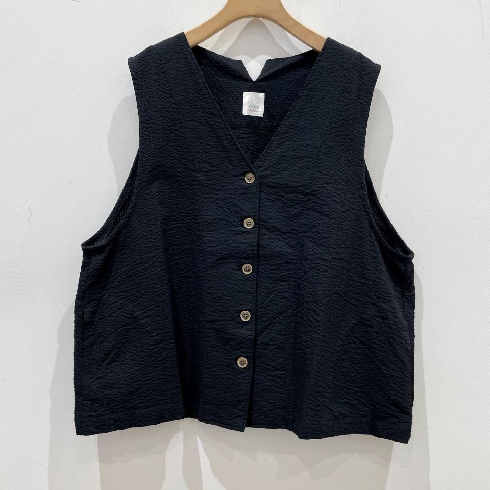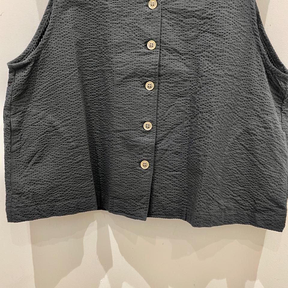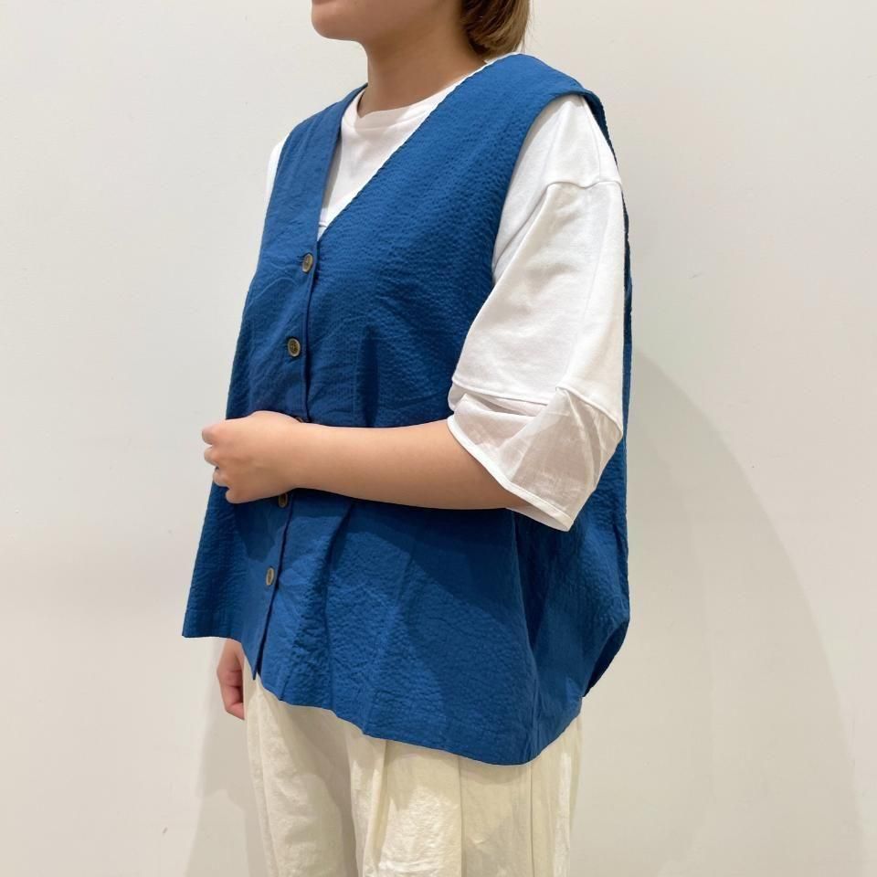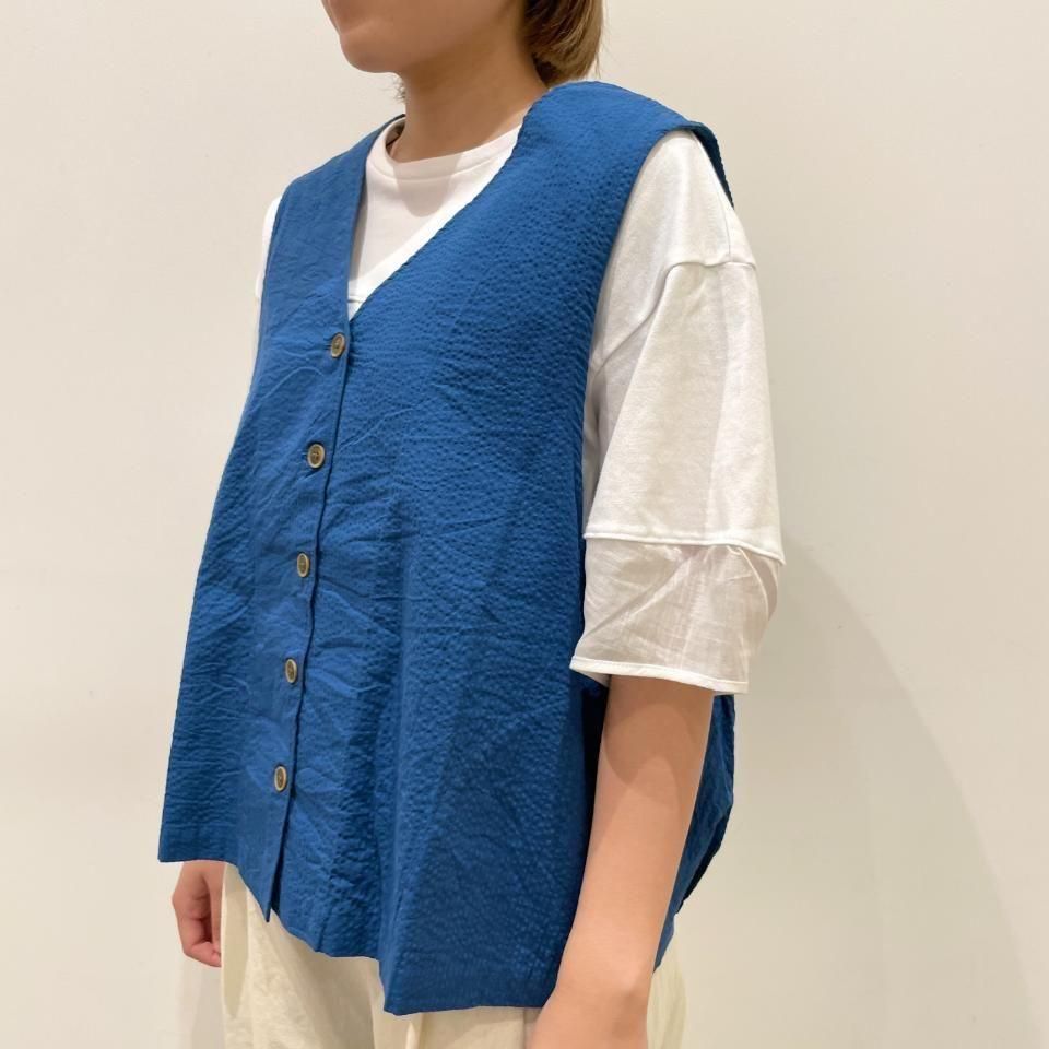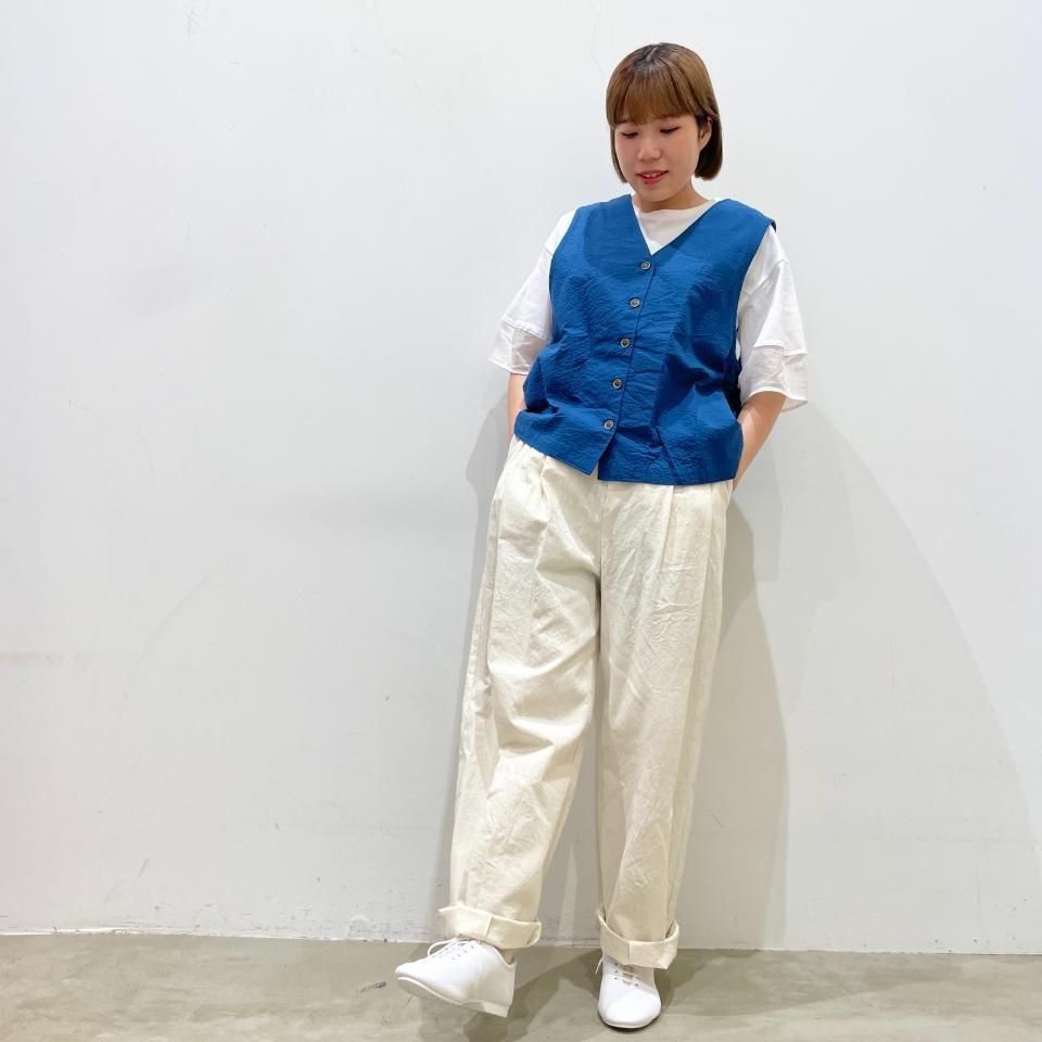 アームホールを広めにとっているため、ボリューム袖のインナーとも合わせやすいデザインです。