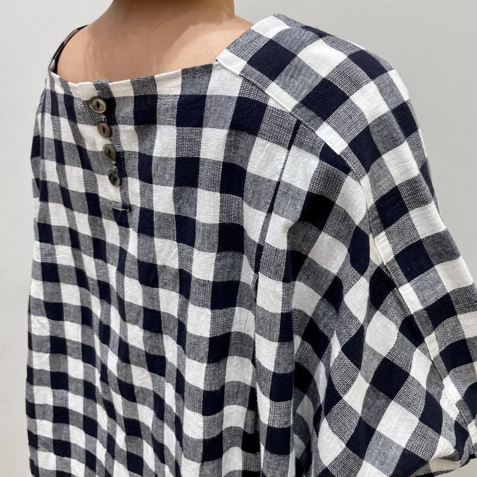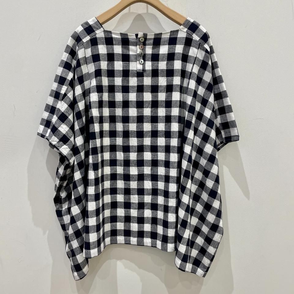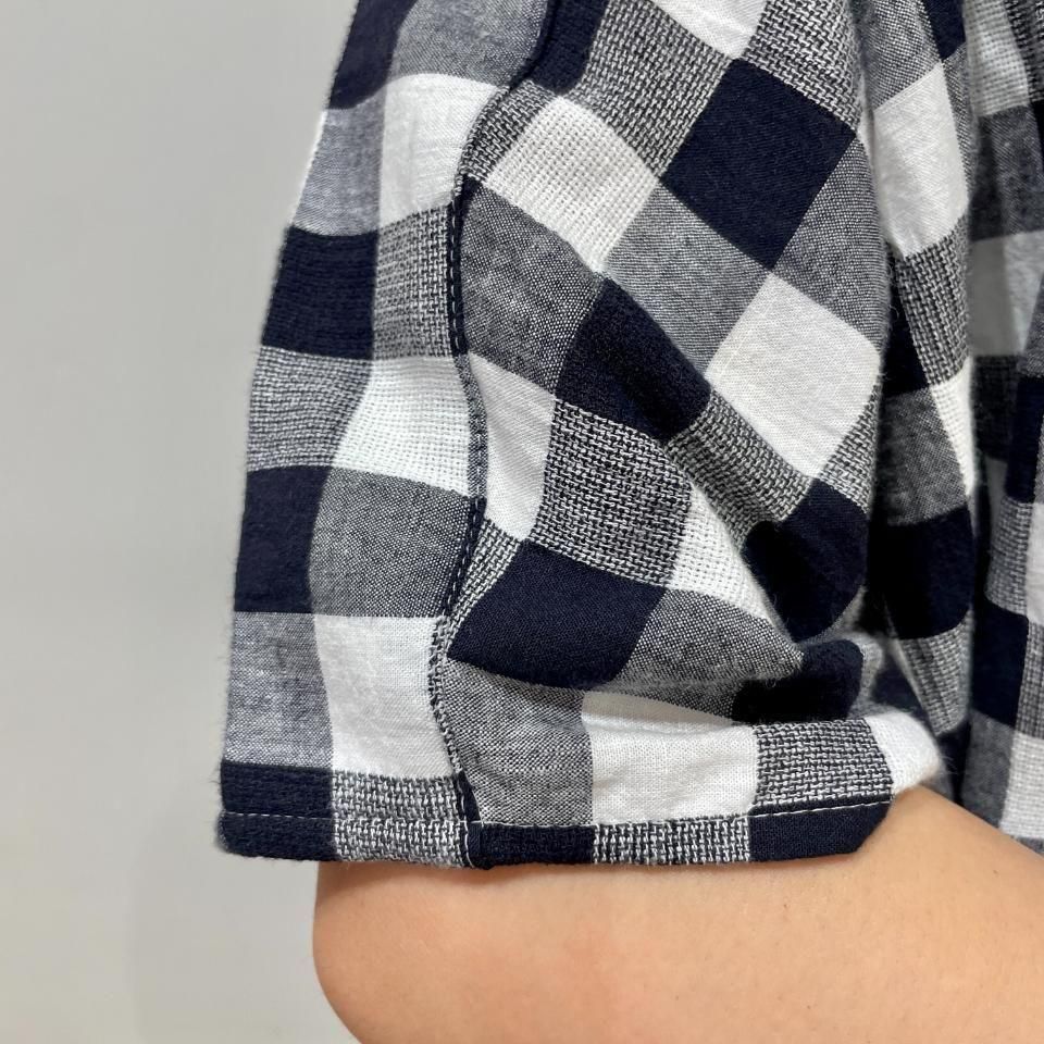 シンプルなホワイトと2種類のチェック柄がコーデの主役になってくれる1枚です。