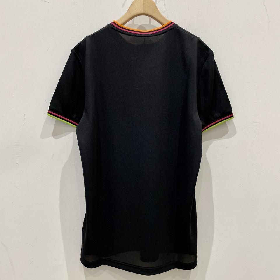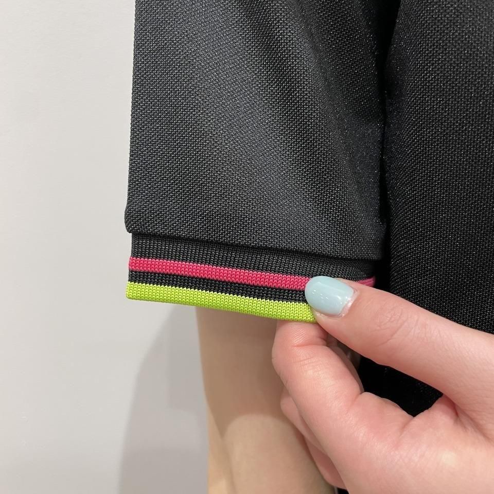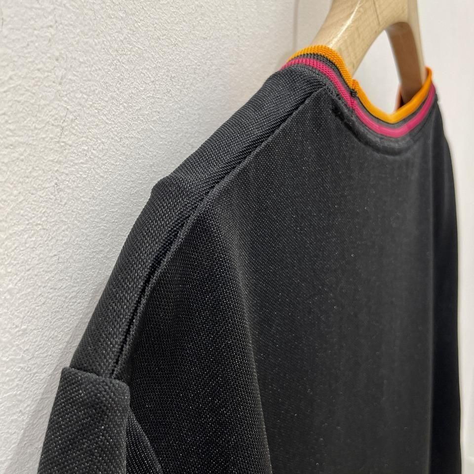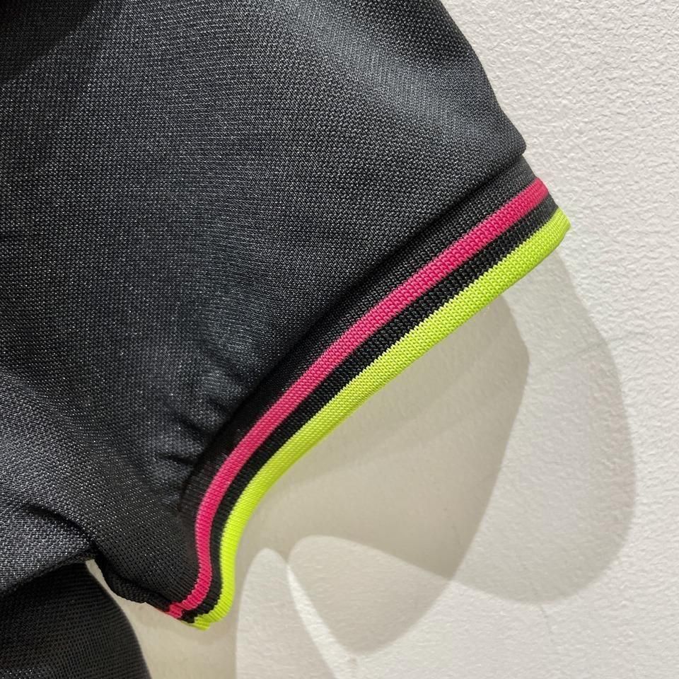 ネックはオレンジとピンク、袖リブにはピンクとイエローのラインが入っています。