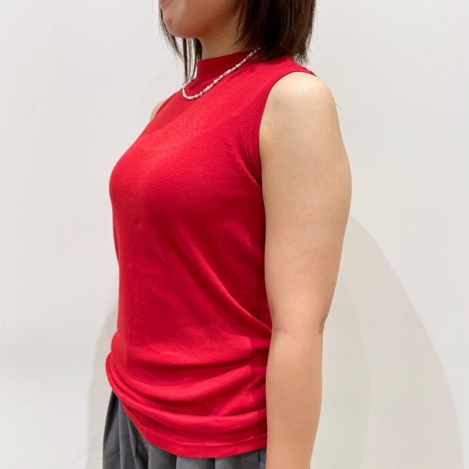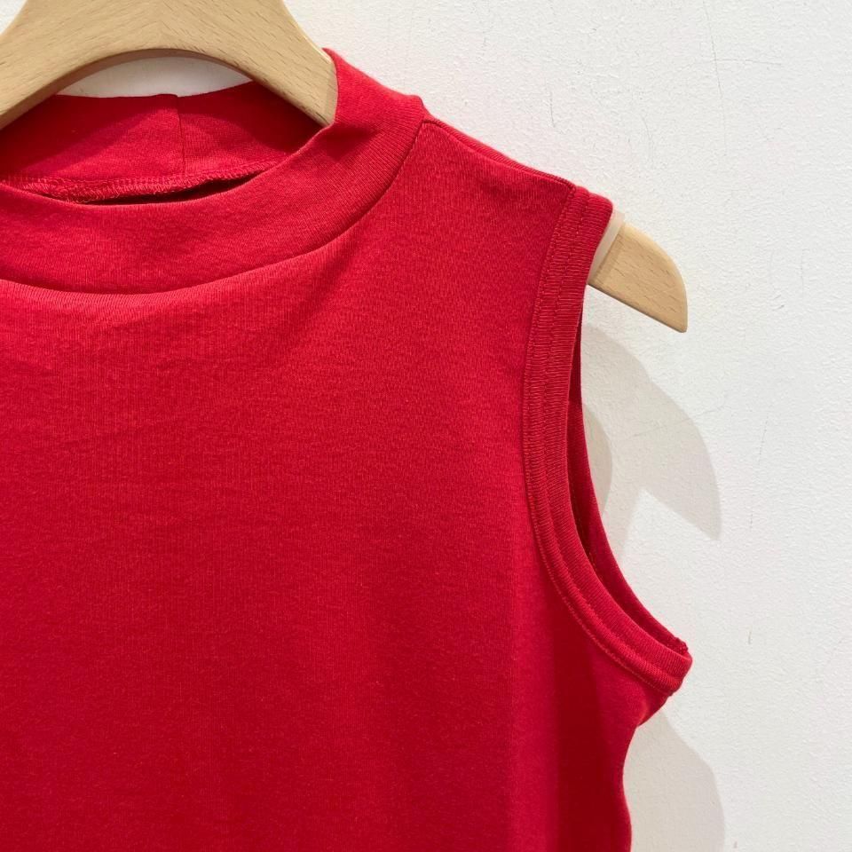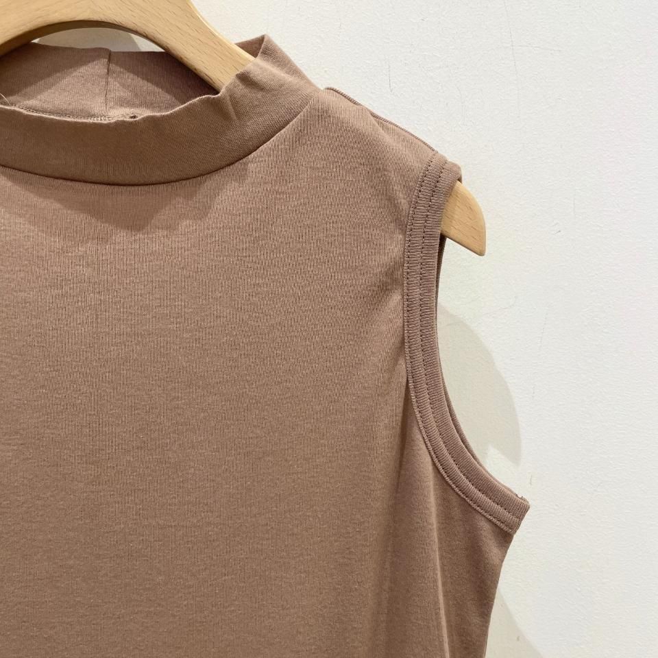 豊富なカラーバリエーションが魅力なソフトフライスハイネックノースリーブ。