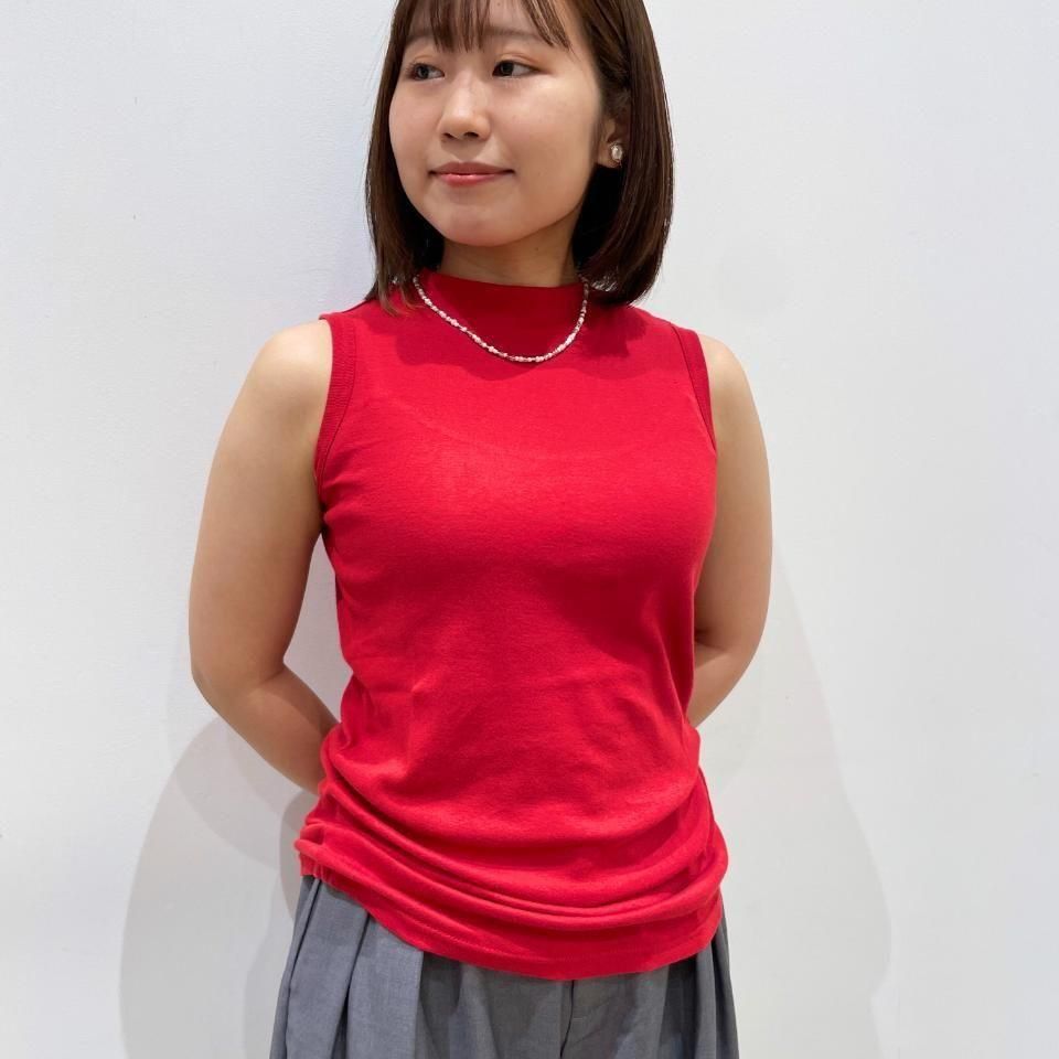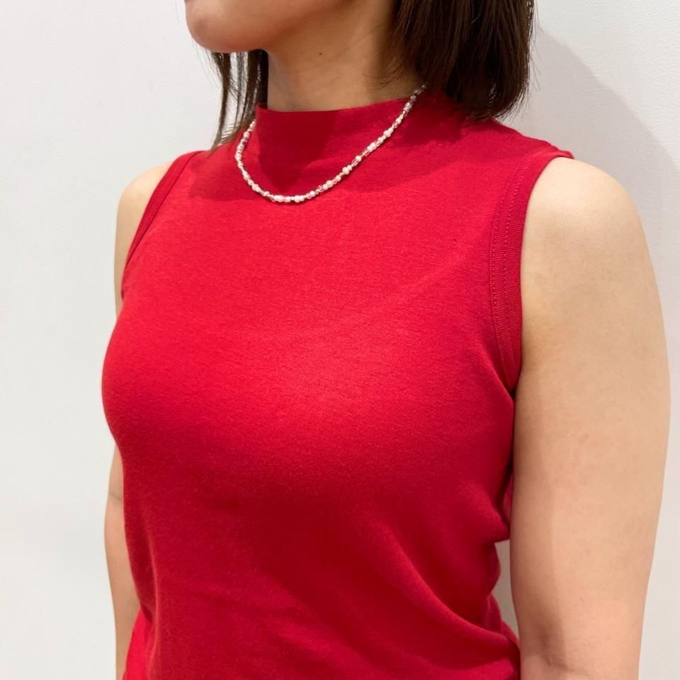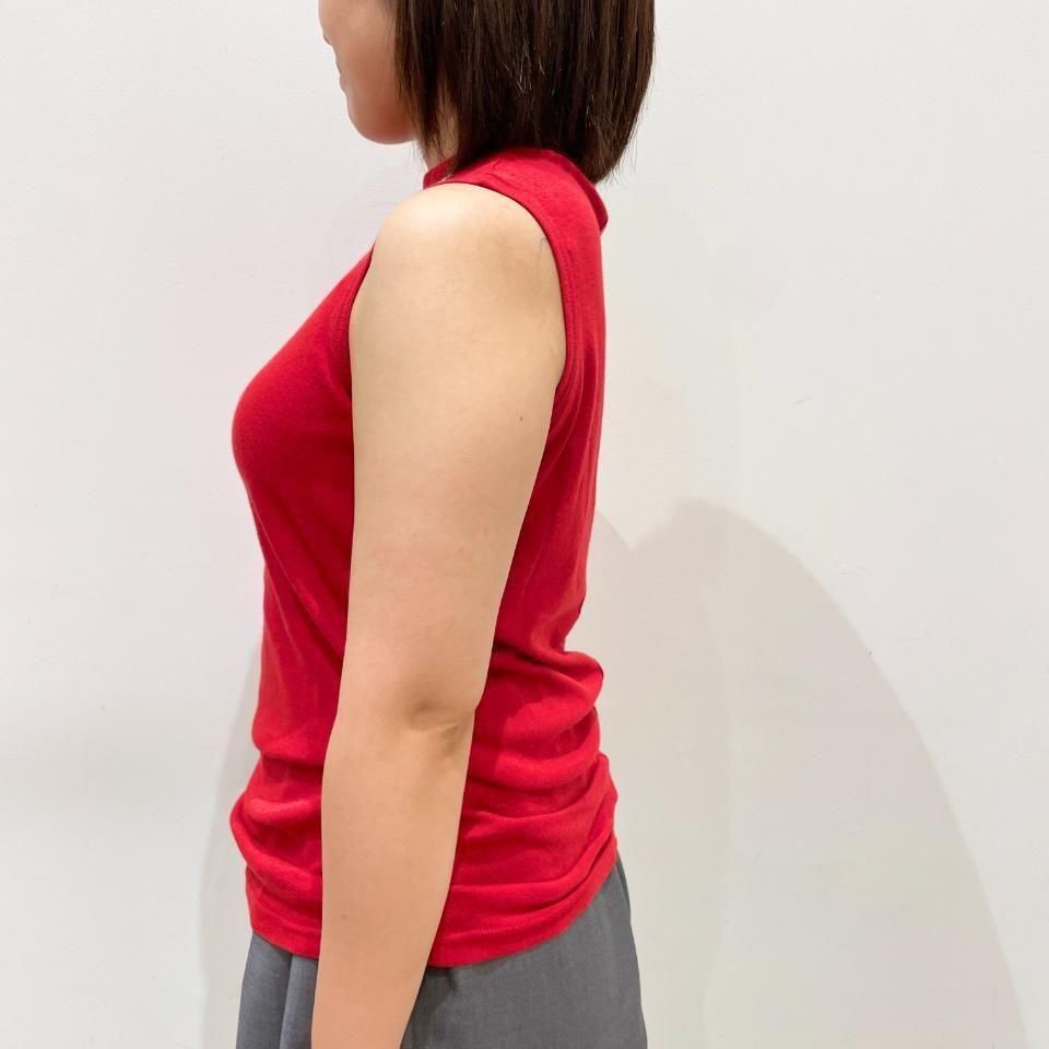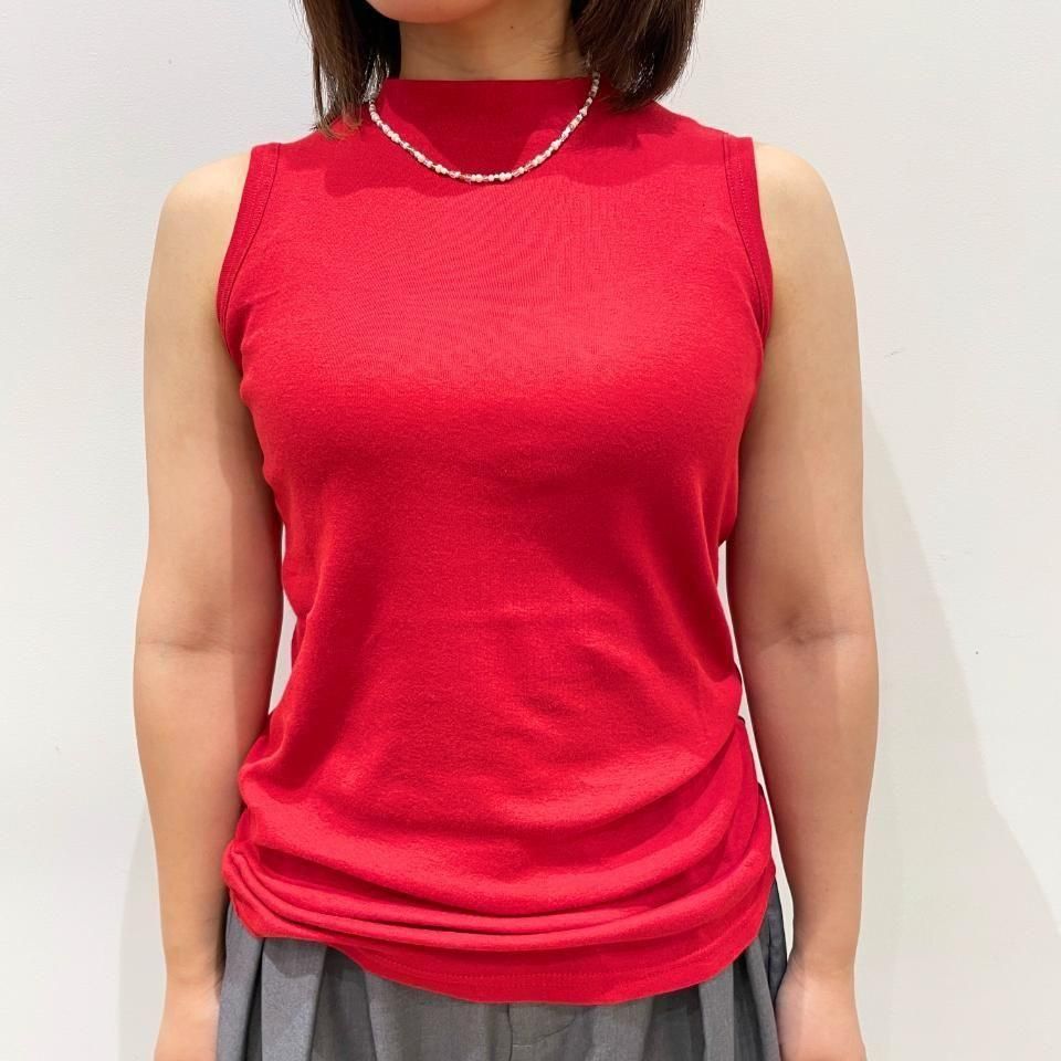 豊富なカラーバリエーションが魅力なソフトフライスハイネックノースリーブ。