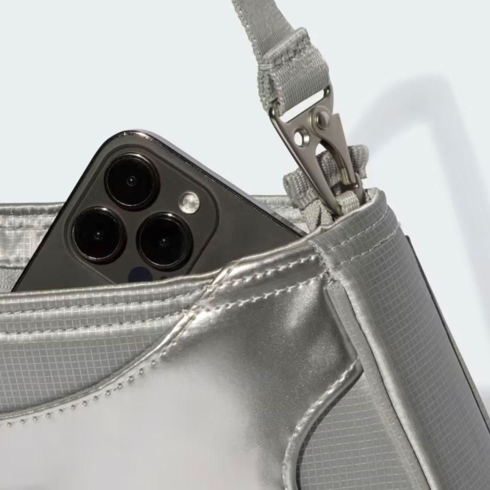 このアディダスのクラッチバッグは、ファッショナブルなシルエットと素材に、機能的な要素を融合している。光沢のあるメタリックのリップストップと、パール調のポリウレタンを使用。取り外しが可能なストラップが付属しているので、ショルダーバッグかクラッチとして使える。内側にスリップインポケットがあり、小物を整理できる。