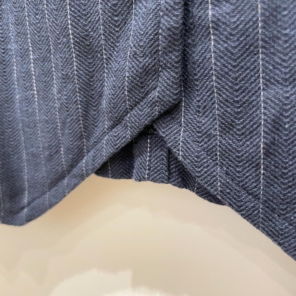 柔らかさとシャリ感を兼ね備えた、やや薄手の綿麻のヘリンボーン(杉綾織り)。