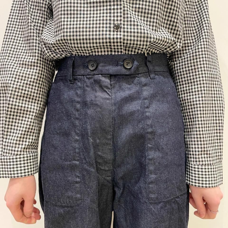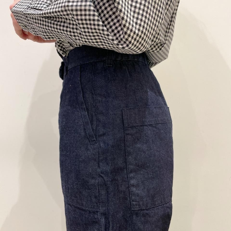 スッキリとしたウエストラインとひざ下からの落ち感がきれいな脚長シルエットが特徴です。