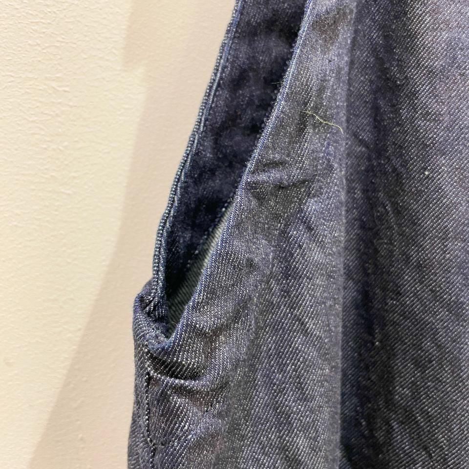 インディゴ染料の性質上、摩擦や水濡れによる移染、色落がありますので他のものと分けて洗ってください。