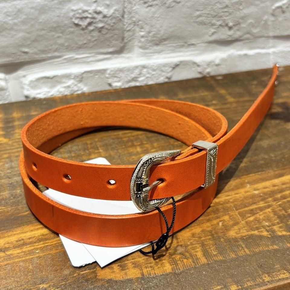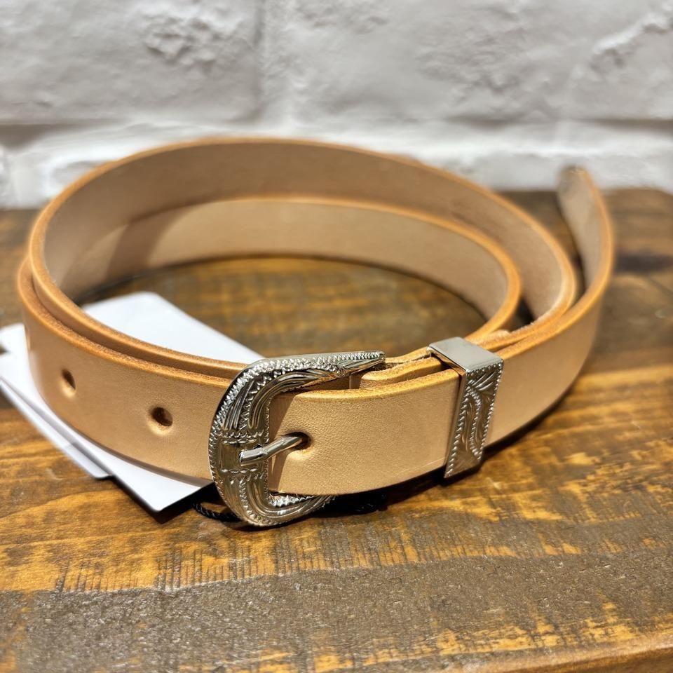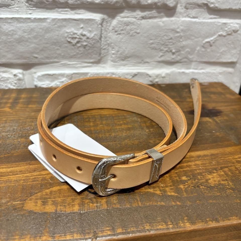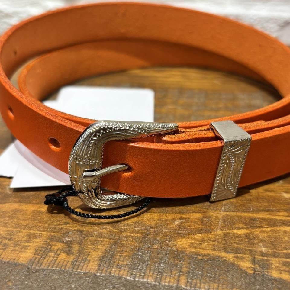 バックルと剣先の金具がポイントのウエスタン調レザーベルト。
