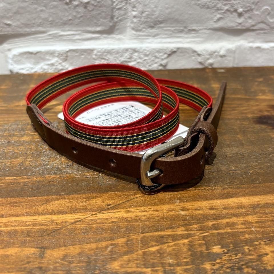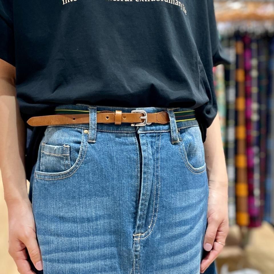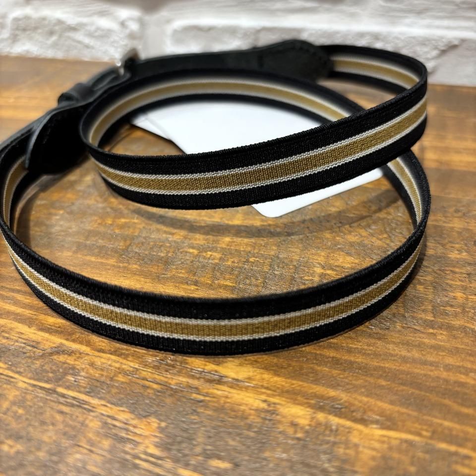 シンプルなデザインでどんな服装にも合わせやすいストライプテープベルト。