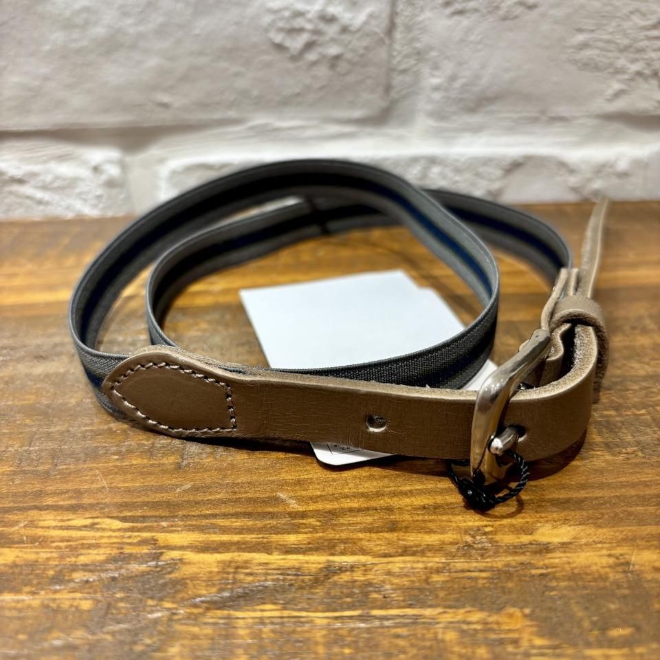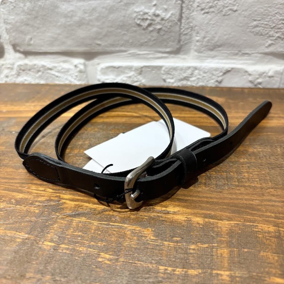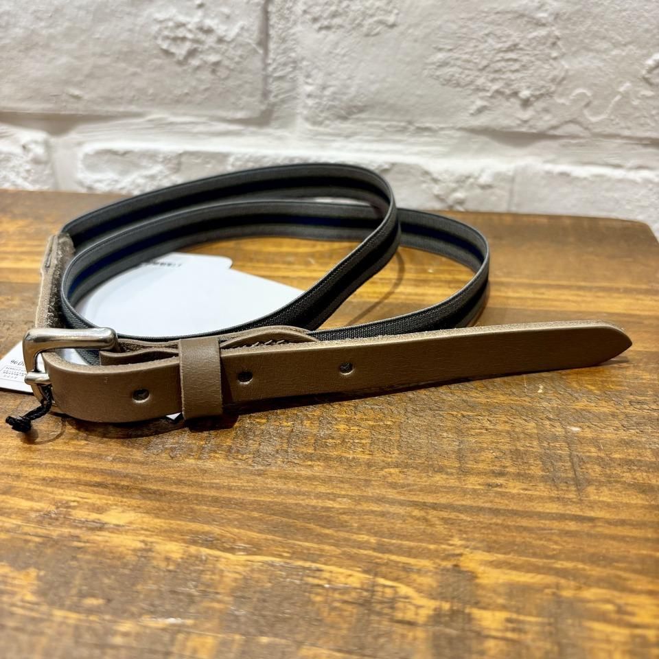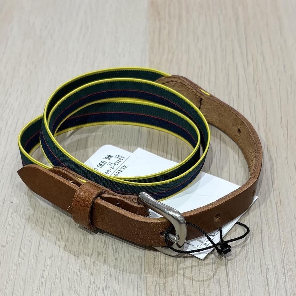 シンプルなデザインでどんな服装にも合わせやすいストライプテープベルト。