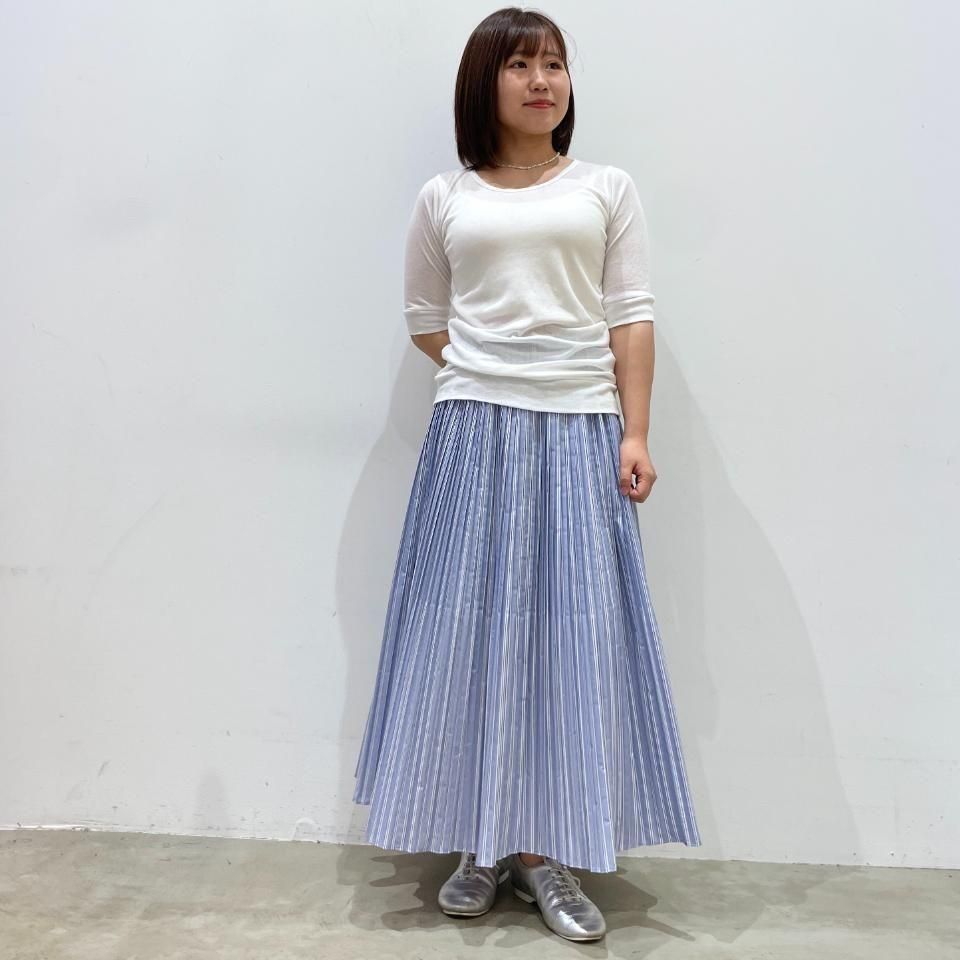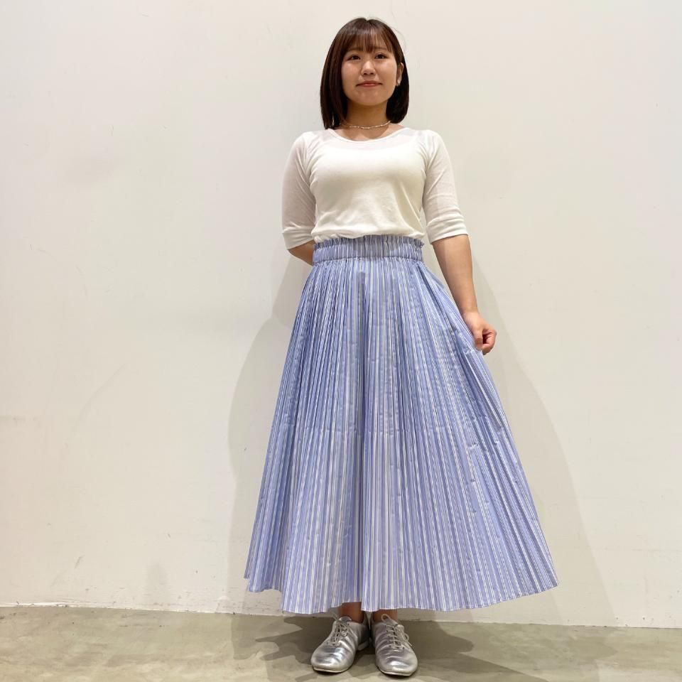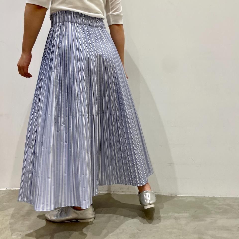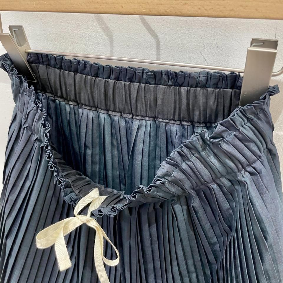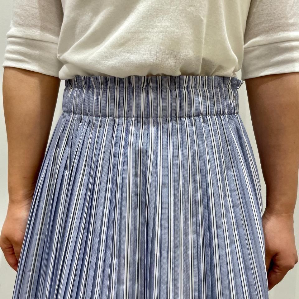 細かなプリーツがお尻まわりを程よくカバーし、カジュアル、フェミニンなどあらゆるファッションに馴染む着回し力の高さが魅力のアイテムです。