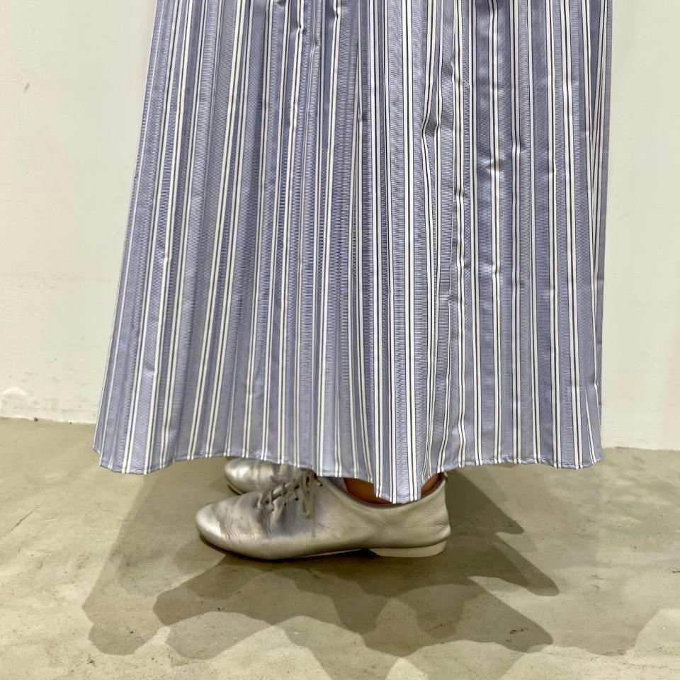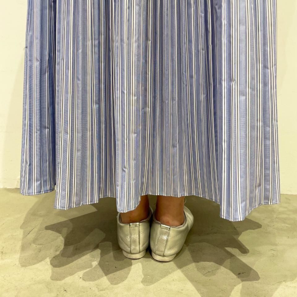 裾にかけて加工がなくなる消しプリーツによって、ふんわりとした優しいシルエットに。