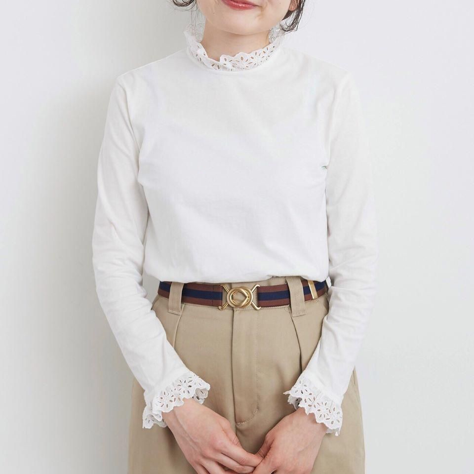 Dot&Stripes定番のレースブラウスのように使えるインナーカットソー。