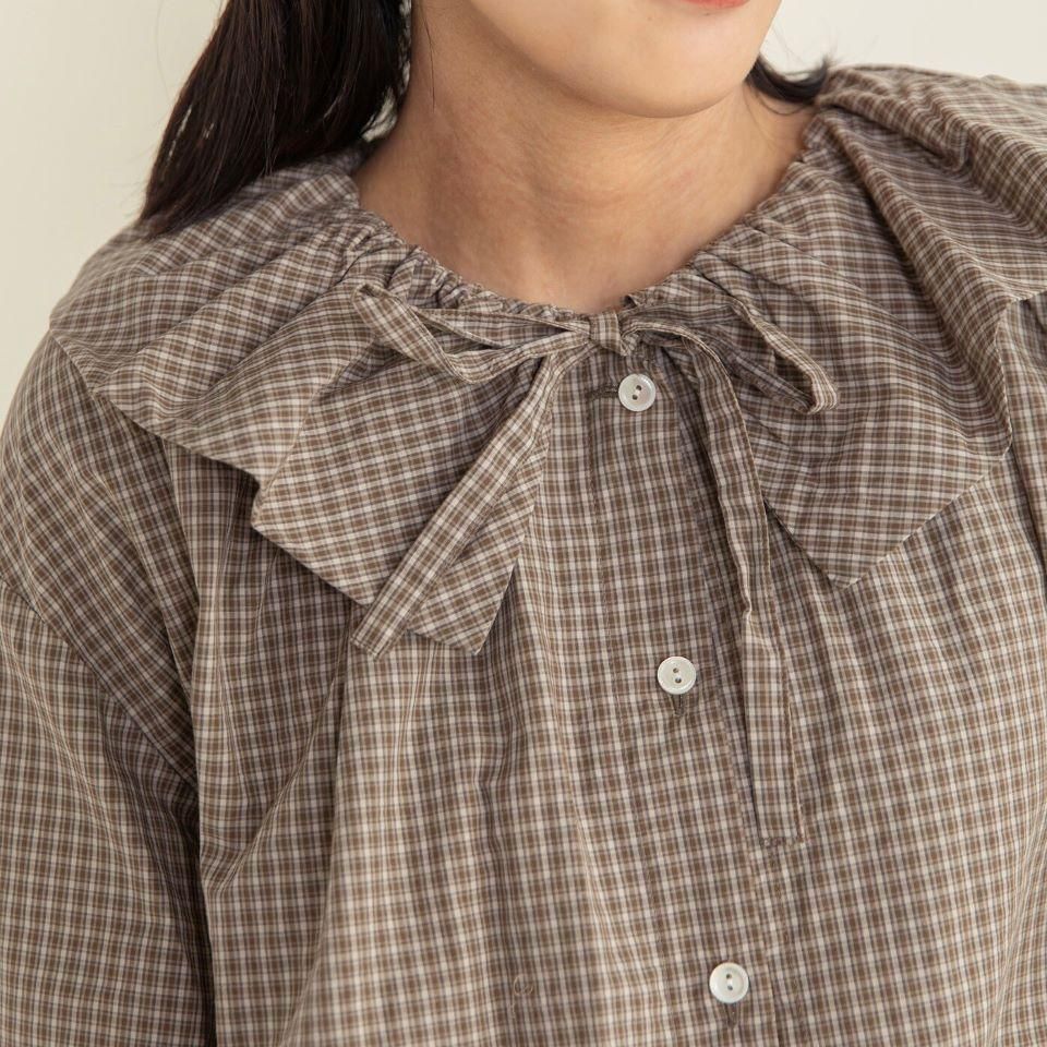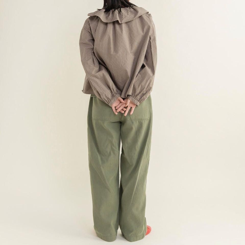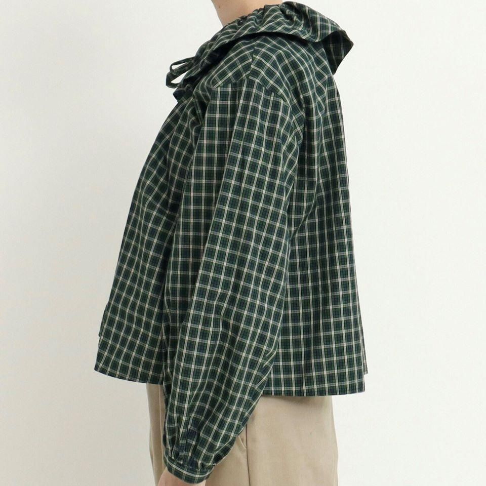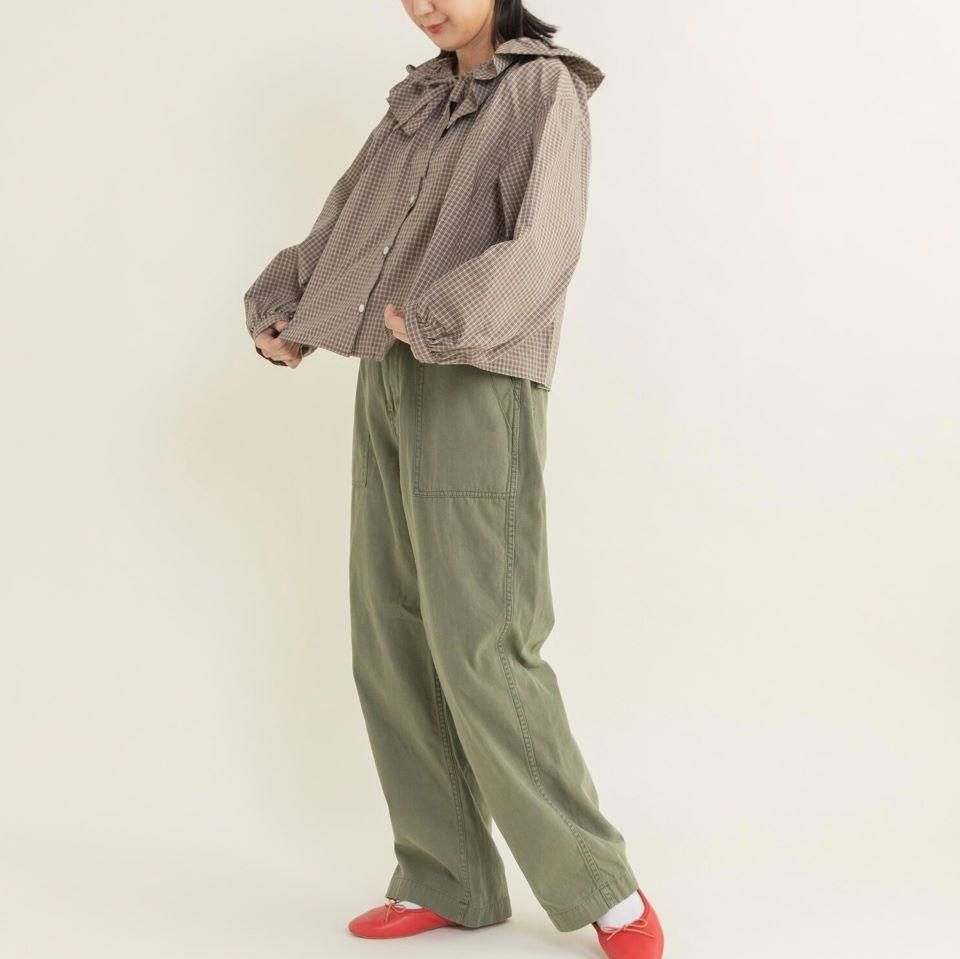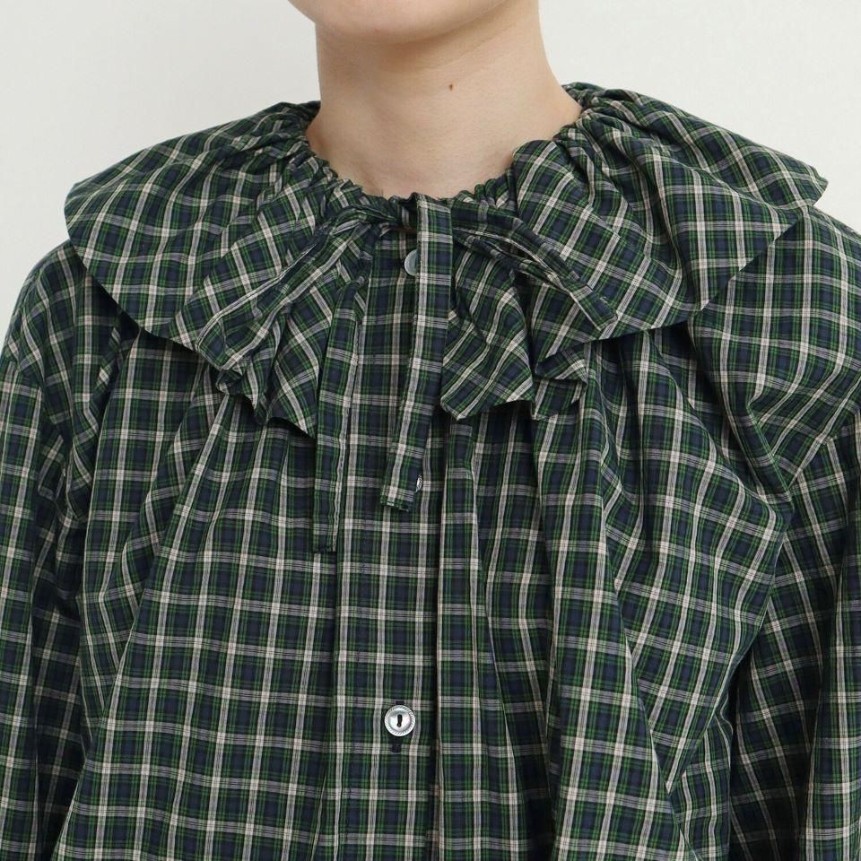 カジュアルな印象のチェック柄ですが、敢えてフリルやギャザー、ボリュームのあるお袖で甘さをプラス。